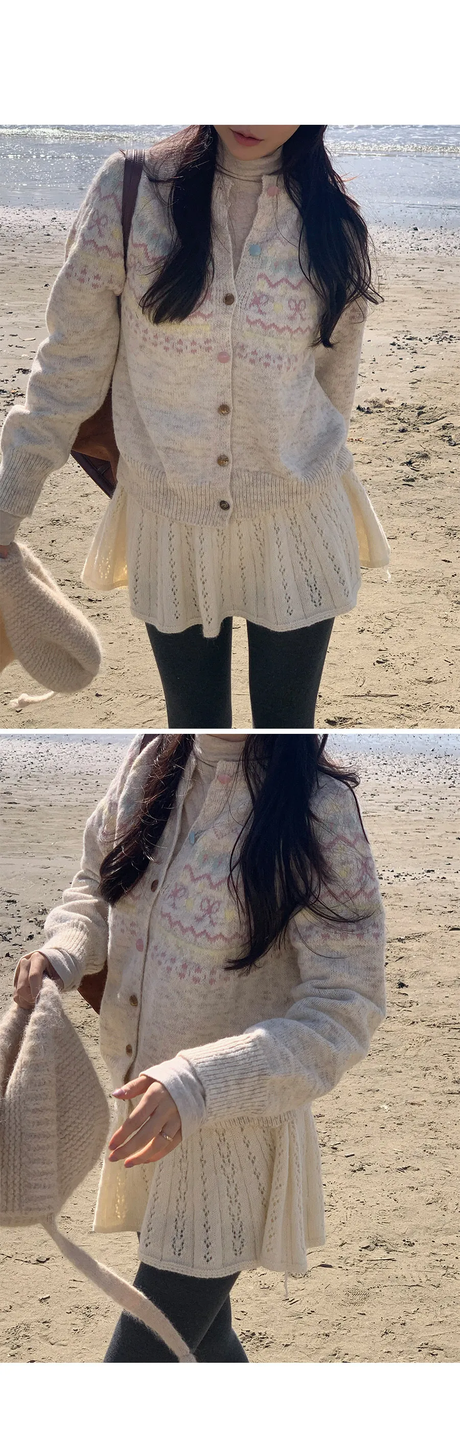可愛魅力線條與鈕扣色彩設計針織開衫