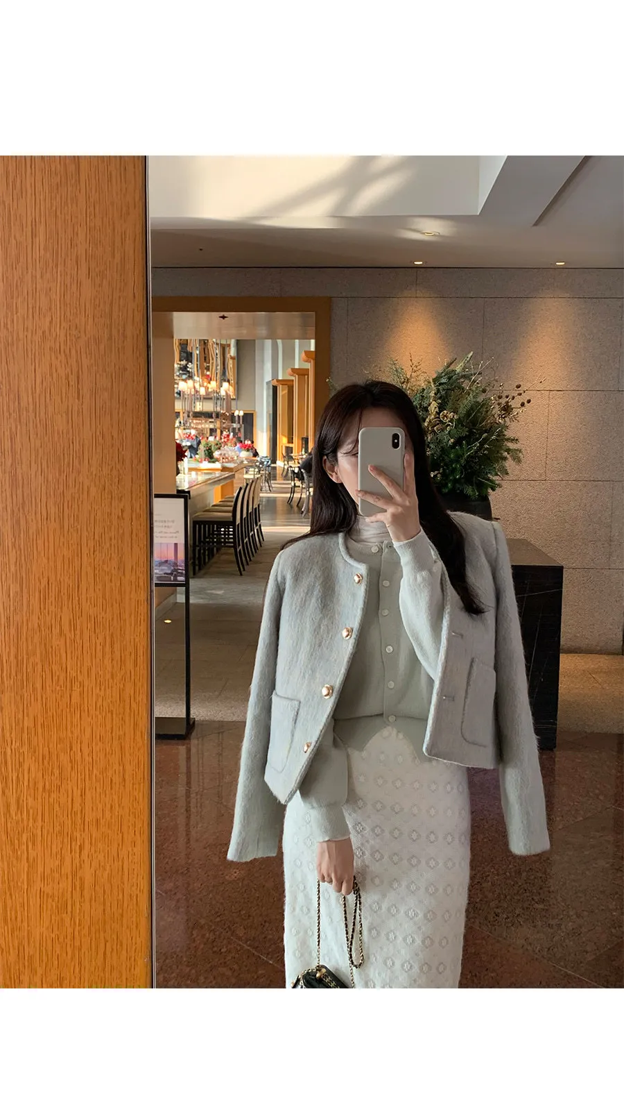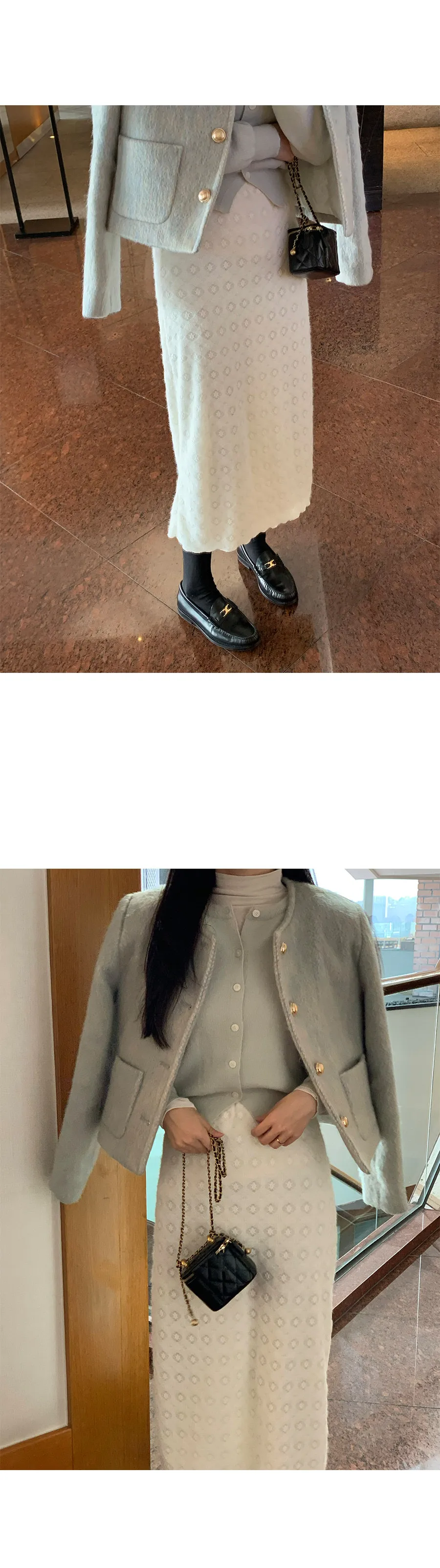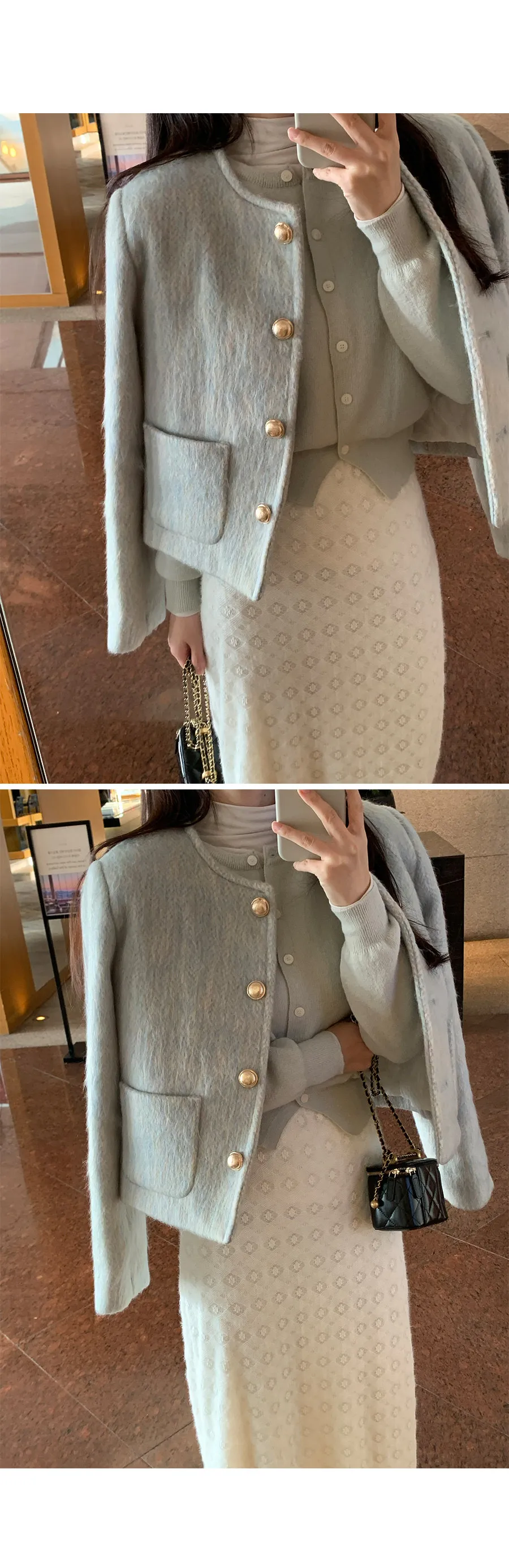 柔和氛圍拉絨紋理內襯行縫金釦羊毛混紡外套