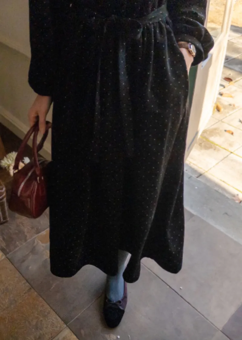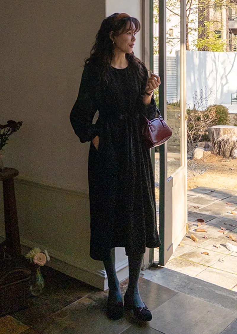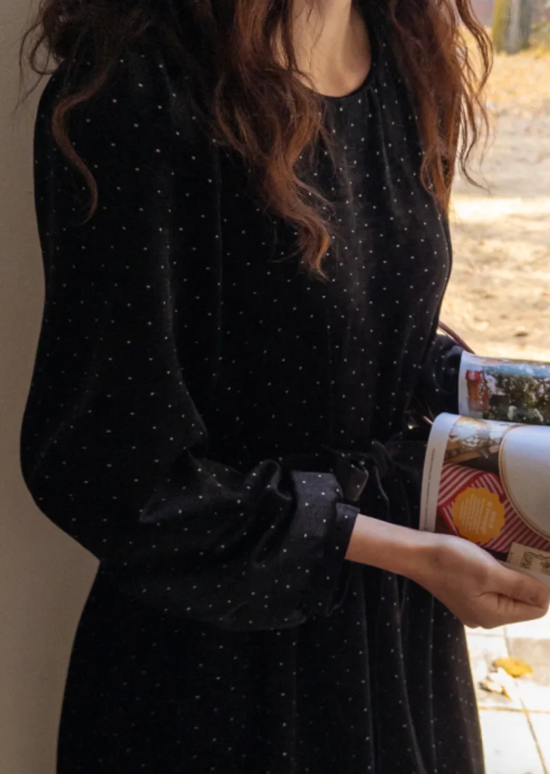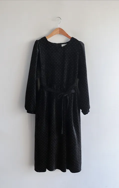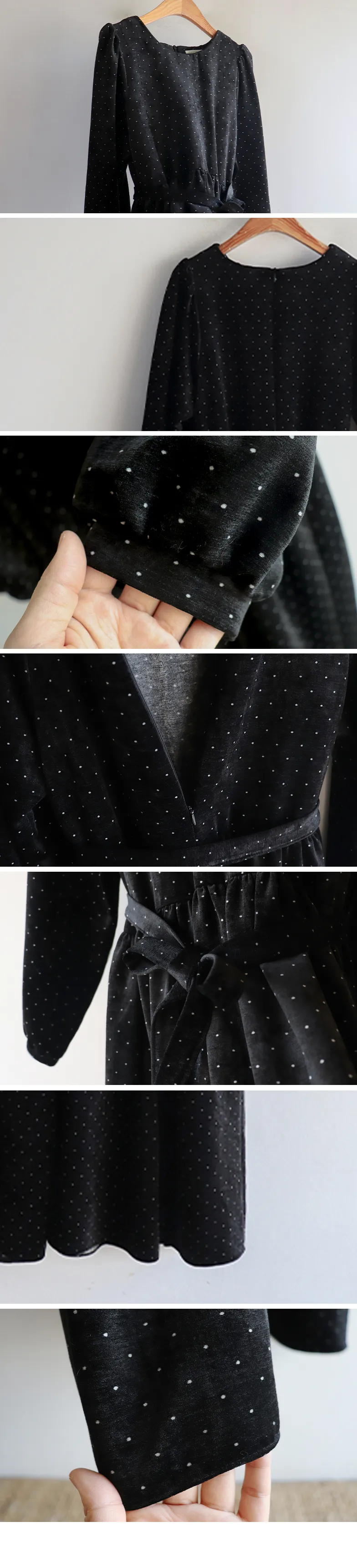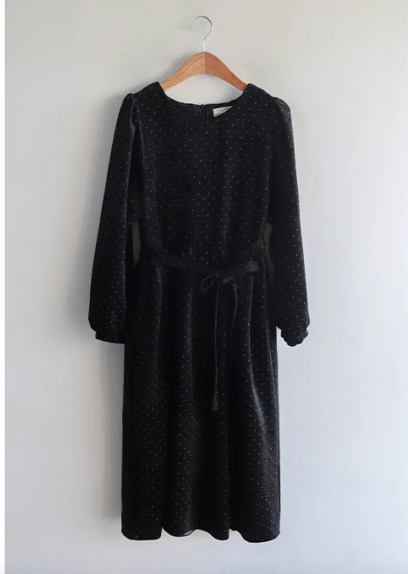 【厚絨材質最適合冬季♥】【沉穩的圓點圖案充滿可愛魅力~】【搭配腰帶可以打造多種合身效果】【修飾身體線條的連身裙!】