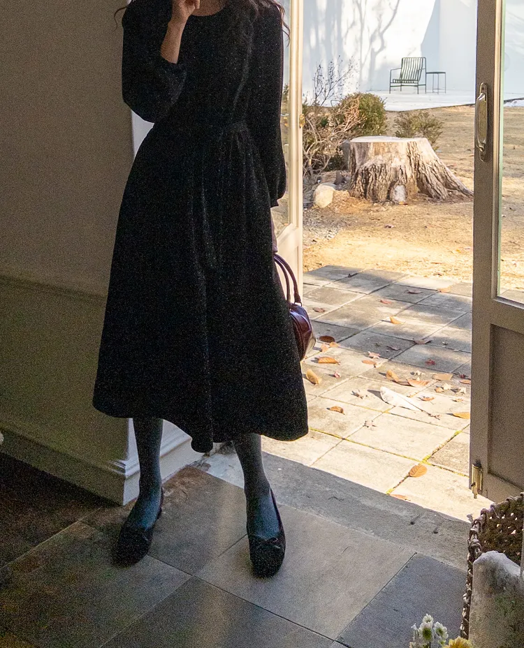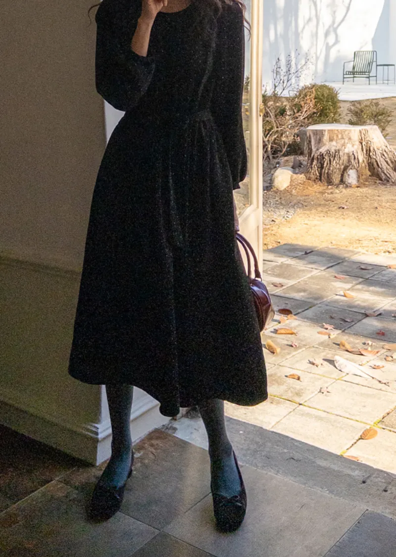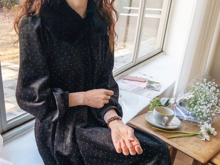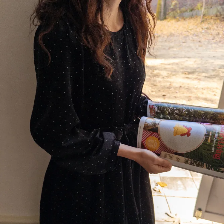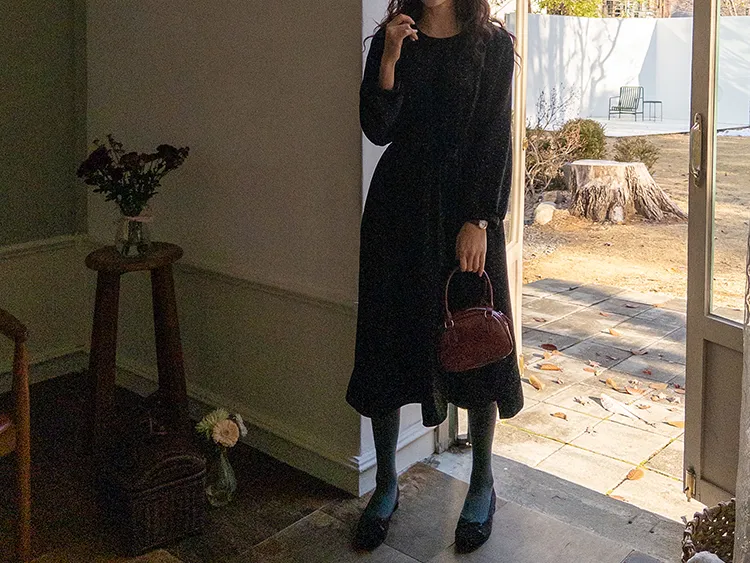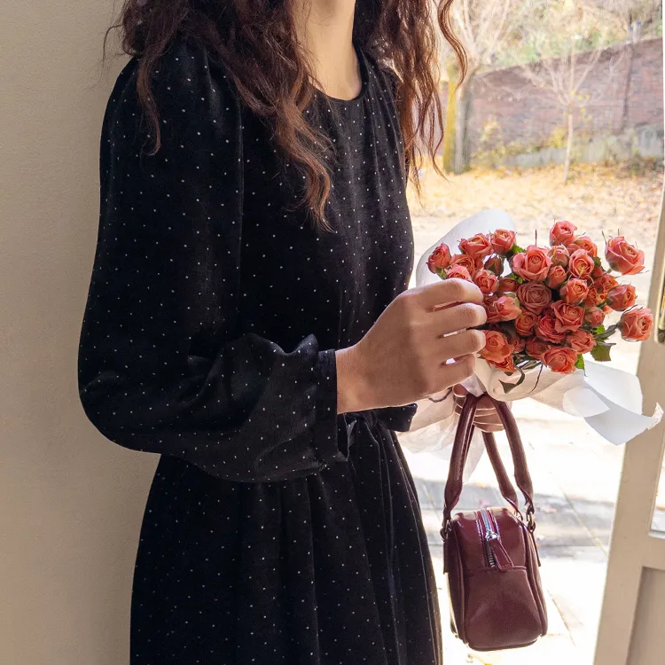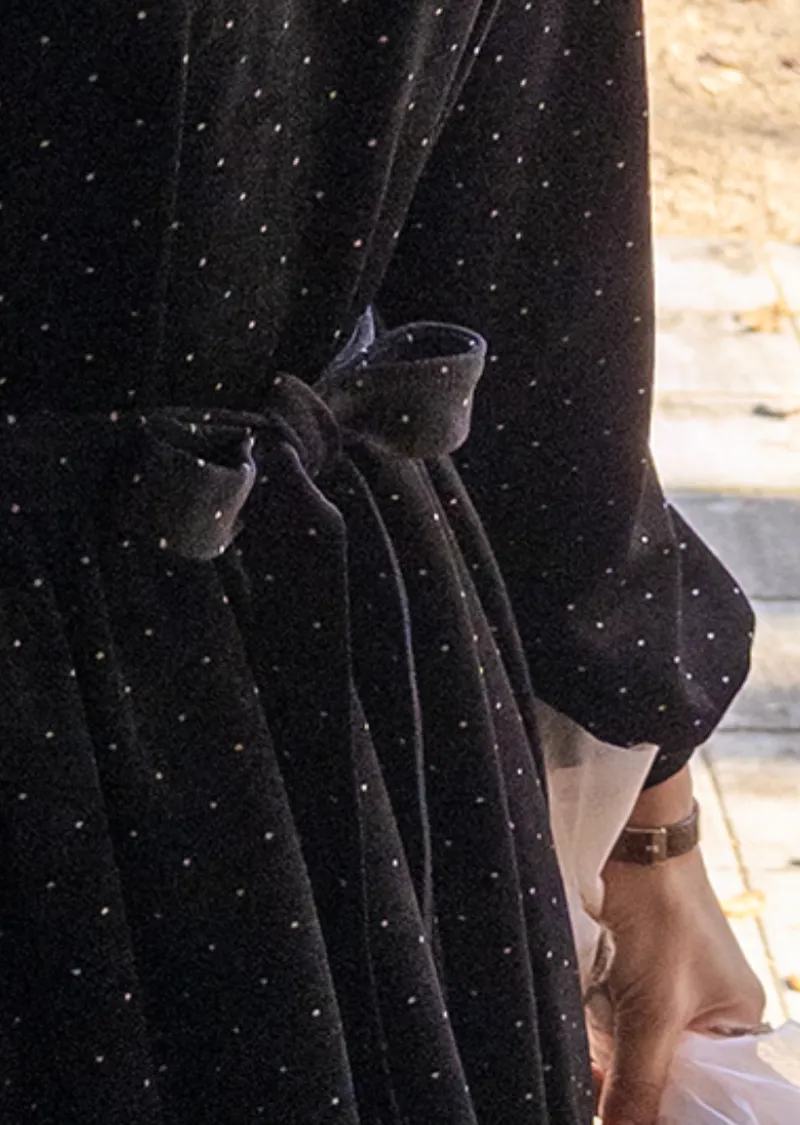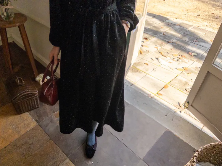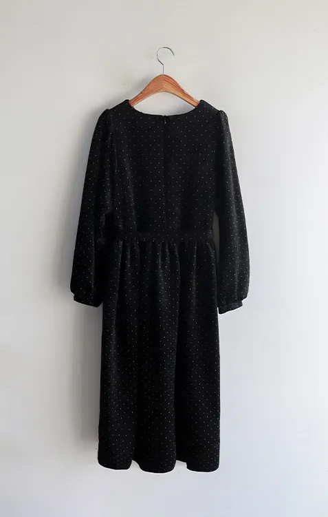 【厚絨材質最適合冬季♥】【沉穩的圓點圖案充滿可愛魅力~】【搭配腰帶可以打造多種合身效果】【修飾身體線條的連身裙!】