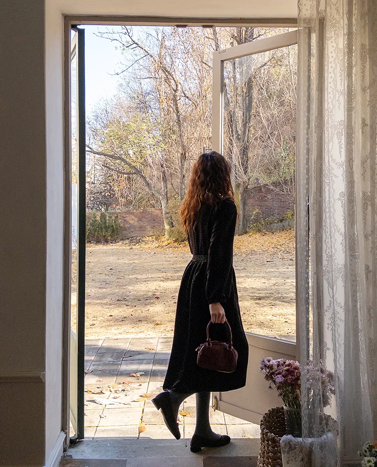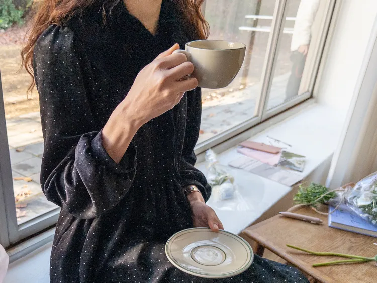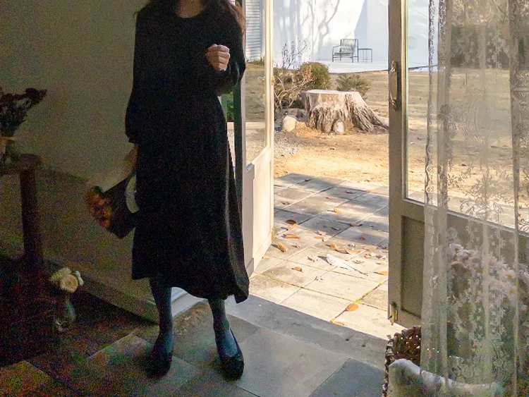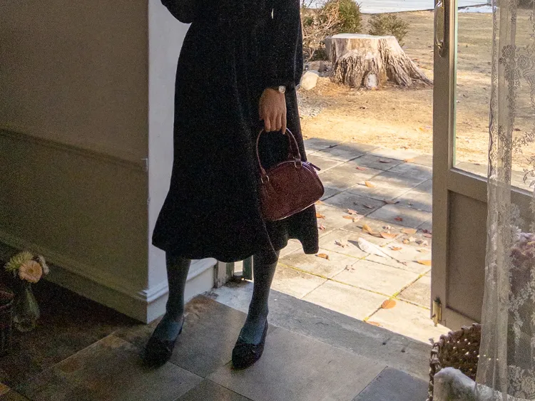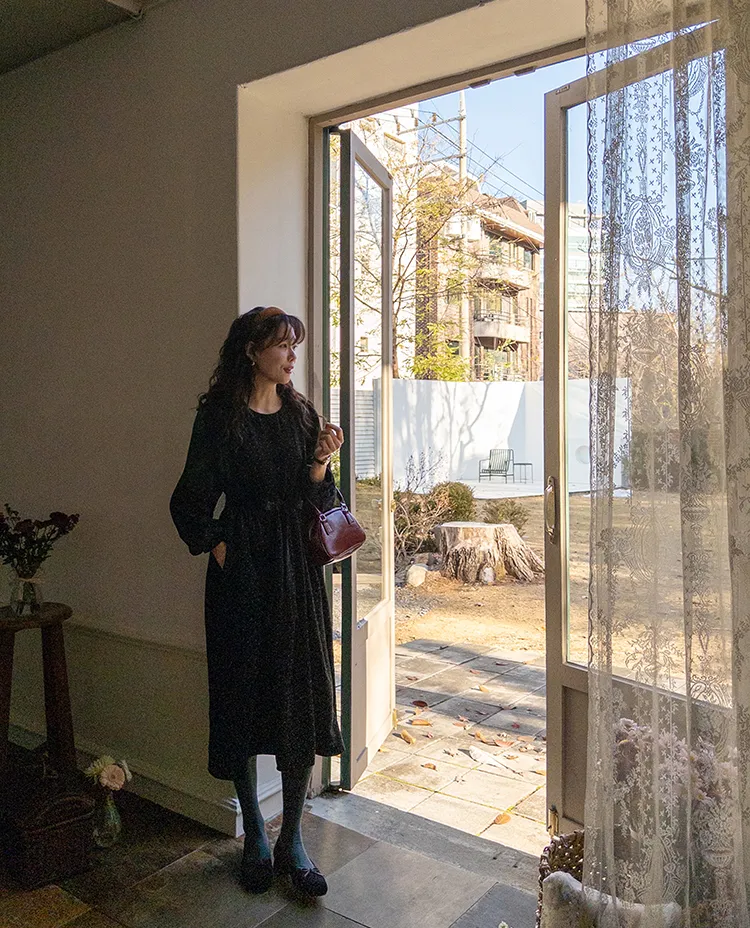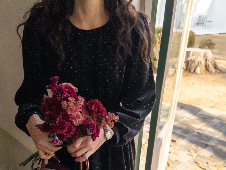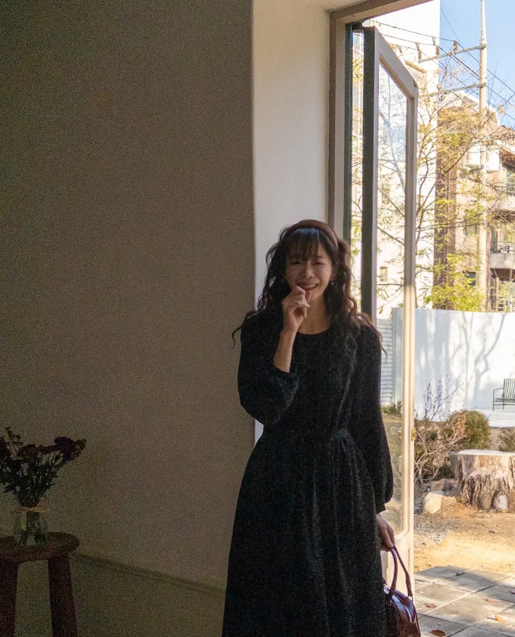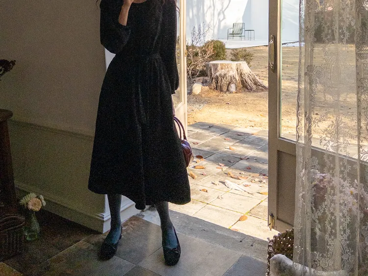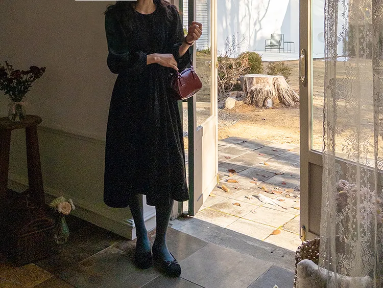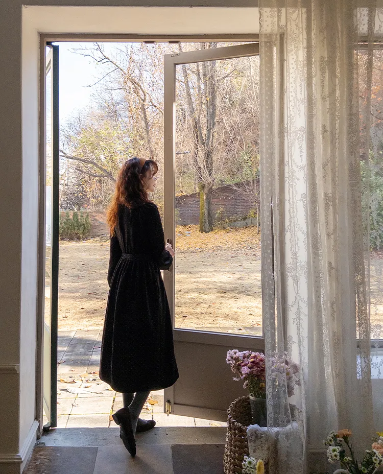 【厚絨材質最適合冬季♥】【沉穩的圓點圖案充滿可愛魅力~】【搭配腰帶可以打造多種合身效果】【修飾身體線條的連身裙!】