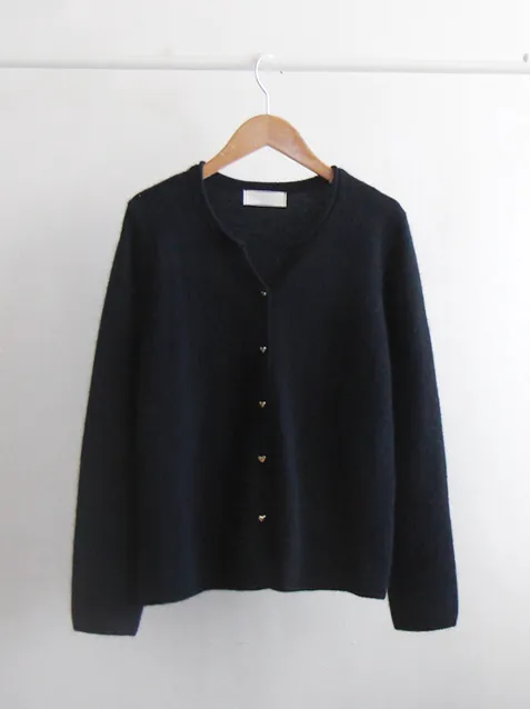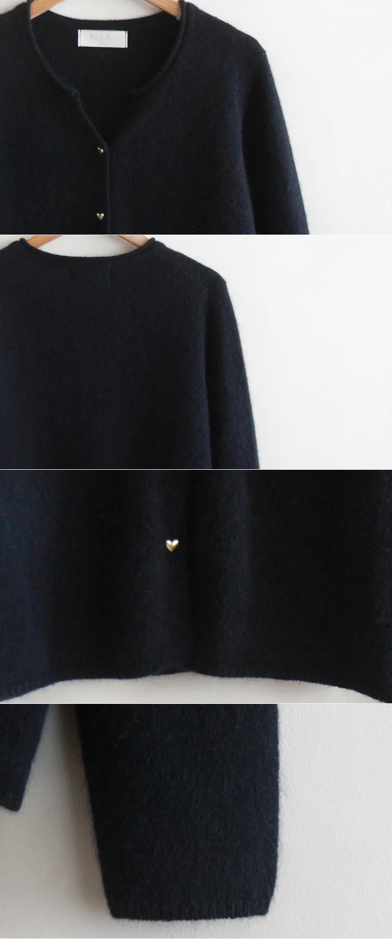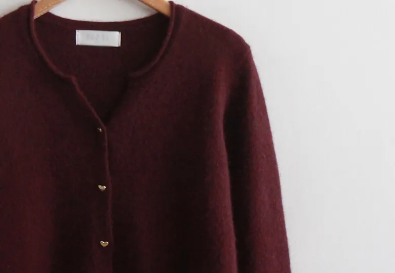 [品牌品質] [溫暖針織,柔軟溫暖] [心形鈕扣營造出精緻的氛圍] [奢華又可愛的奢華浣熊開襟衫]
