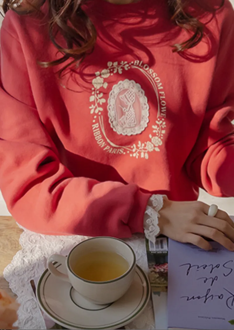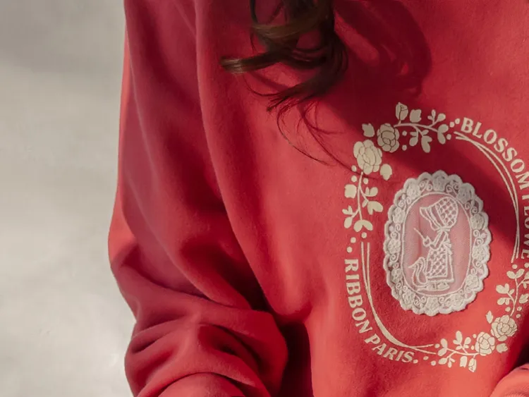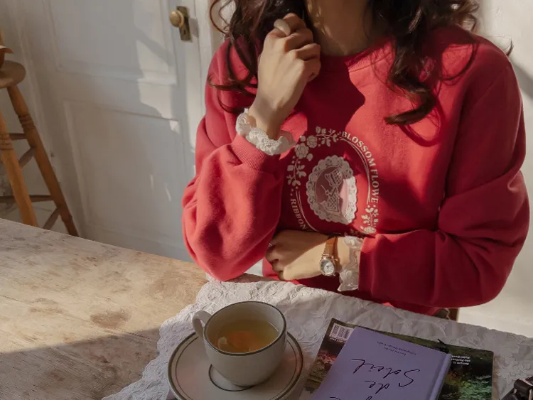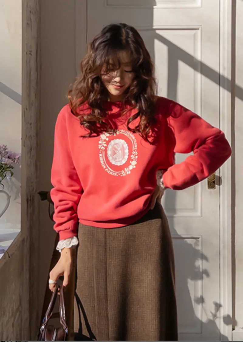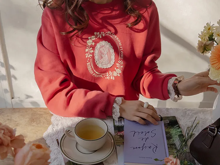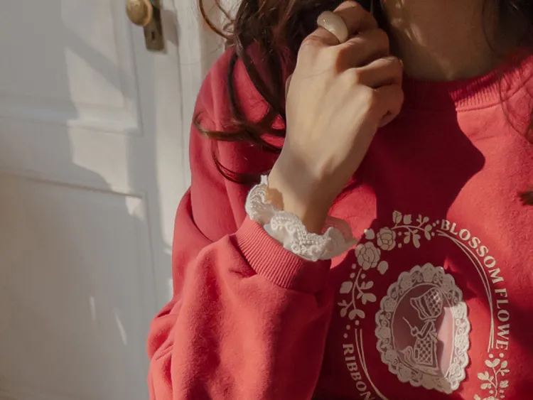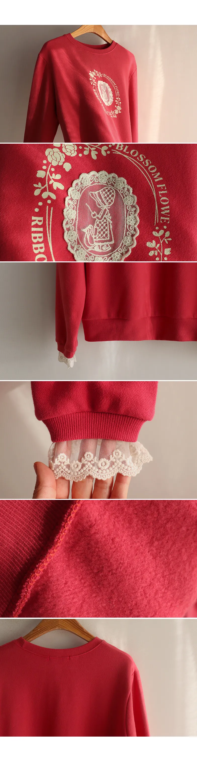 【加厚拉絨布料,讓你溫暖一冬】【正面蕾絲刺繡&袖子蕾絲增加可愛感!】