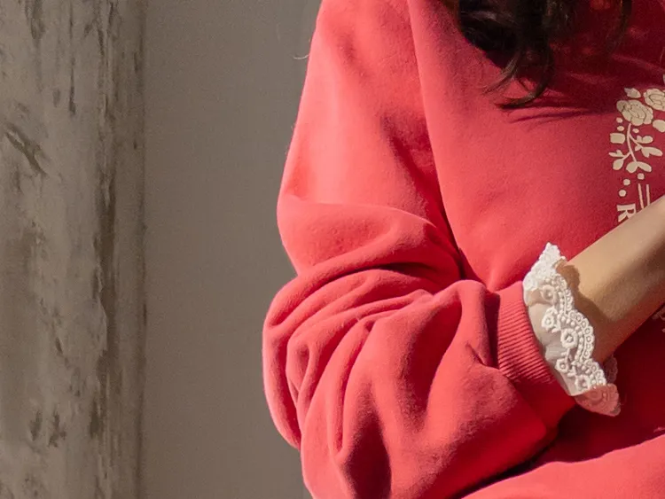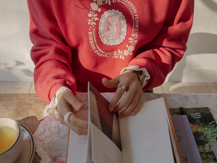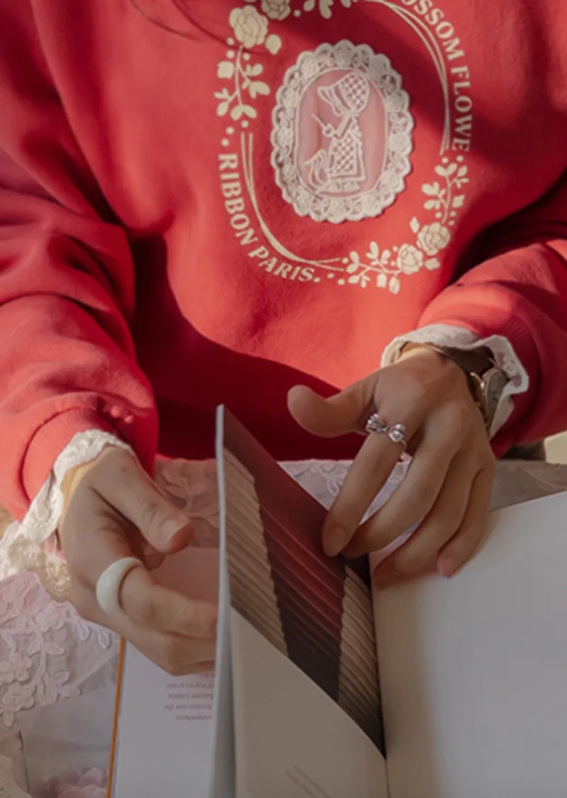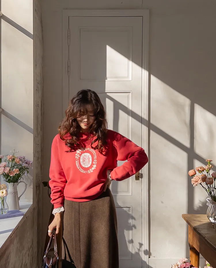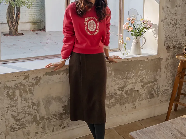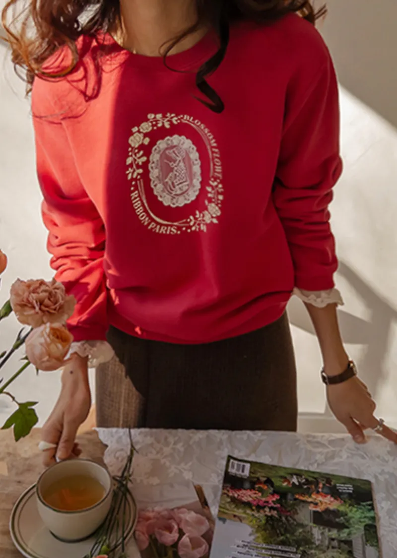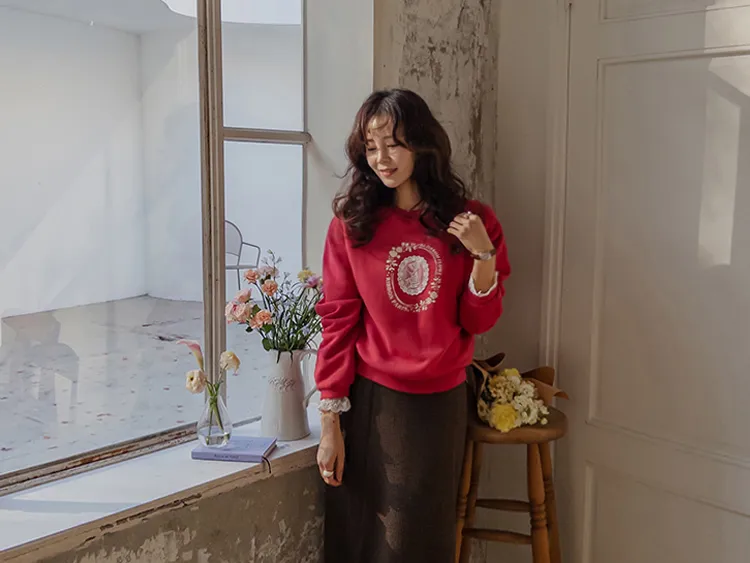 【加厚拉絨布料,讓你溫暖一冬】【正面蕾絲刺繡&袖子蕾絲增加可愛感!】