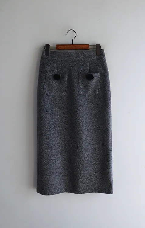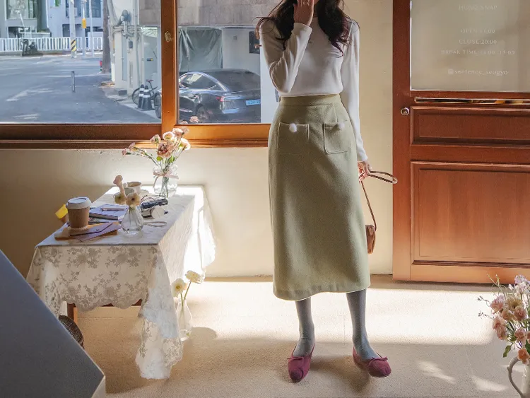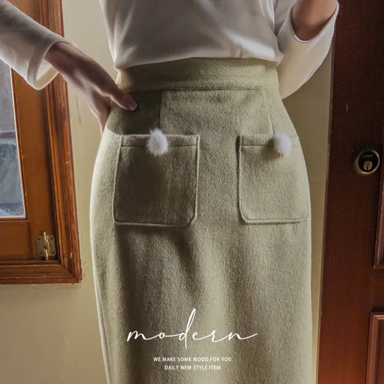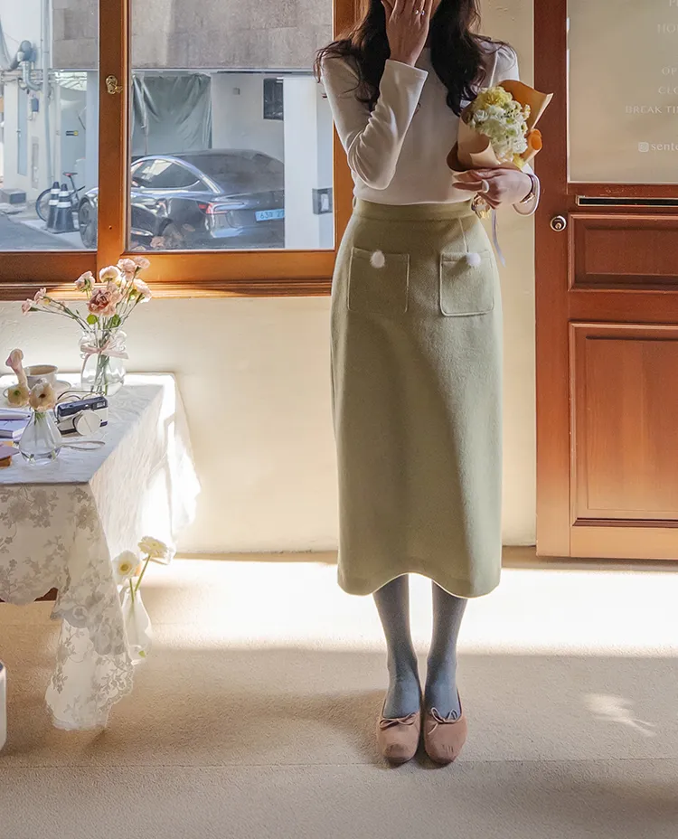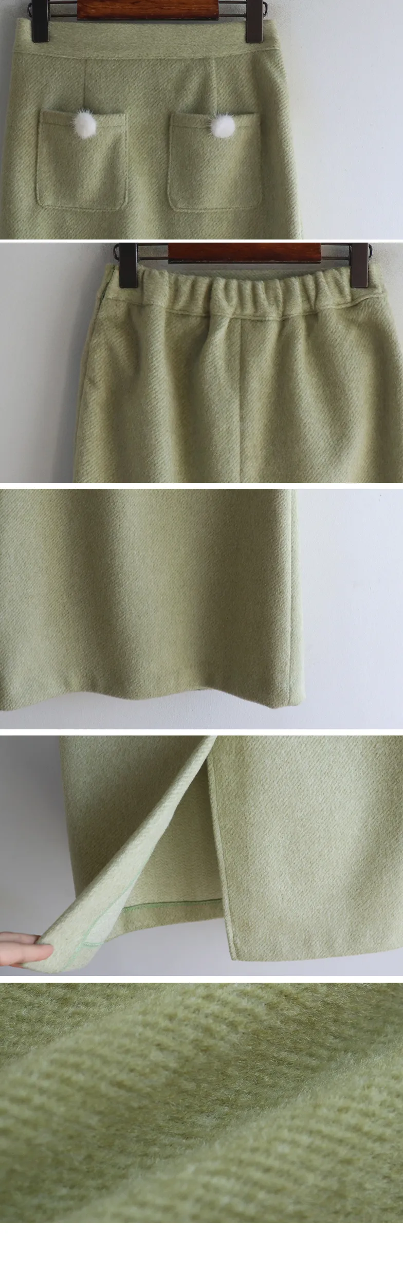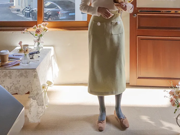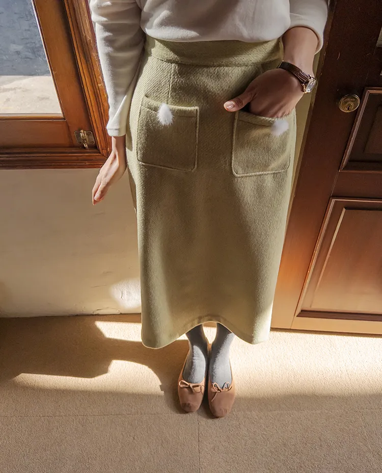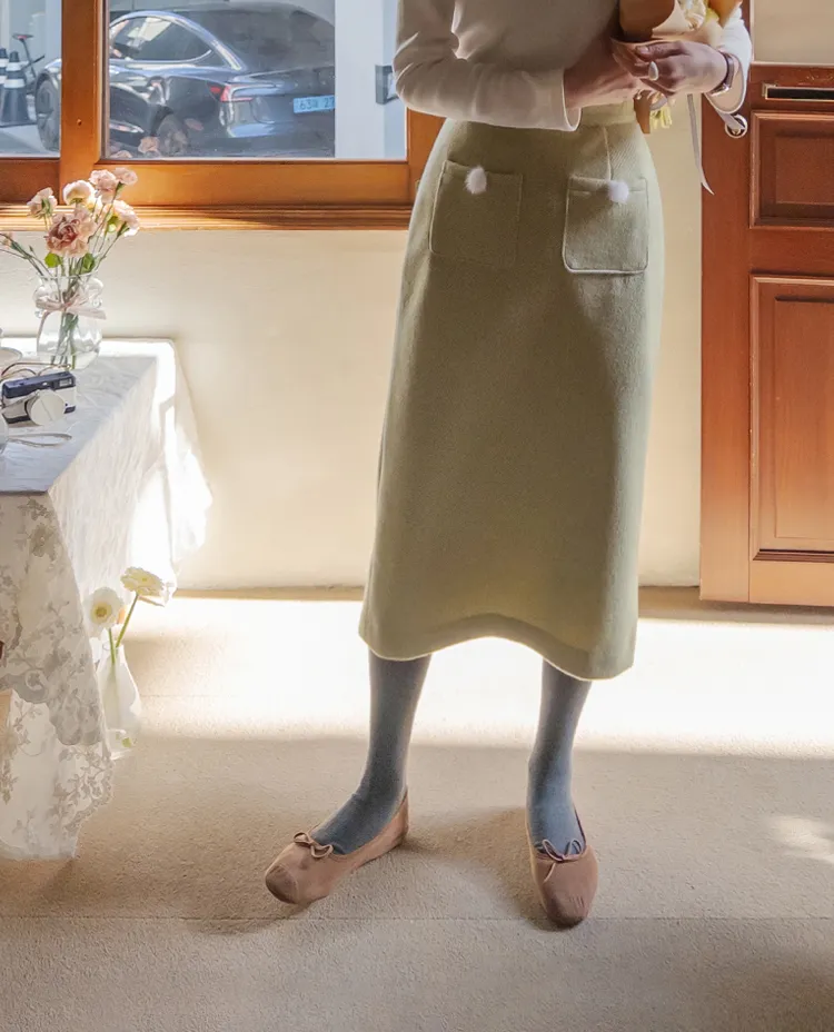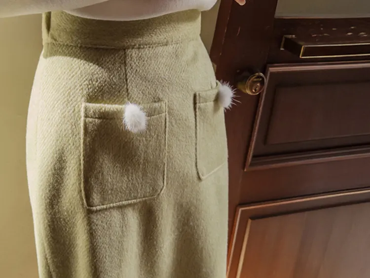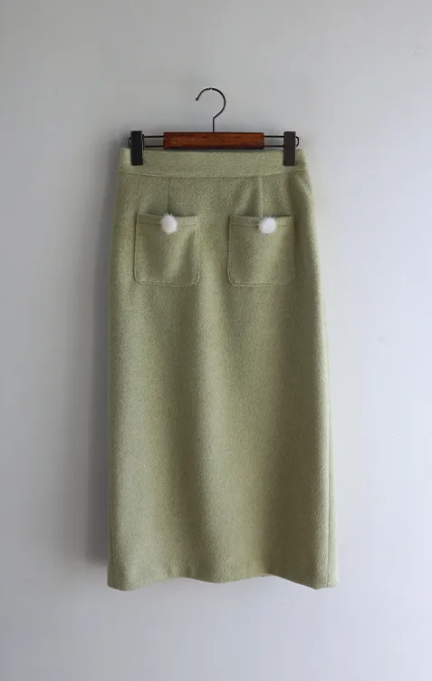 點綴可愛毛絨球H剪裁後開衩中長裙