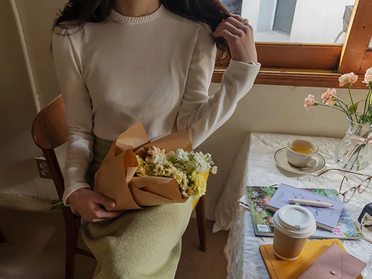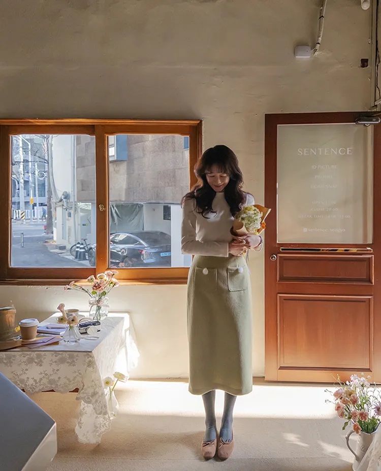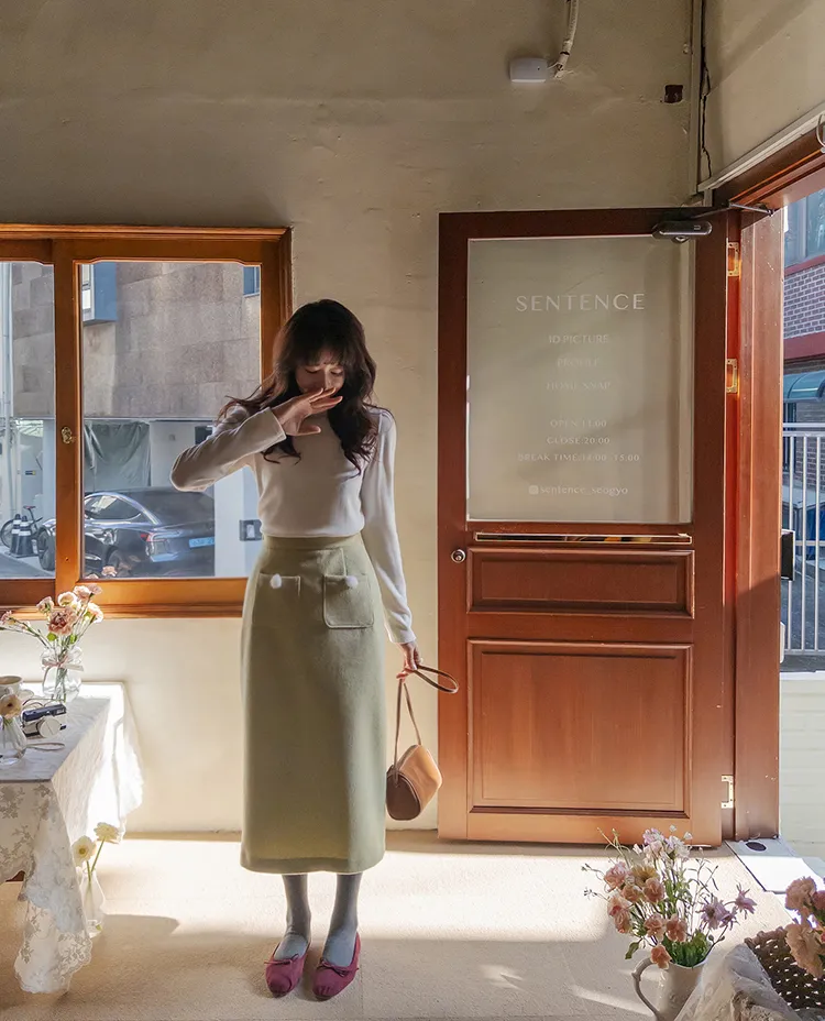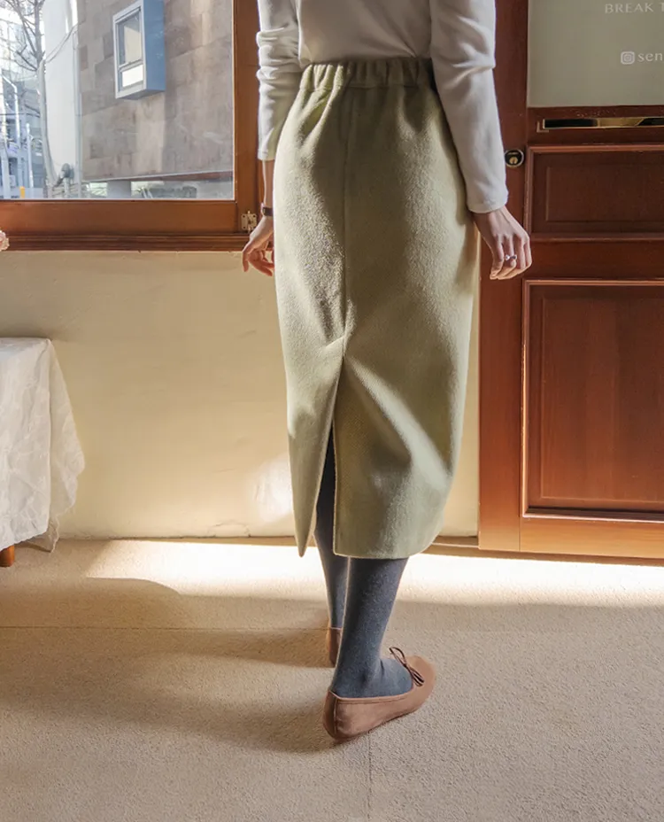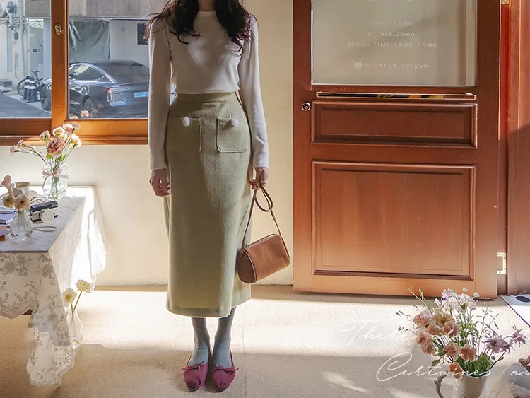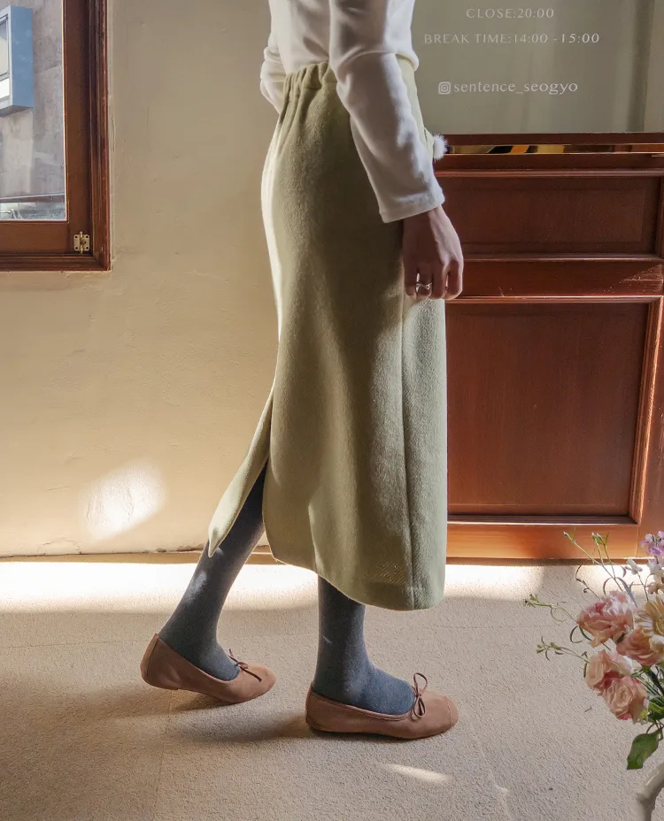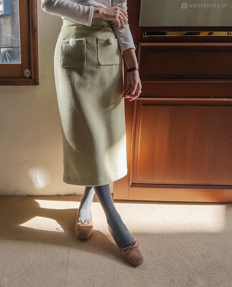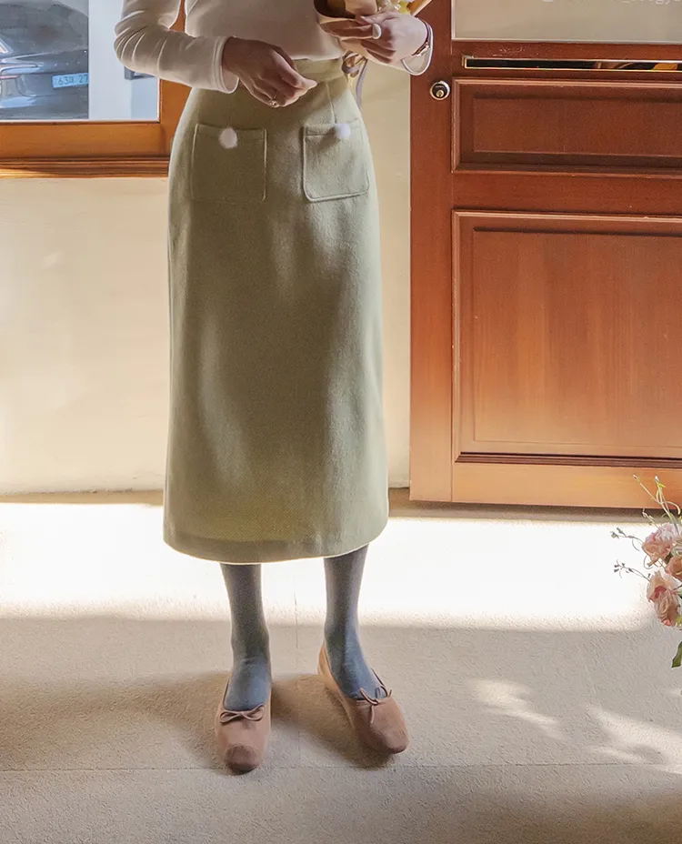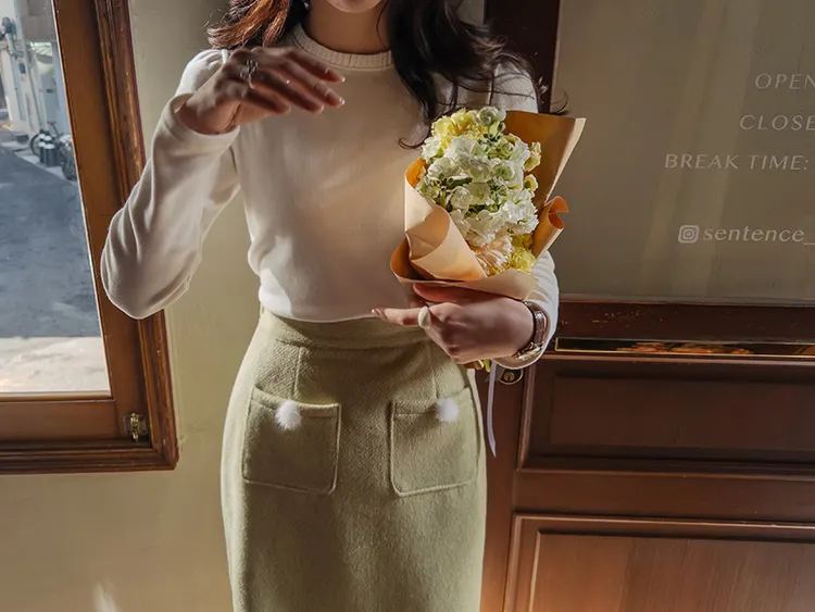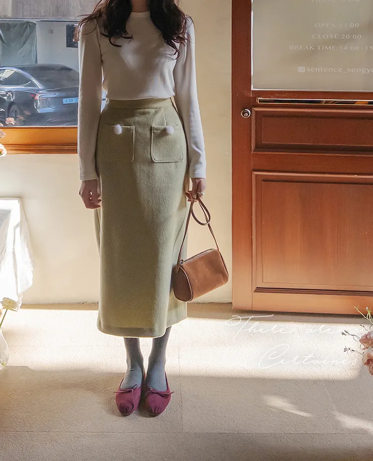 點綴可愛毛絨球H剪裁後開衩中長裙