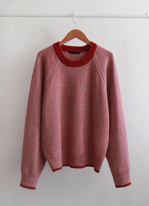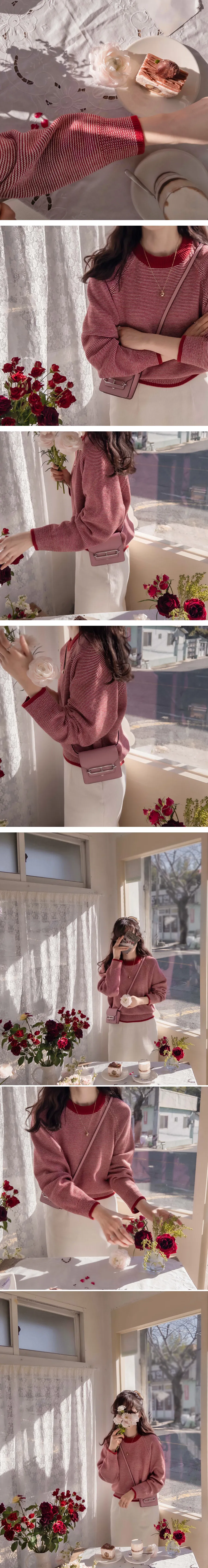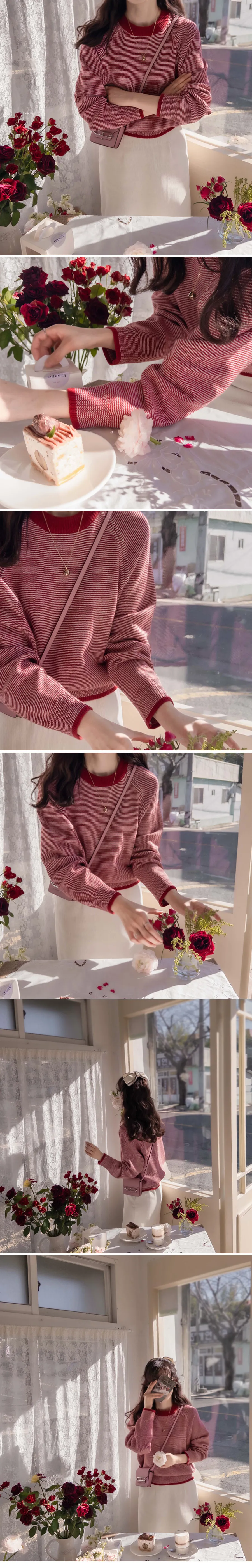 精緻感領口組合色柔軟舒適條紋針織上衣