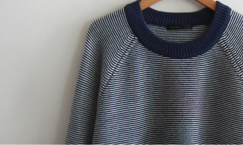 【保暖針織,手感柔軟】【條紋圖案,打造精緻感】【領口顏色的獨特設計】【保暖好穿,時尚合身】【適合日常穿著的針織上衣