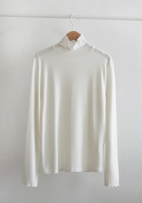 [抓絨極地][柔軟、有彈性的T 卹,以波浪為重點][柔軟、有彈性的氨綸,舒適的拉絨高領][頸部、袖末以波浪為重點][彈性、舒適布料,含4%氨綸] [易於與精緻色彩搭配的 T 卹] [時尚合身的高領上衣]