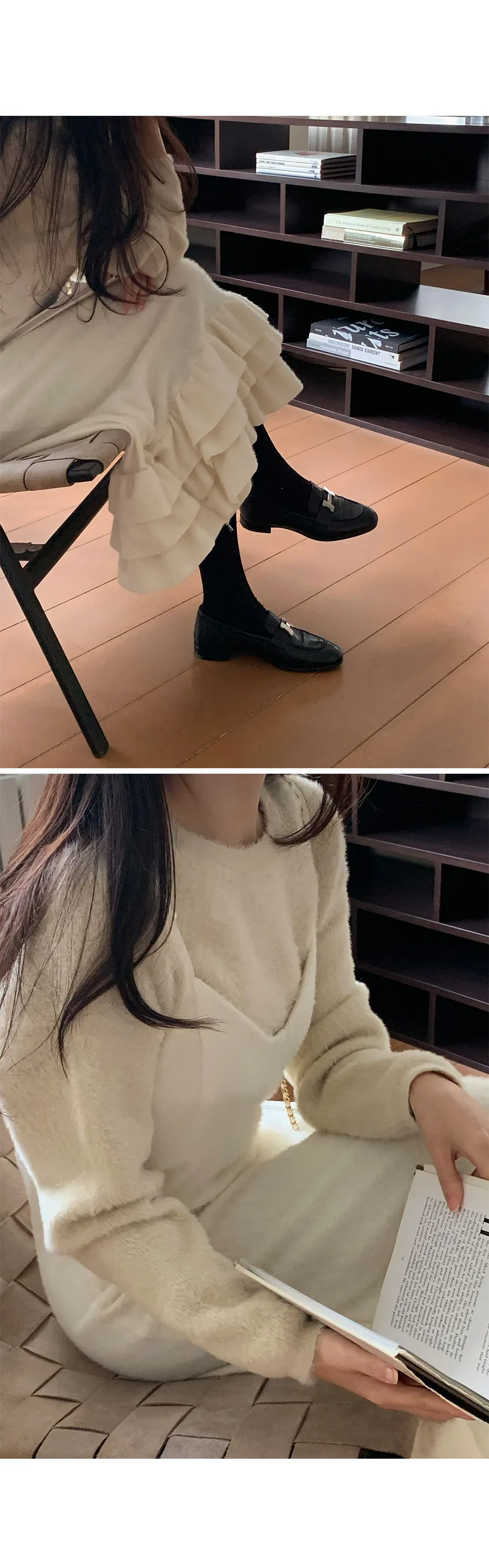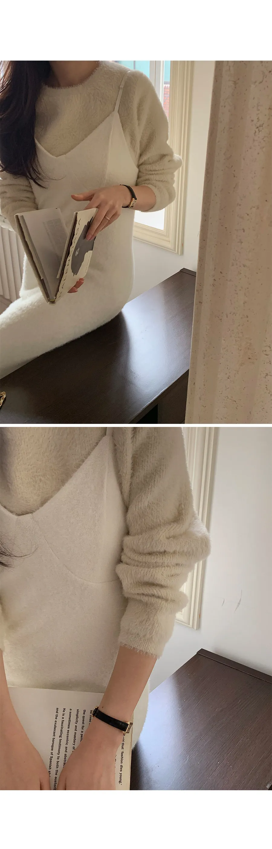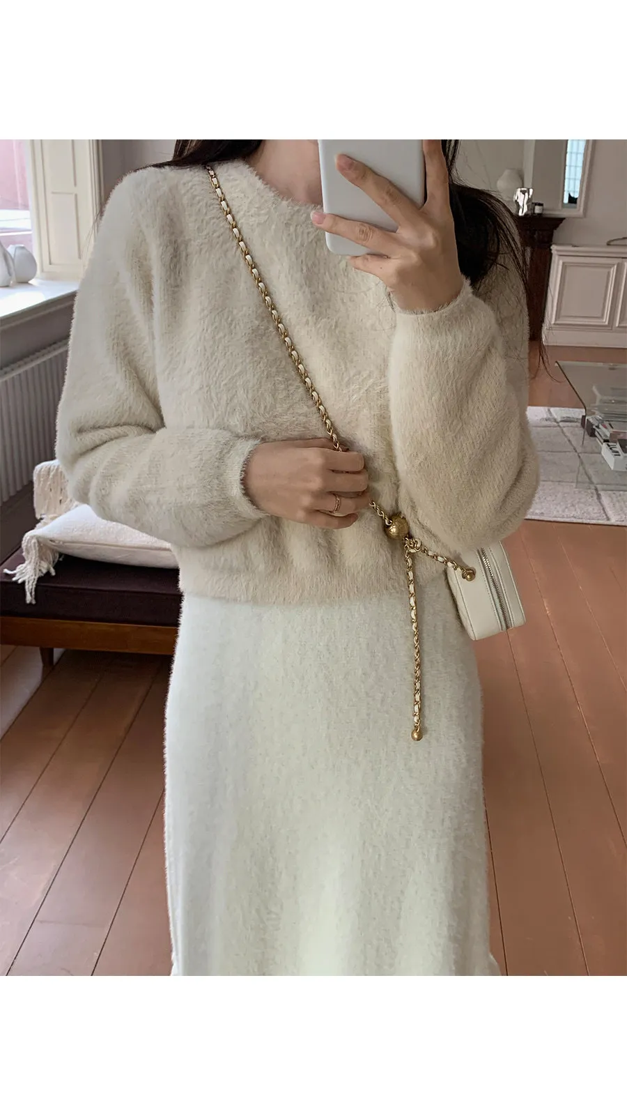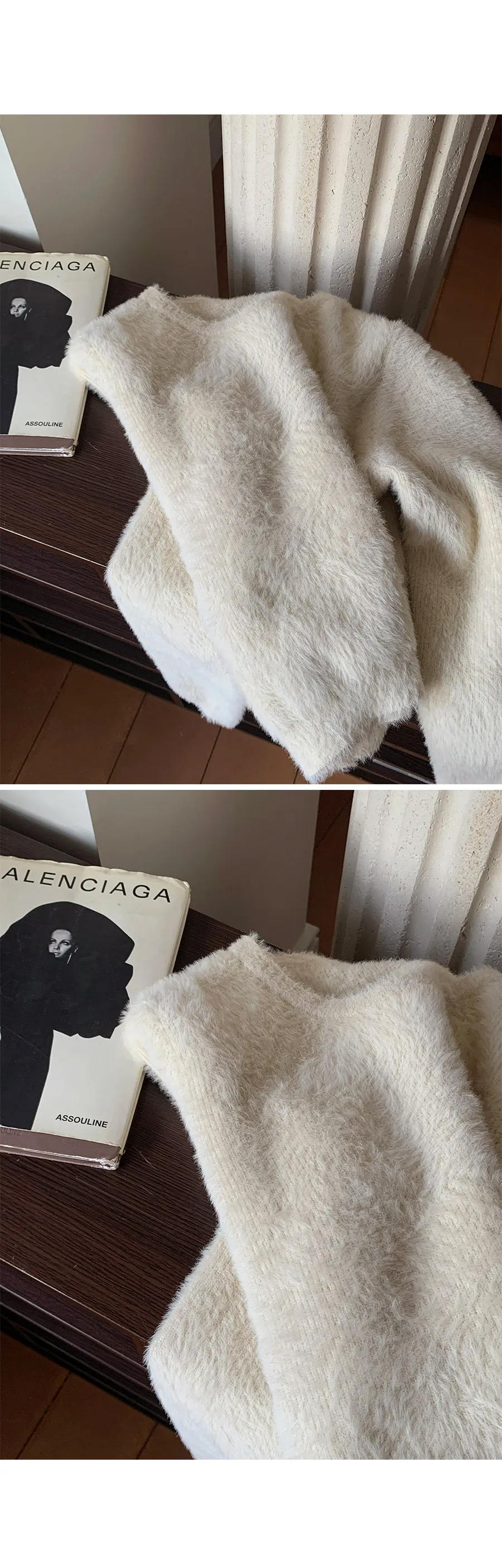 柔和圓領蓬鬆柔軟毛絨半短款針織上衣