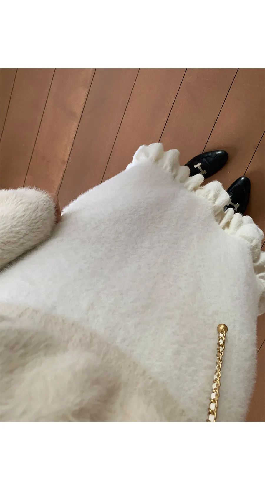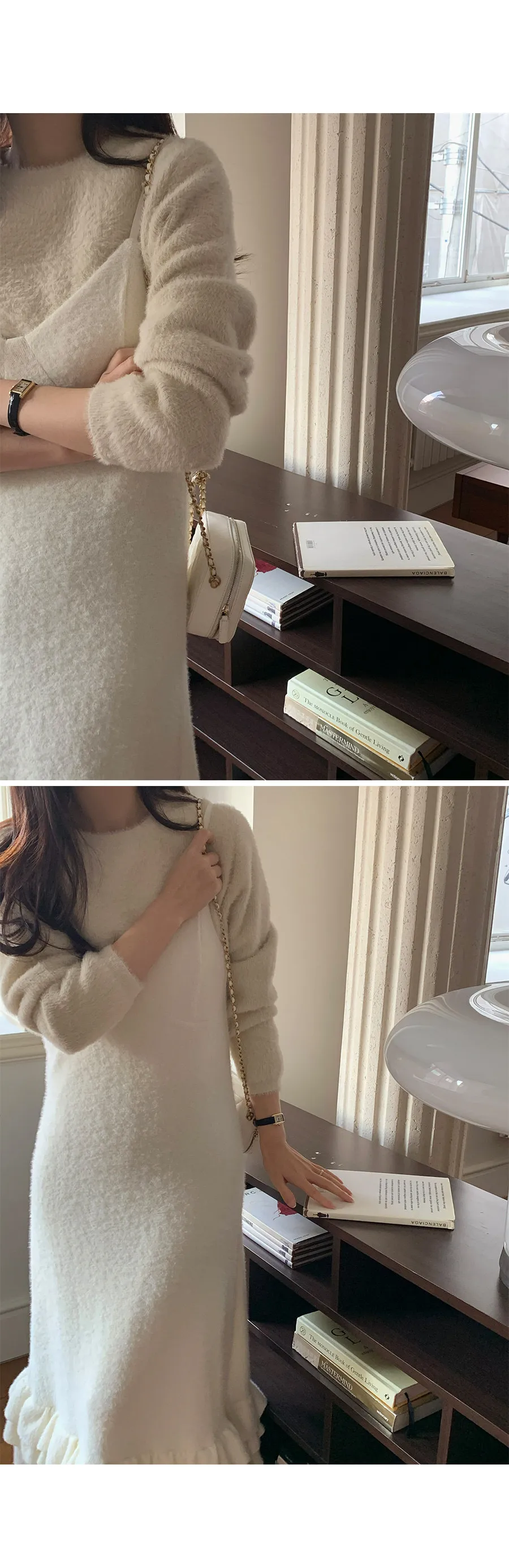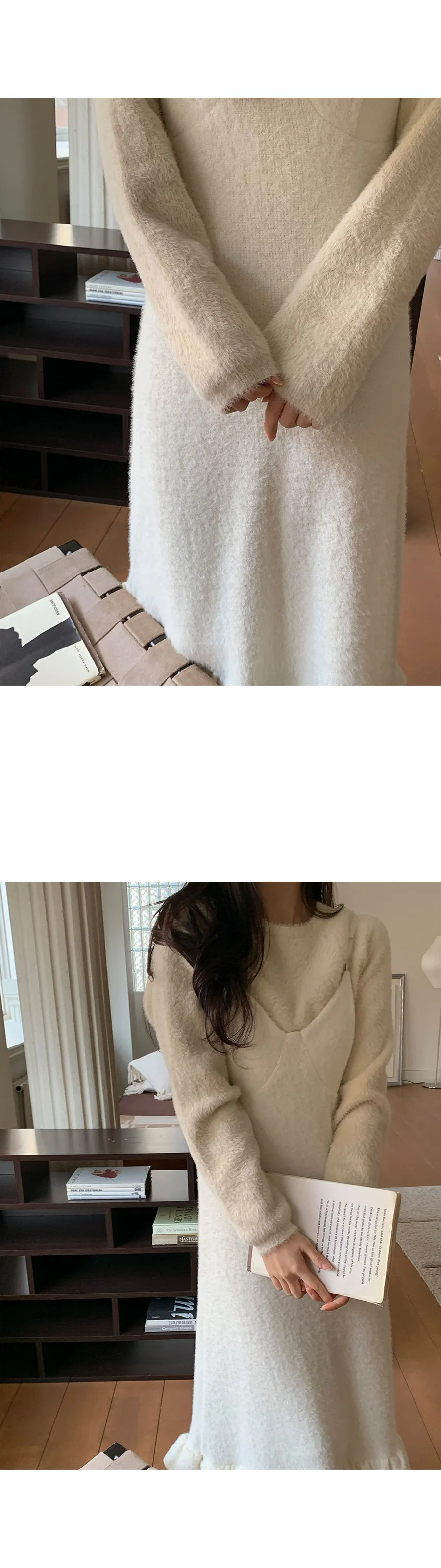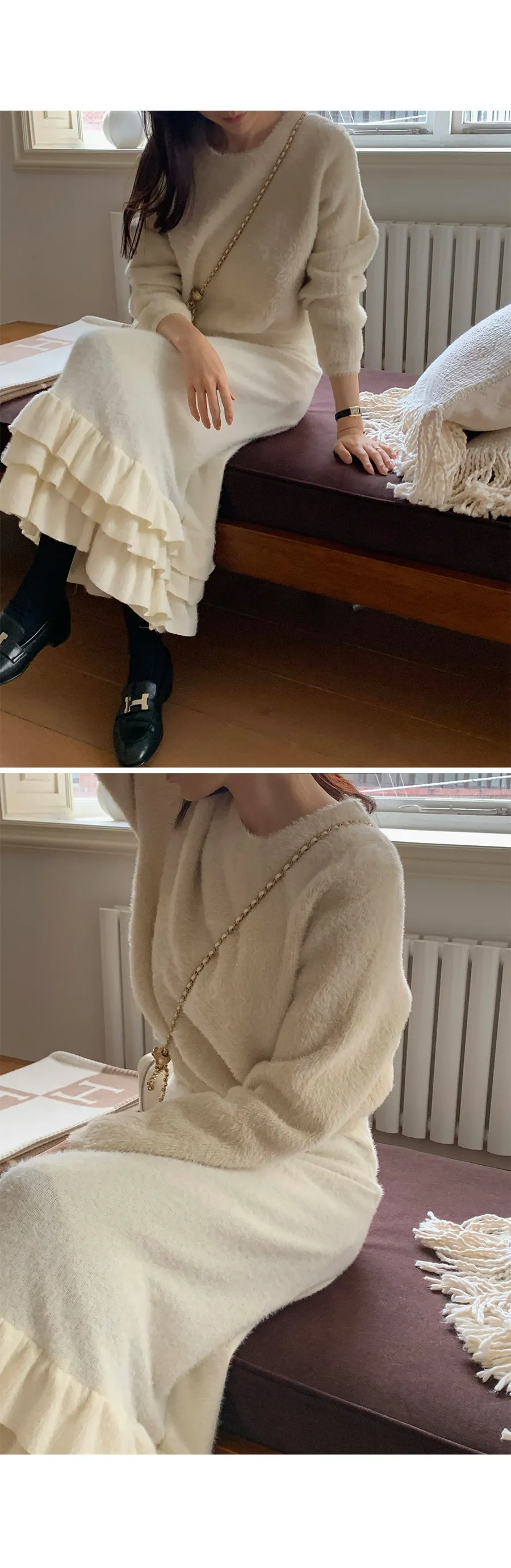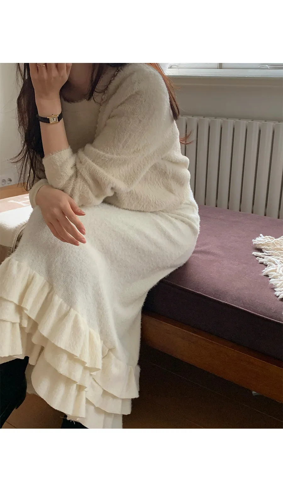 柔和圓領蓬鬆柔軟毛絨半短款針織上衣