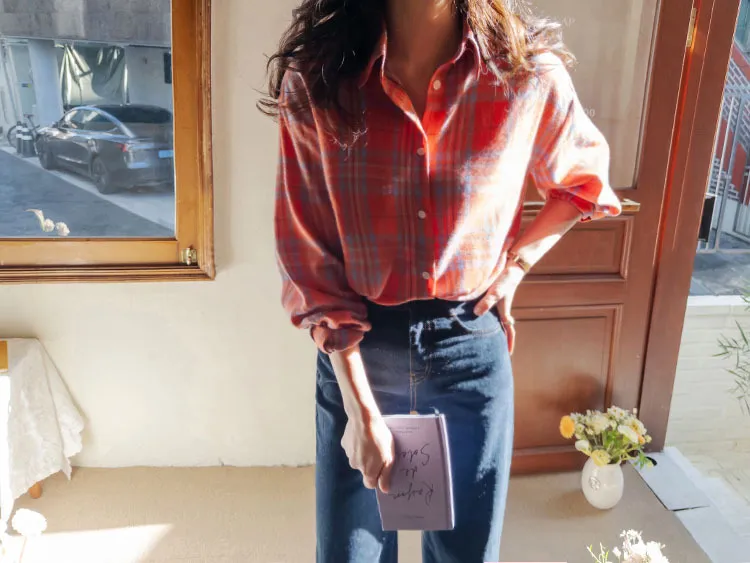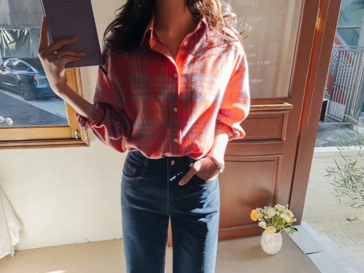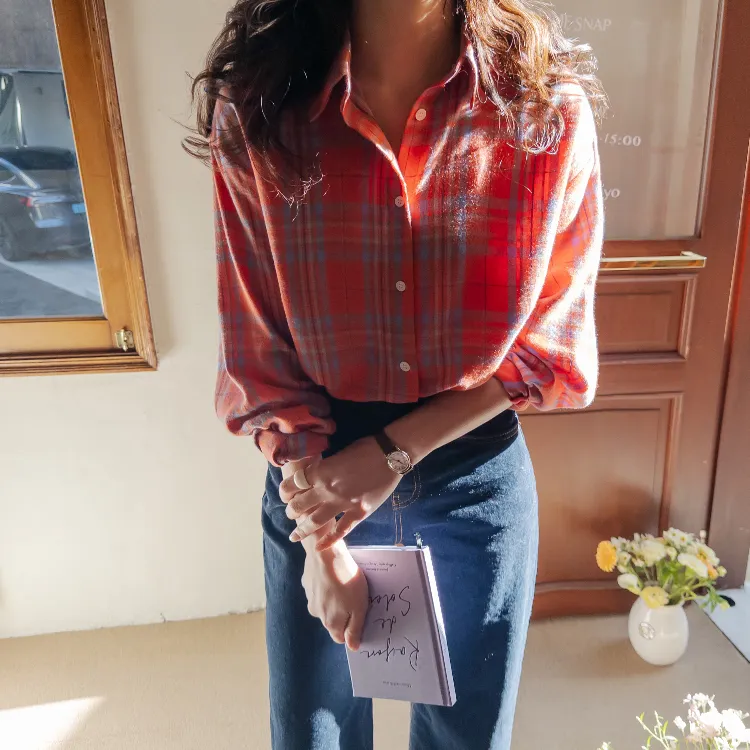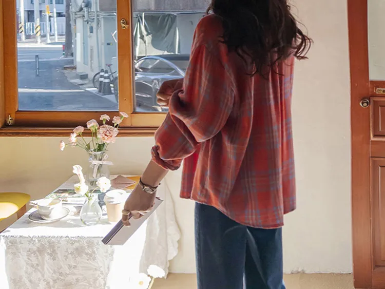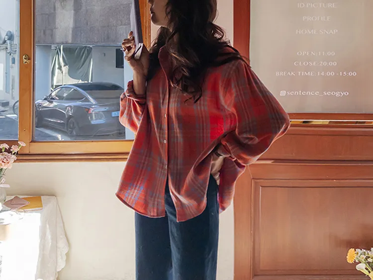 【顏色鮮豔,格紋圖案漂亮的襯衫】【外層抓絨柔軟,冬天也保暖】【新季穿的襯衫~】【疊穿和單穿都很適合!