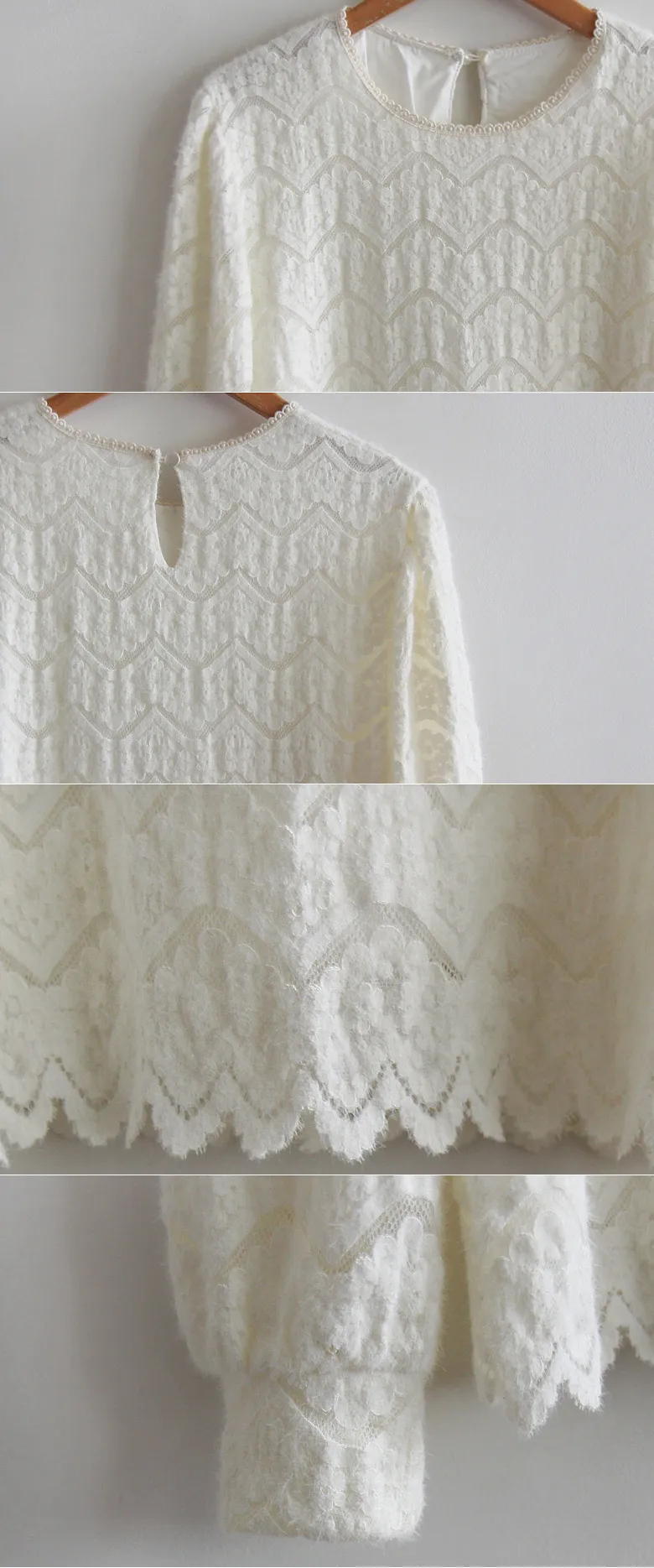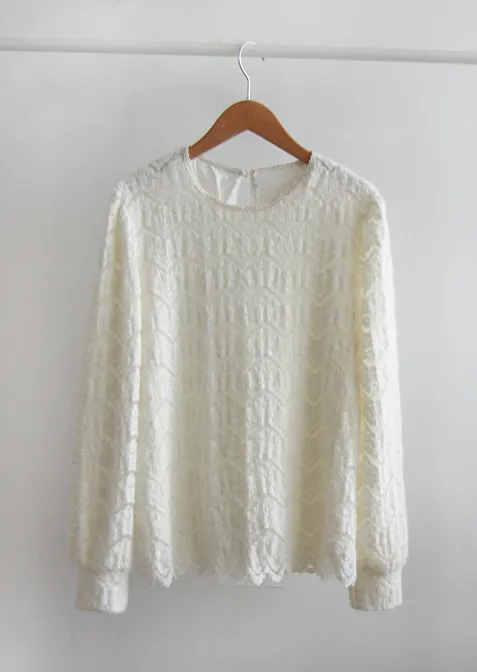 [聚酯襯裡][這件上衣非常可愛,採用彈性拉絨蕾絲面料][我整個季節都喜歡它][領口採用迷你波浪蕾絲製成,給人一種優雅的感覺][浪漫時尚合身拉絨上衣有著獨特的魅力]