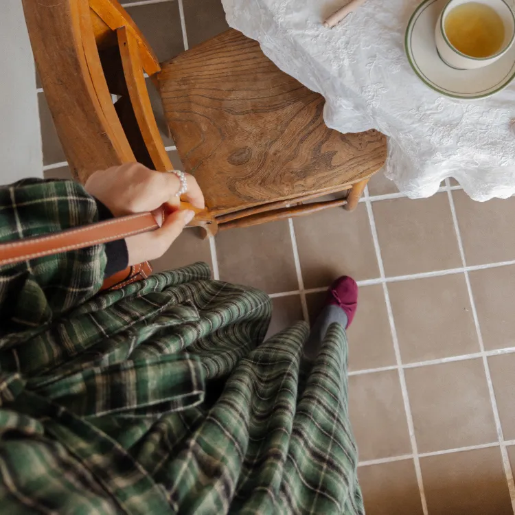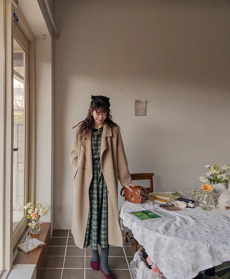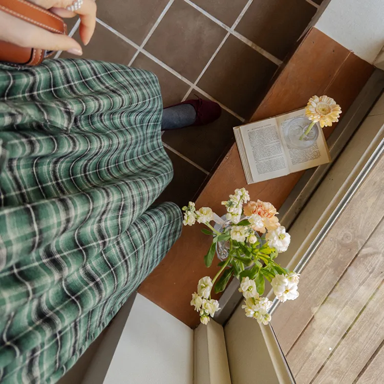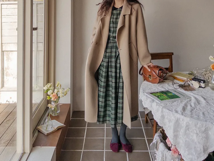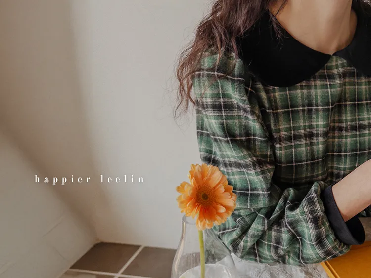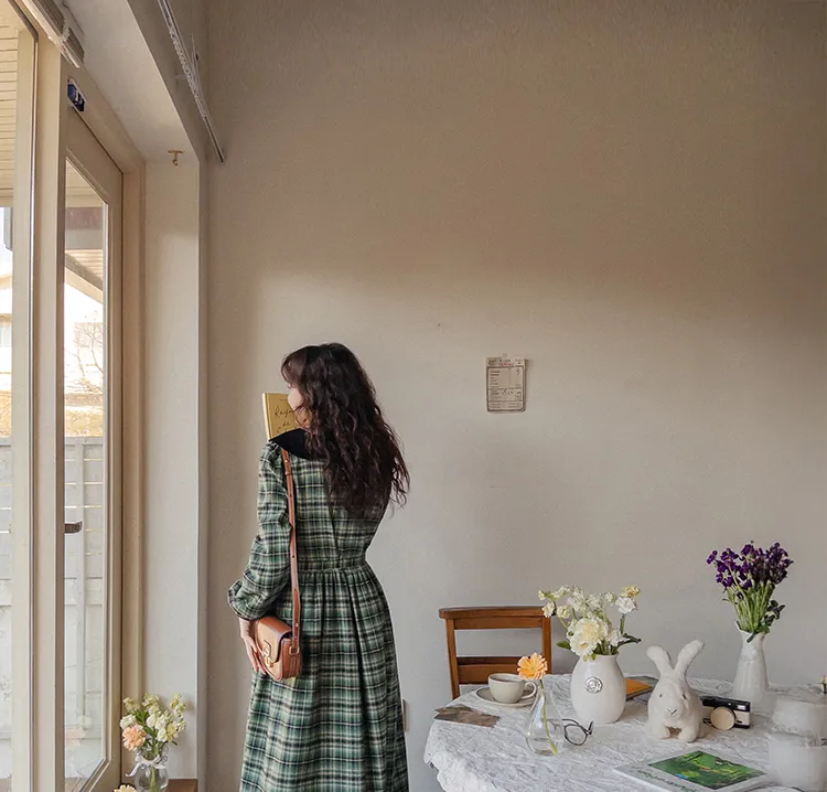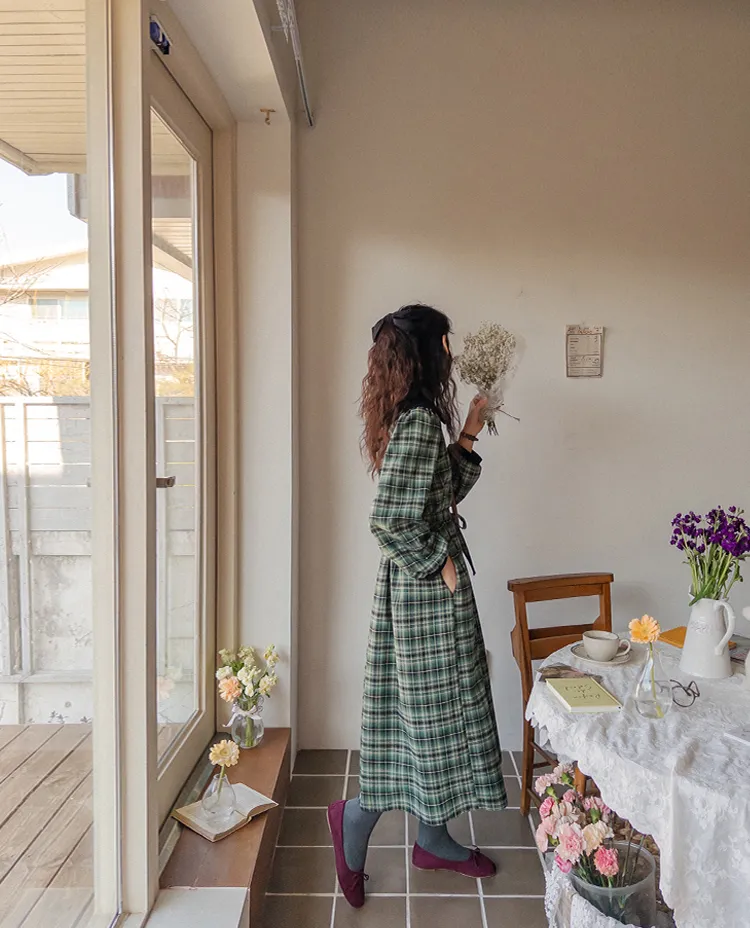 【領口&袖子天鵝絨顏色組合-!】【充滿格紋圖案的可愛又迷人~】【永遠不會過時,所以每年都適合穿著】【您可以根據自己的品味和體型用腰帶進行調整】