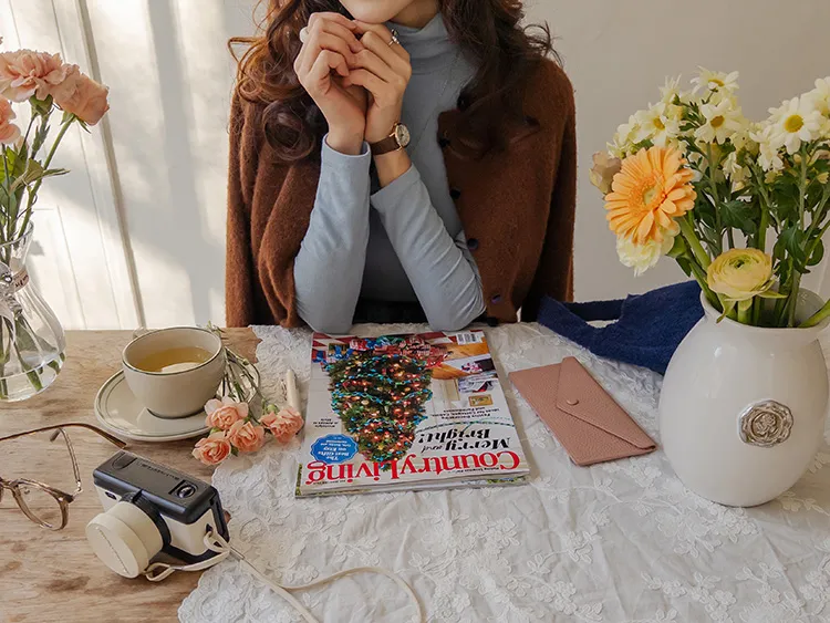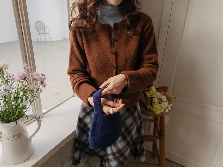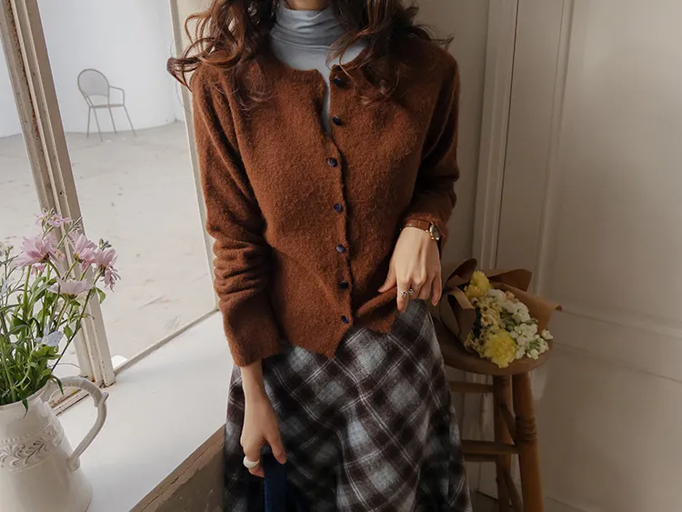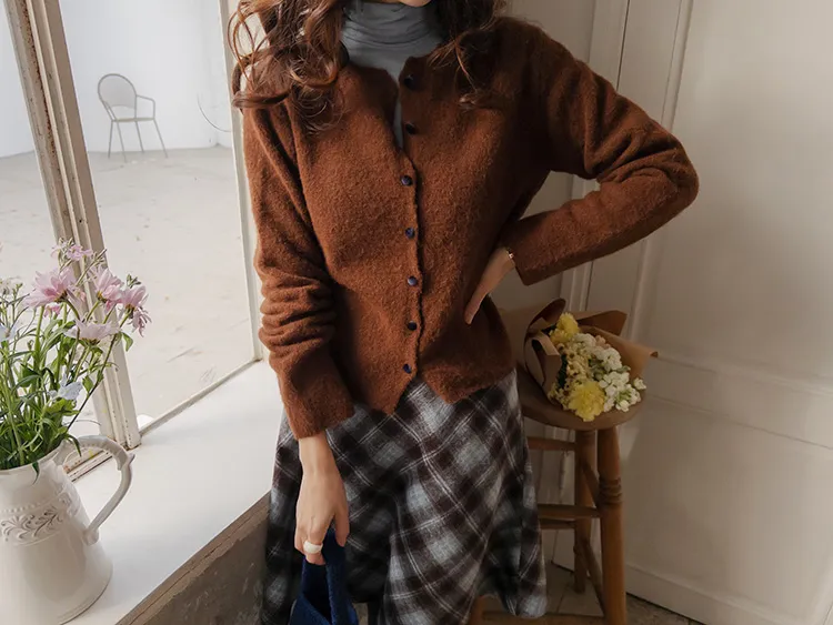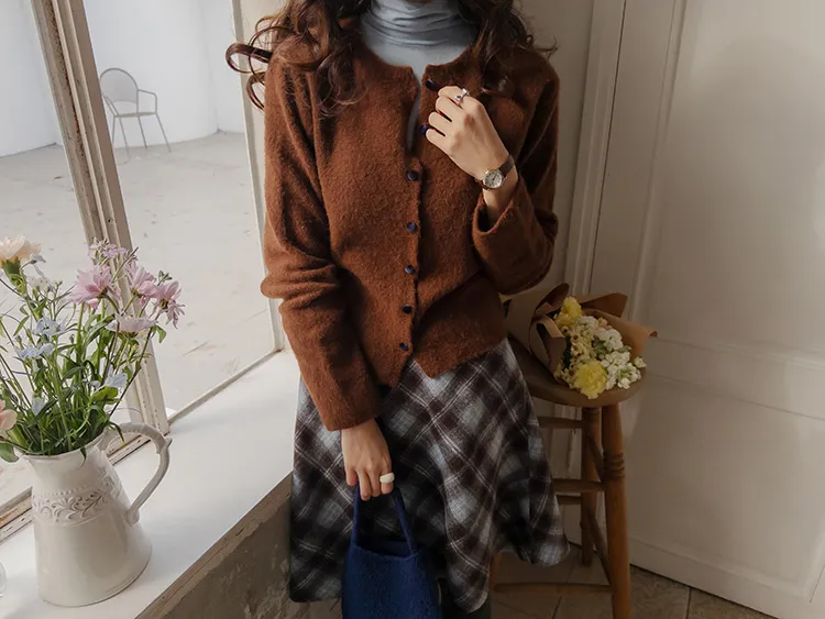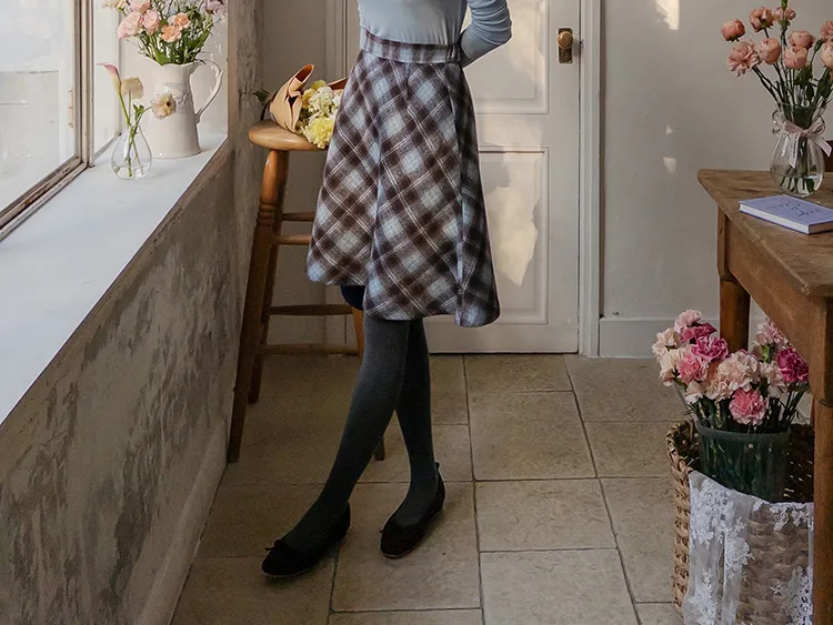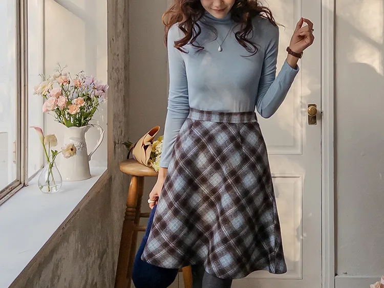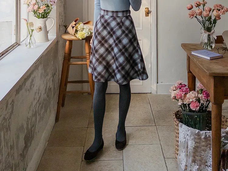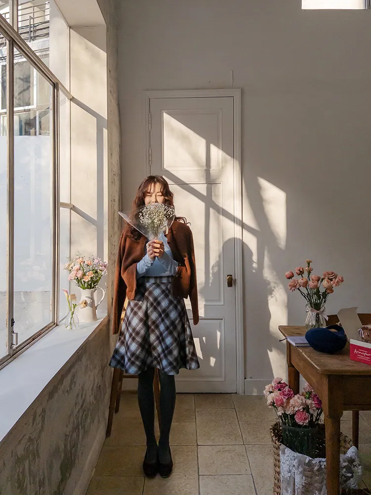 浪漫格紋絨質柔軟線條及膝裙