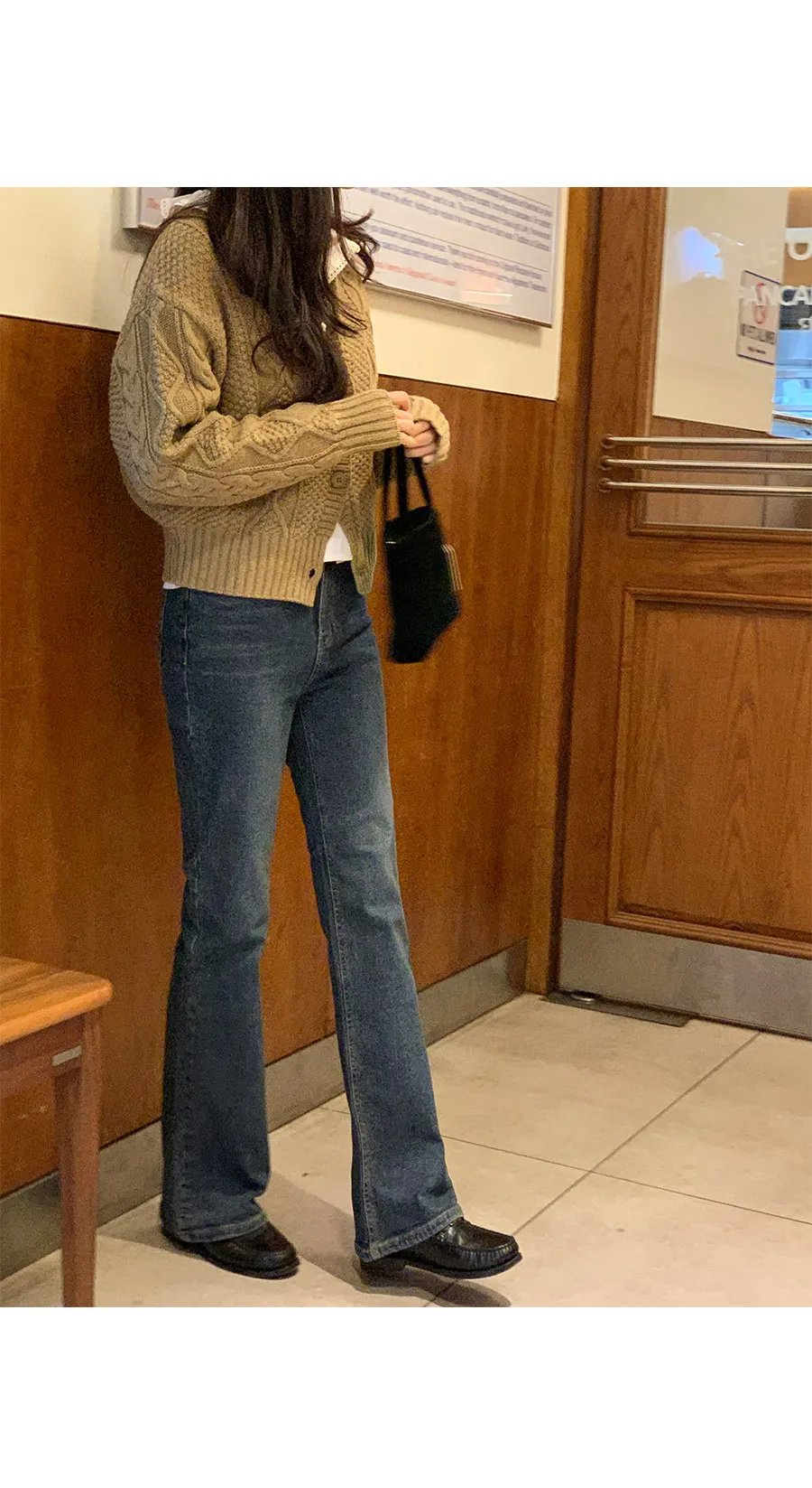 拉絨襯裡)永不過時的牛仔布顏色,打造從中期到冬季的乾淨外觀! 修身微喇褲,強調腿部線條,但因氨綸材質,穿著舒適。