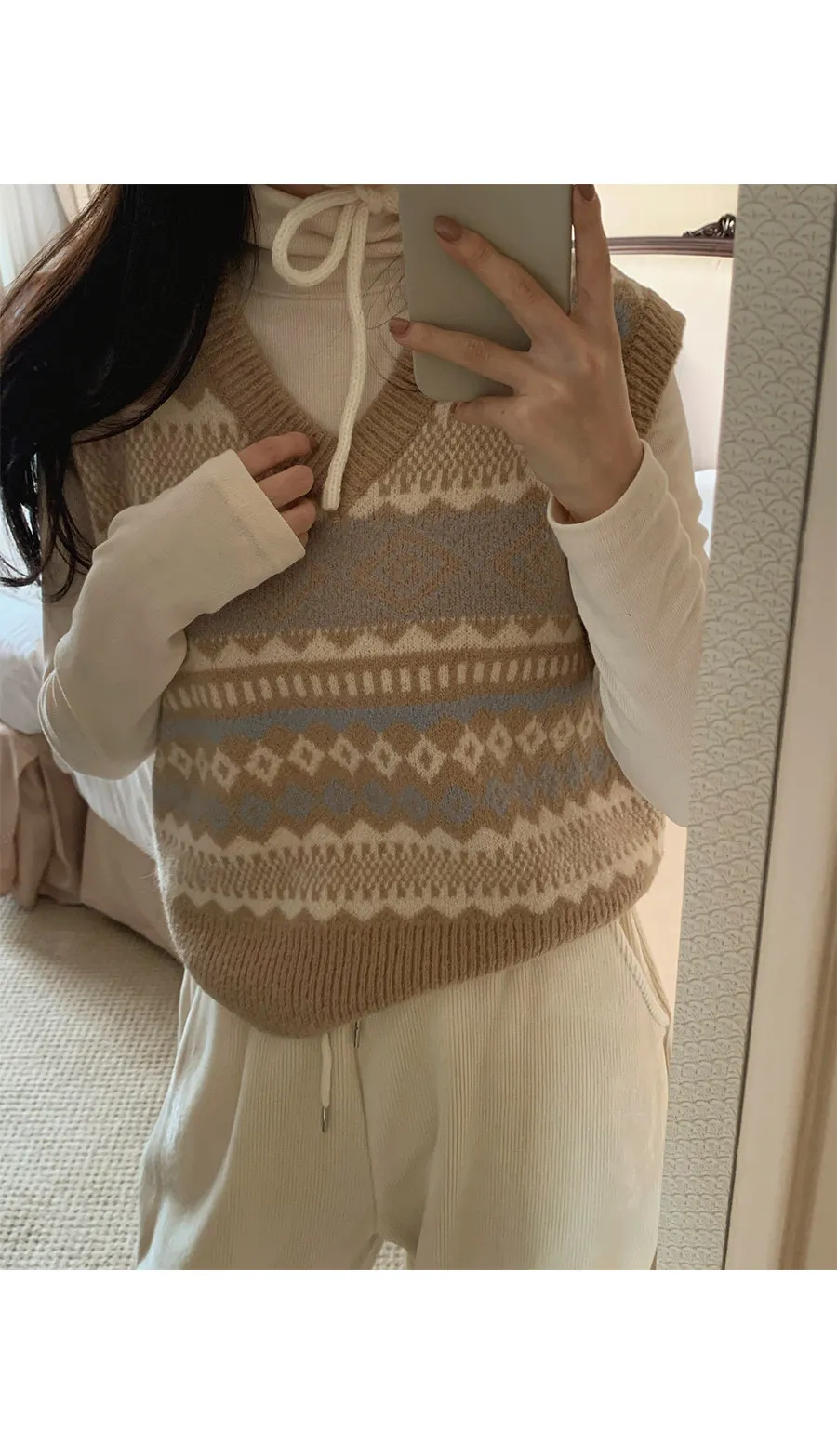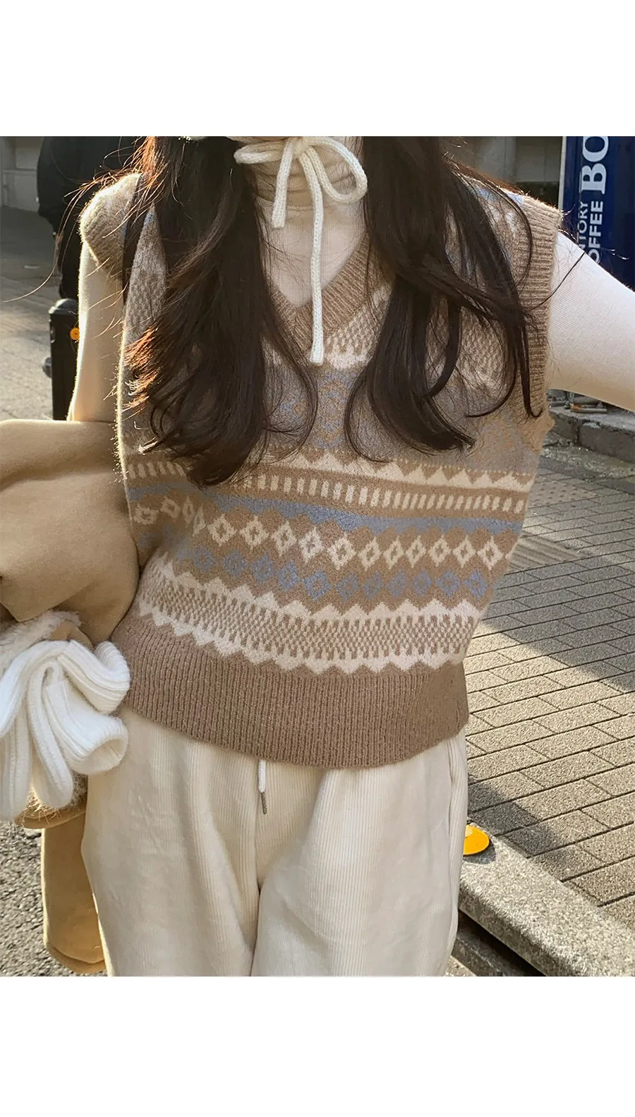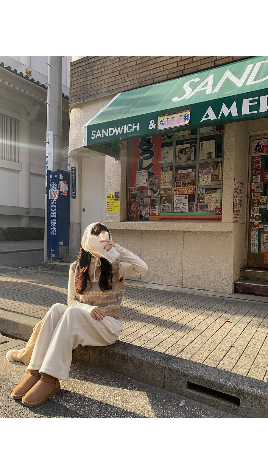 充滿季節感的北歐圖案 從秋天穿到冬天都很適合。領口、袖孔線和下擺的顏色組合增添了漂亮氛圍!