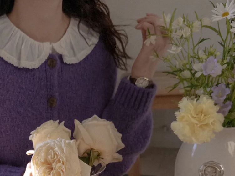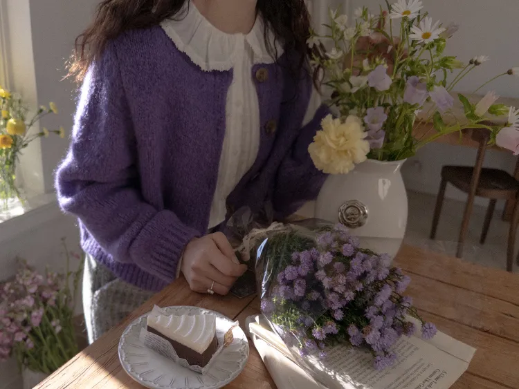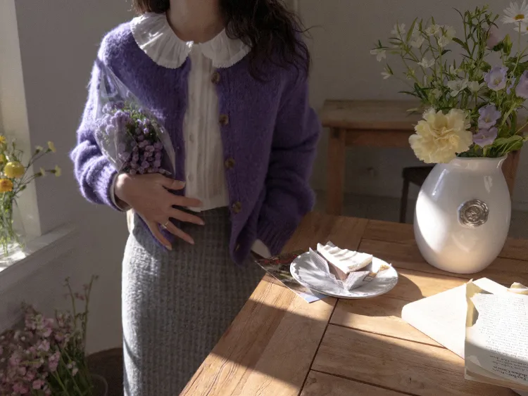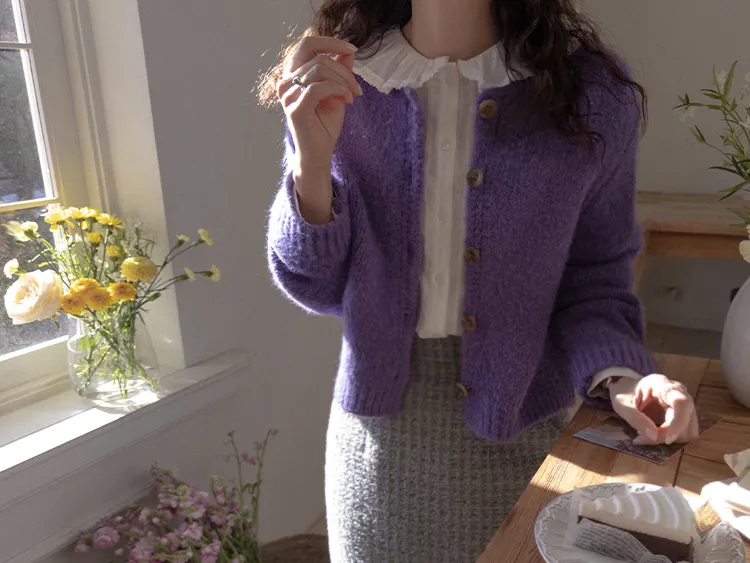 蓬鬆保暖毛絨圓領開衫 現貨紫