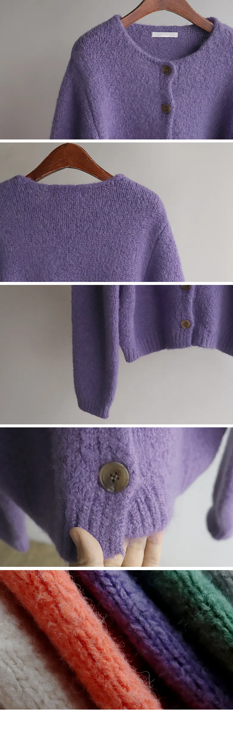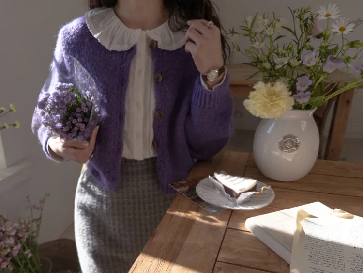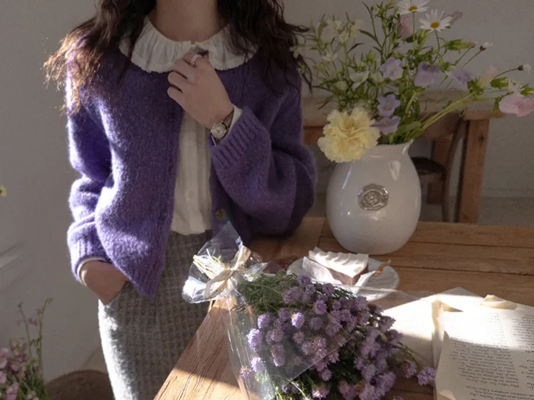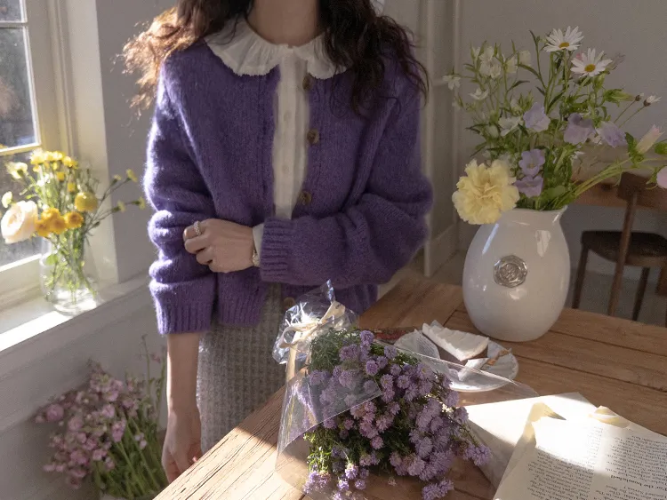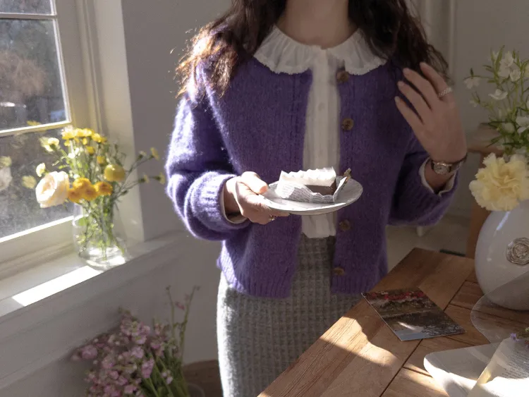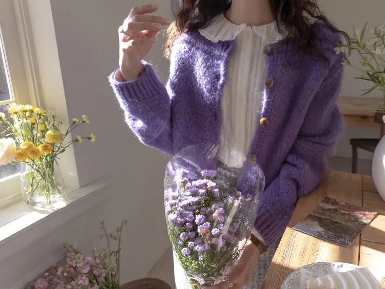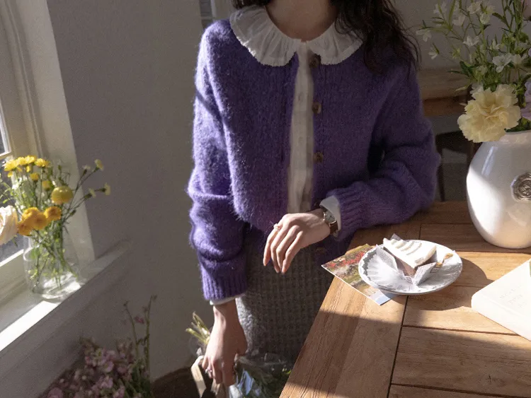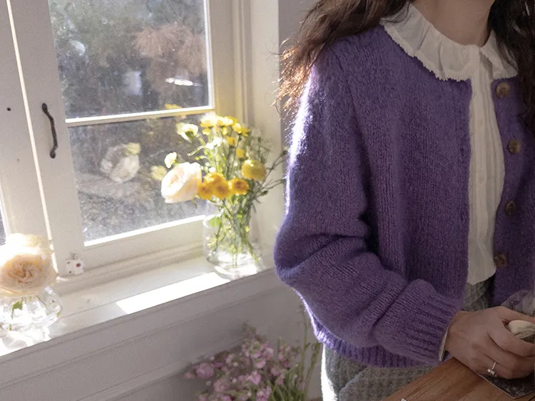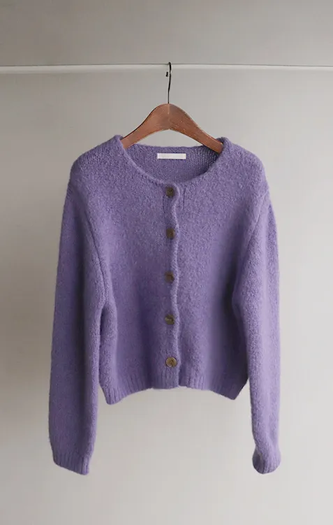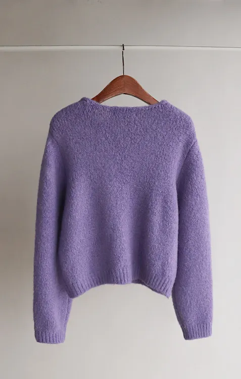 蓬鬆保暖毛絨圓領開衫 現貨紫