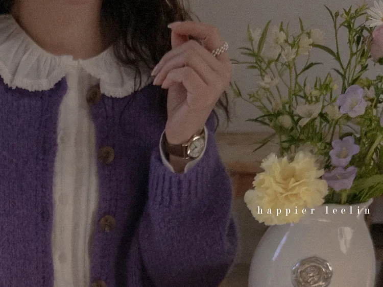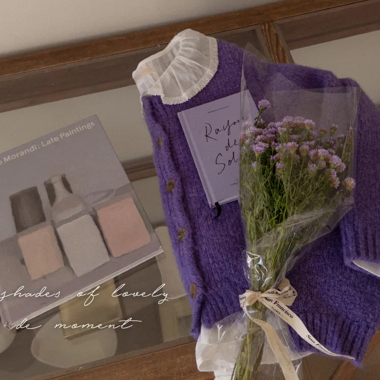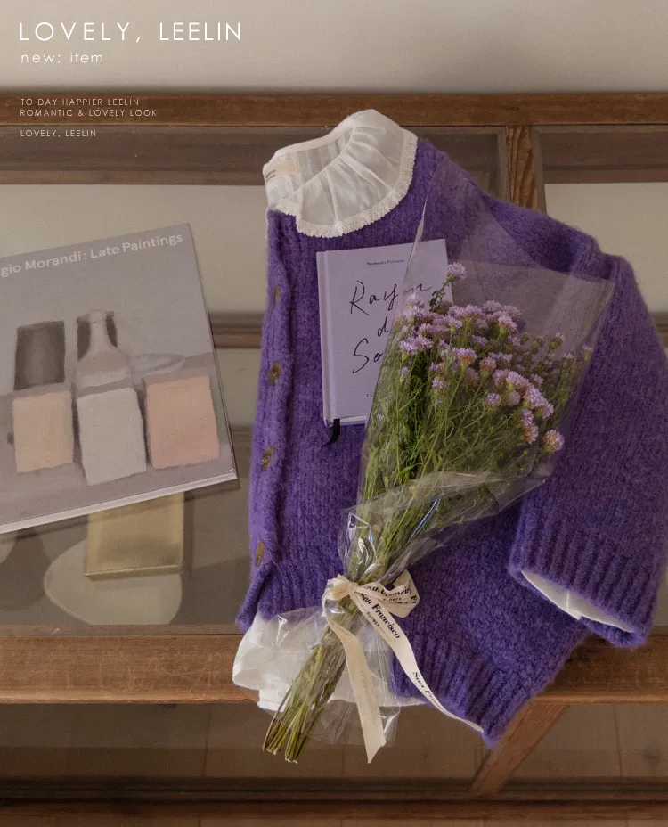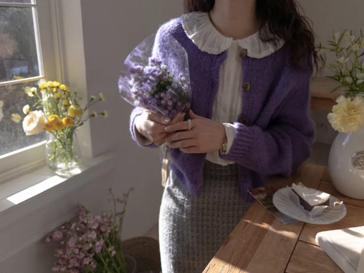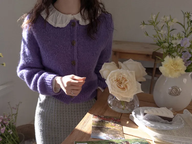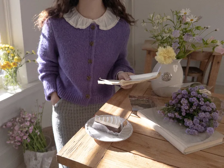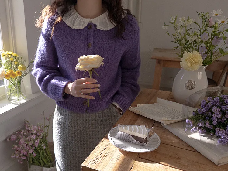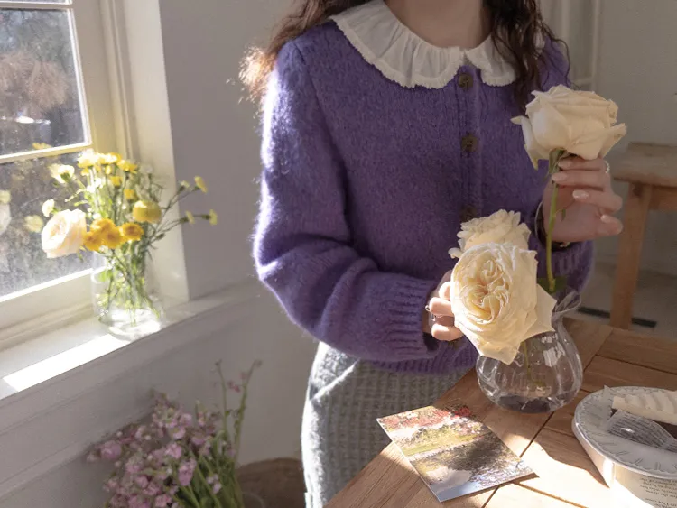 蓬鬆保暖毛絨圓領開衫 現貨紫