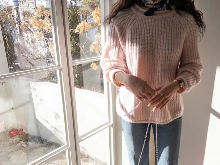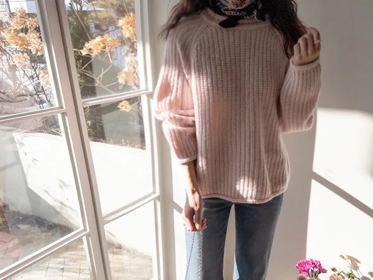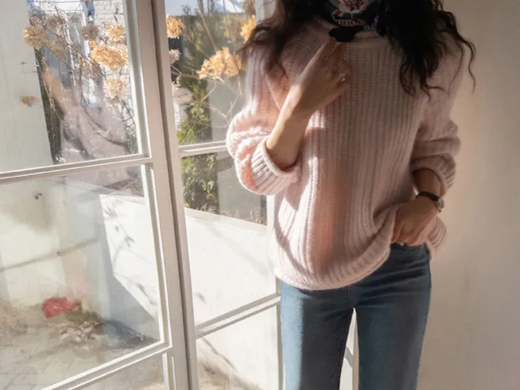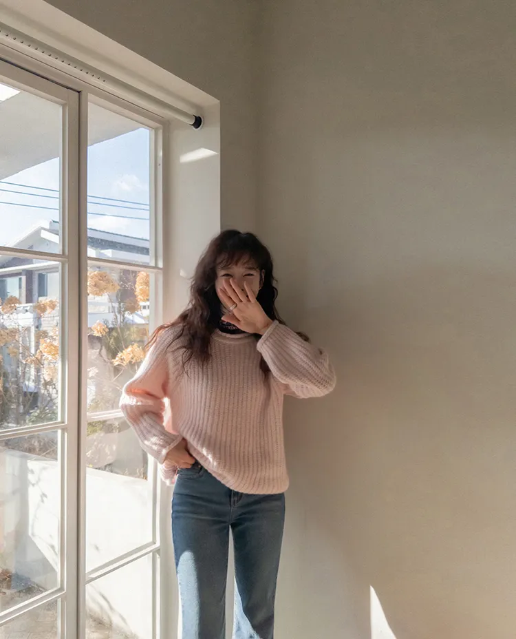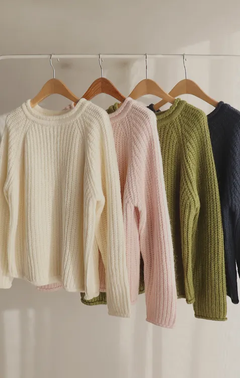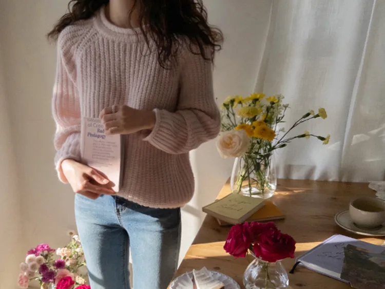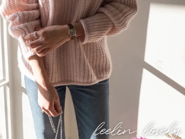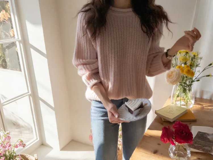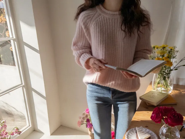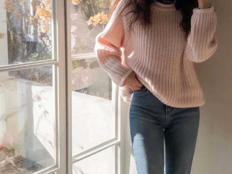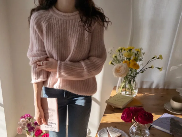 【羊駝毛羊毛混紡紗,柔軟保暖】【寬鬆廓形,散發女人味】【日常針織,適合即將到來的季節穿著】【柔和的色彩,可愛】