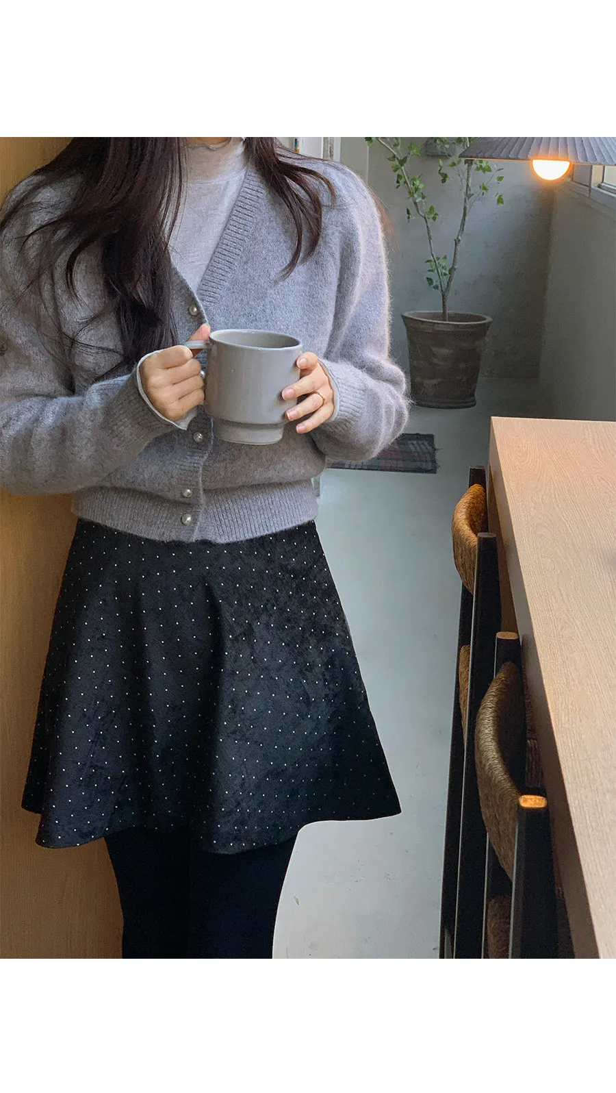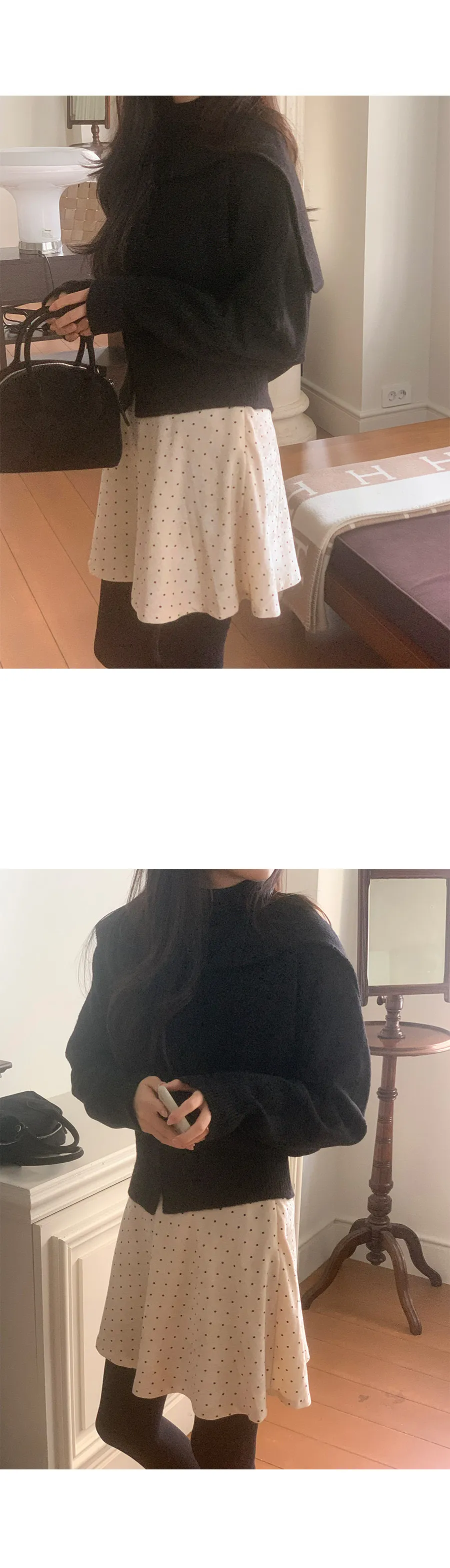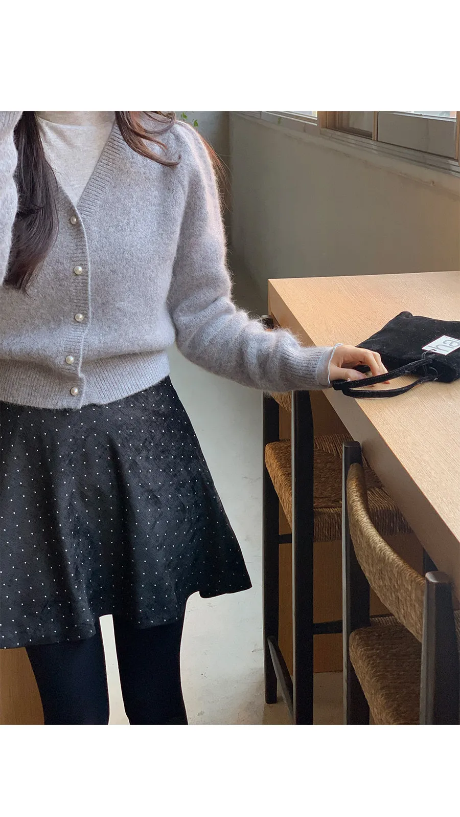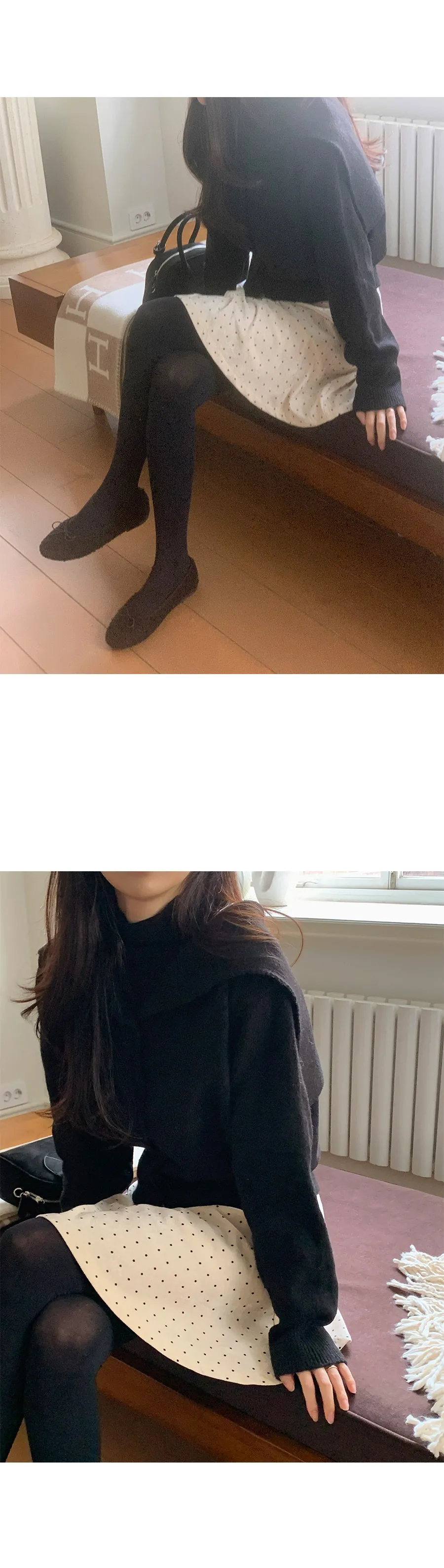 圓點天鵝絨裙非常適合女性氣質。略微傘擺形 A 字版型絨質非常適合享受冬天和年末的氛圍!
