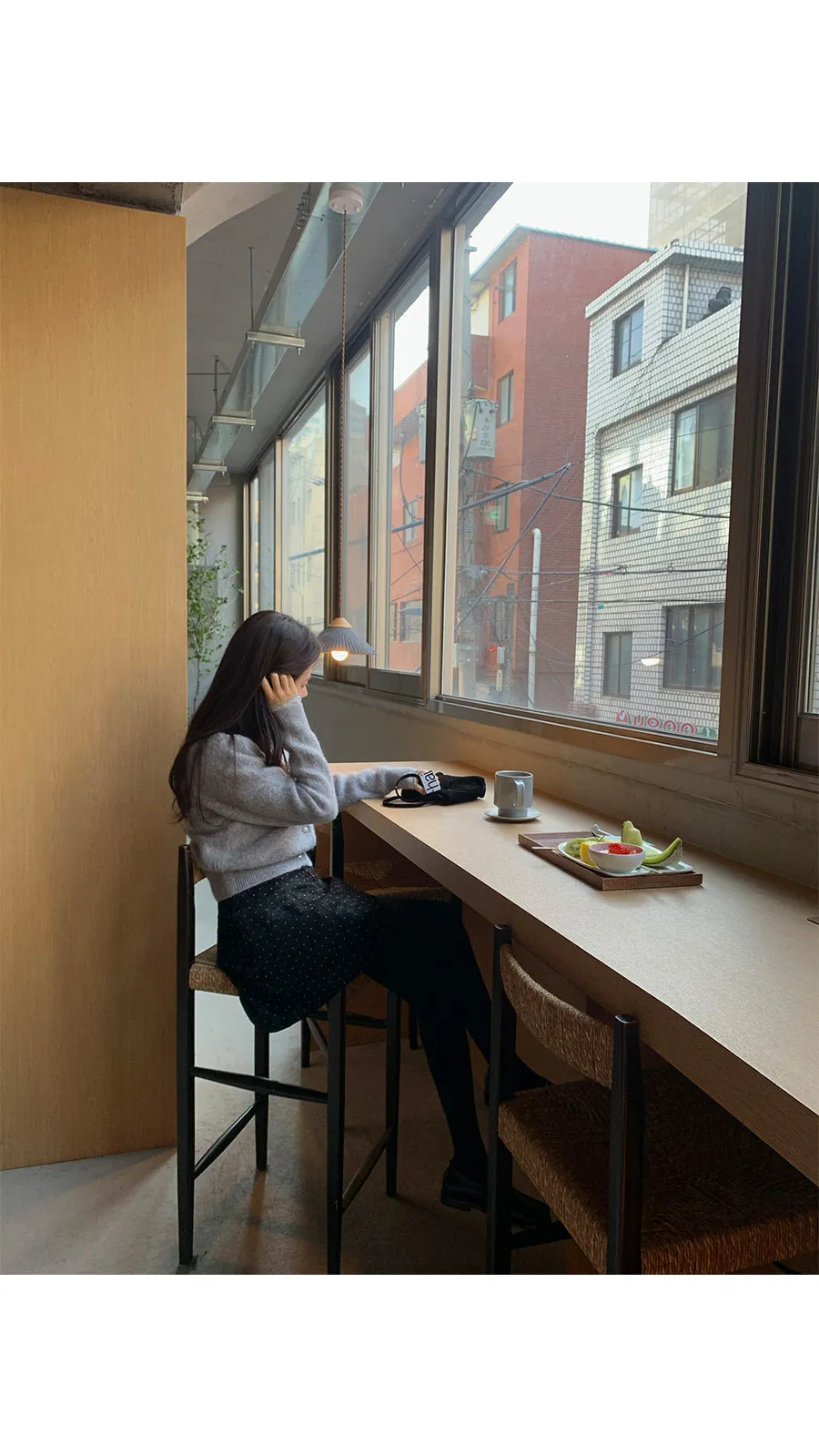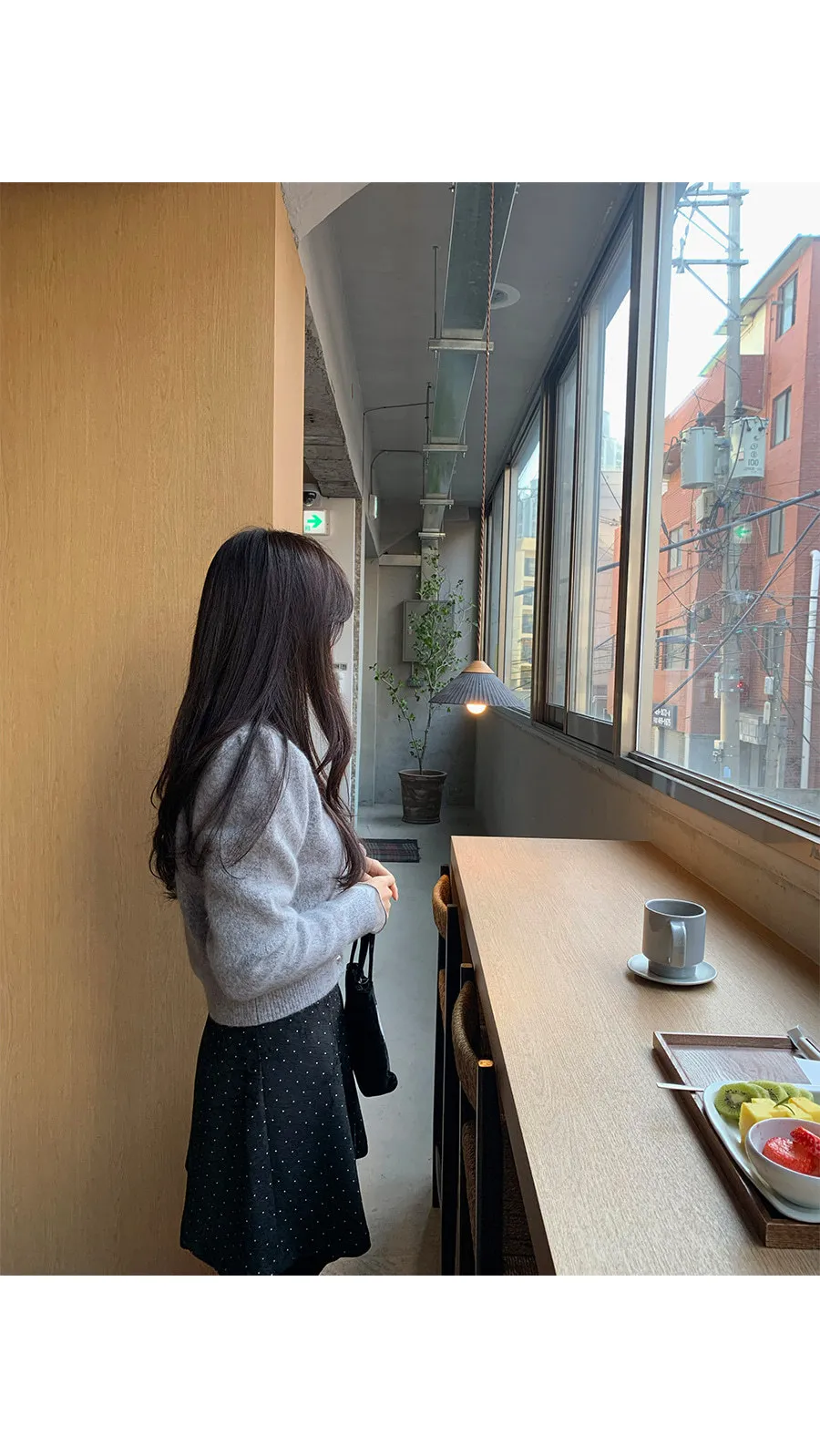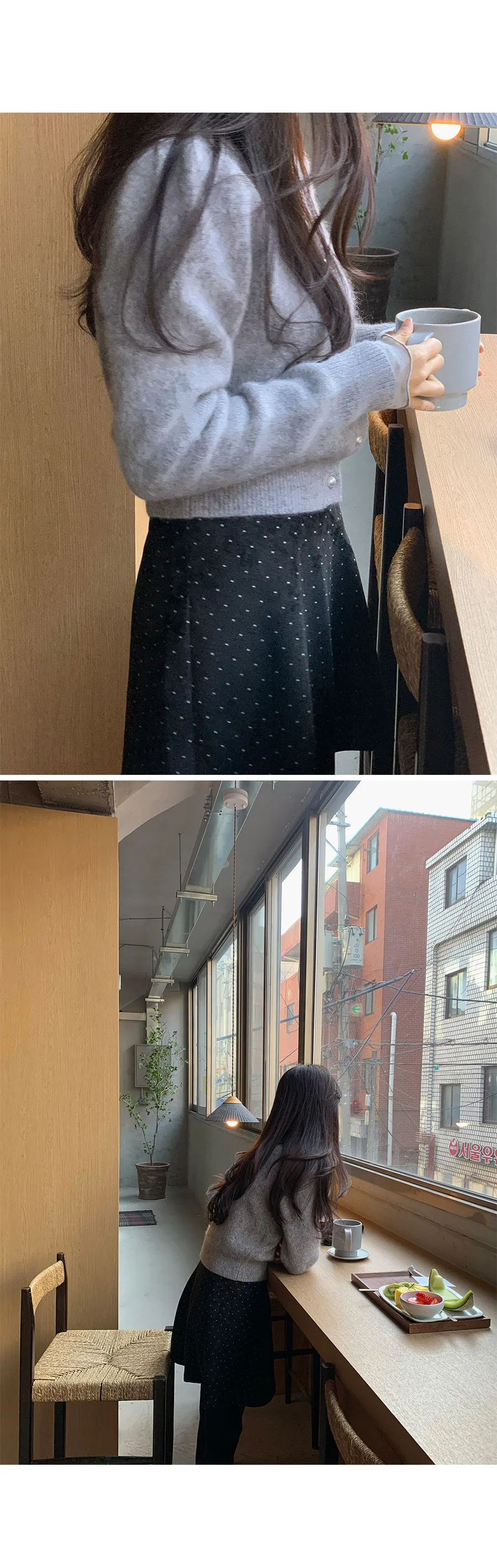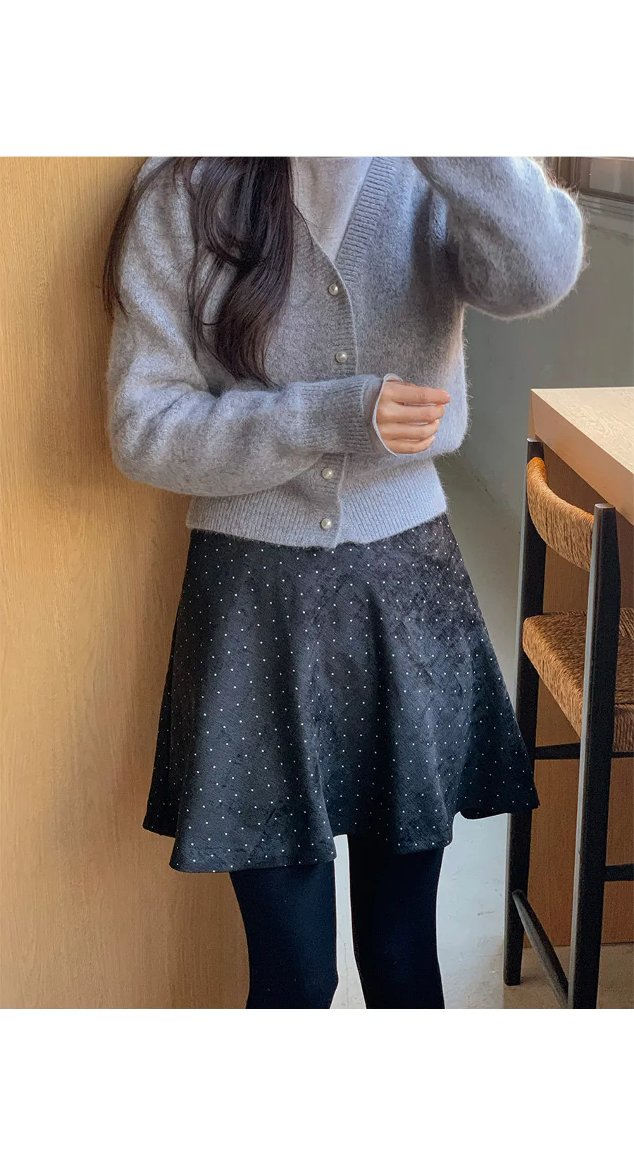 圓點天鵝絨裙非常適合女性氣質。略微傘擺形 A 字版型絨質非常適合享受冬天和年末的氛圍!