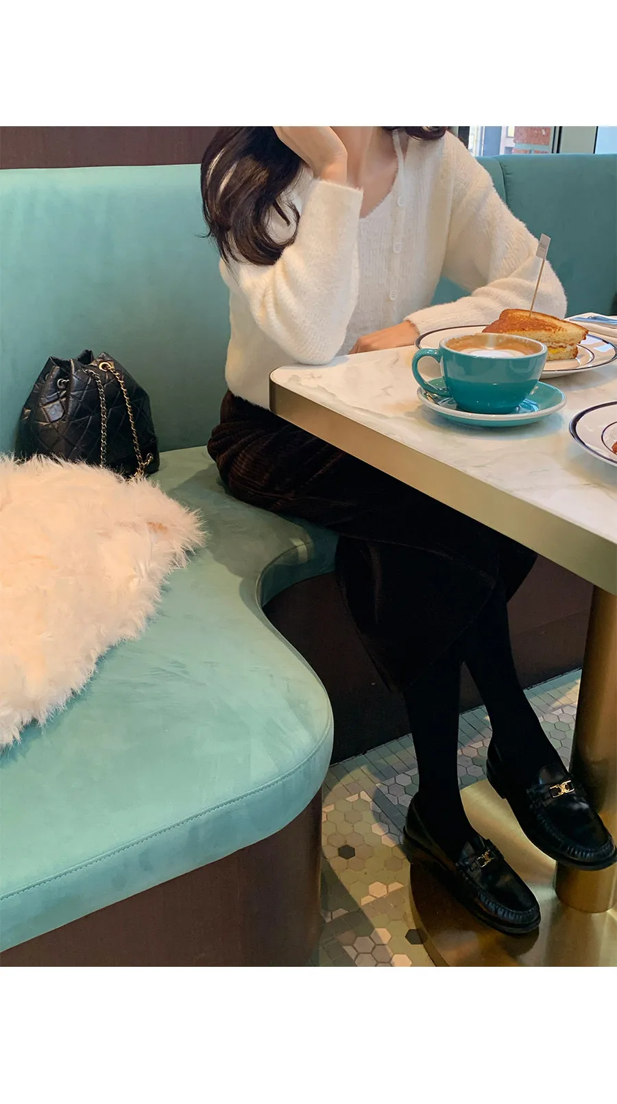 時尚穿搭H剪裁後開衩羅紋燈芯絨長裙