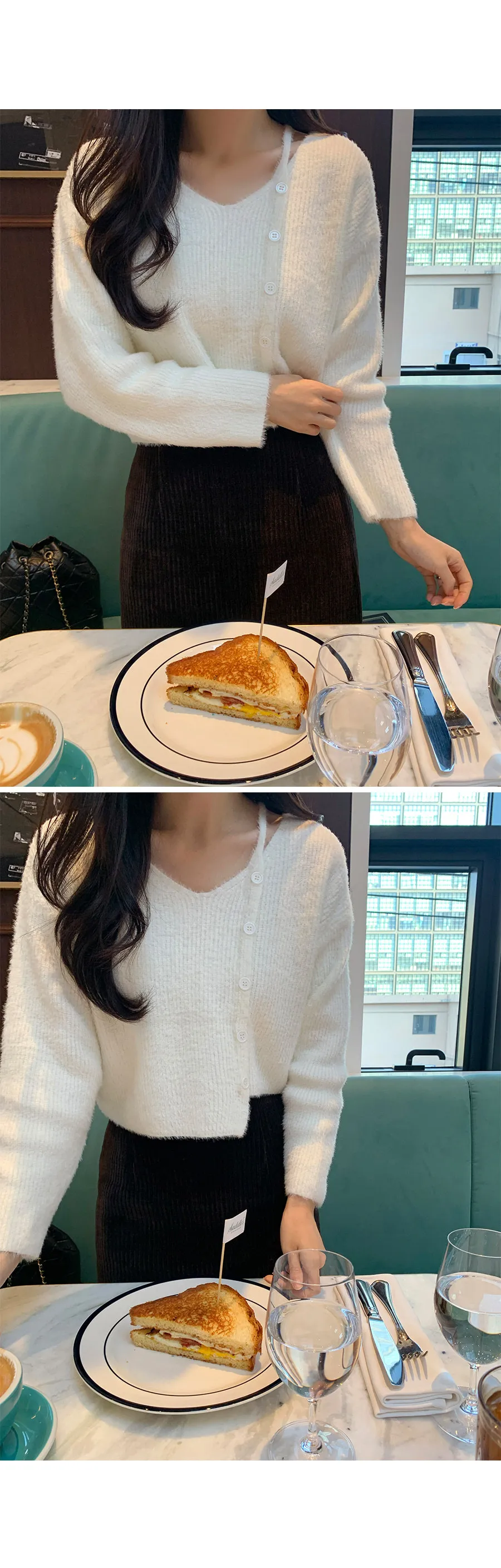 獨特迷人下擺不對稱剪裁肩帶開衩針織上衣
