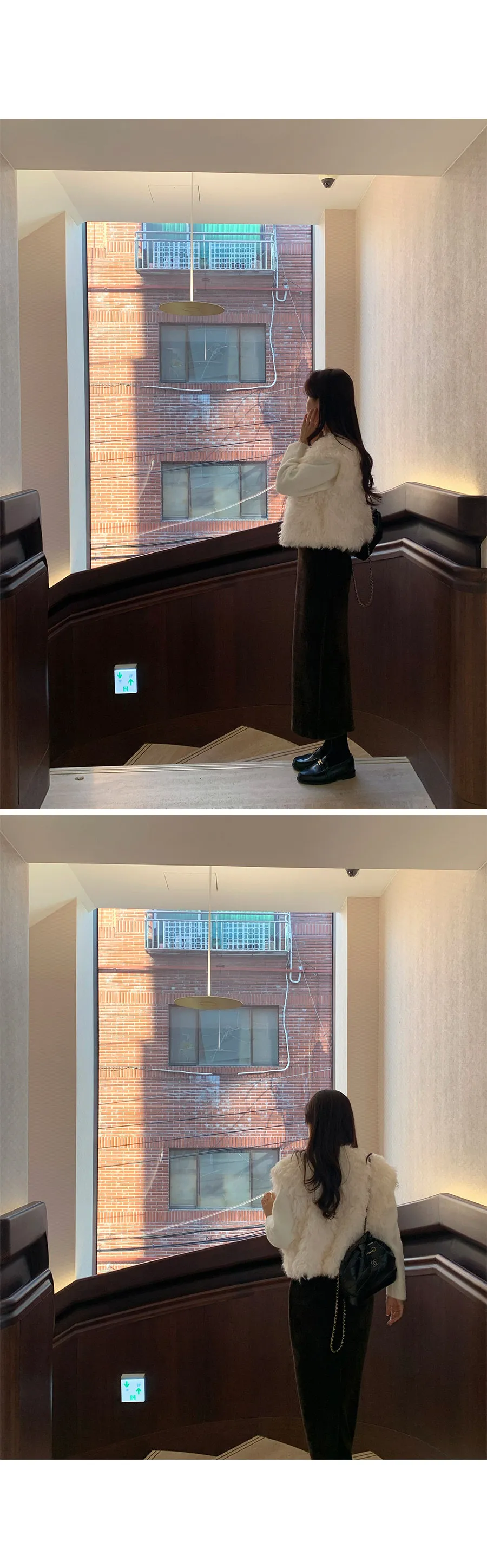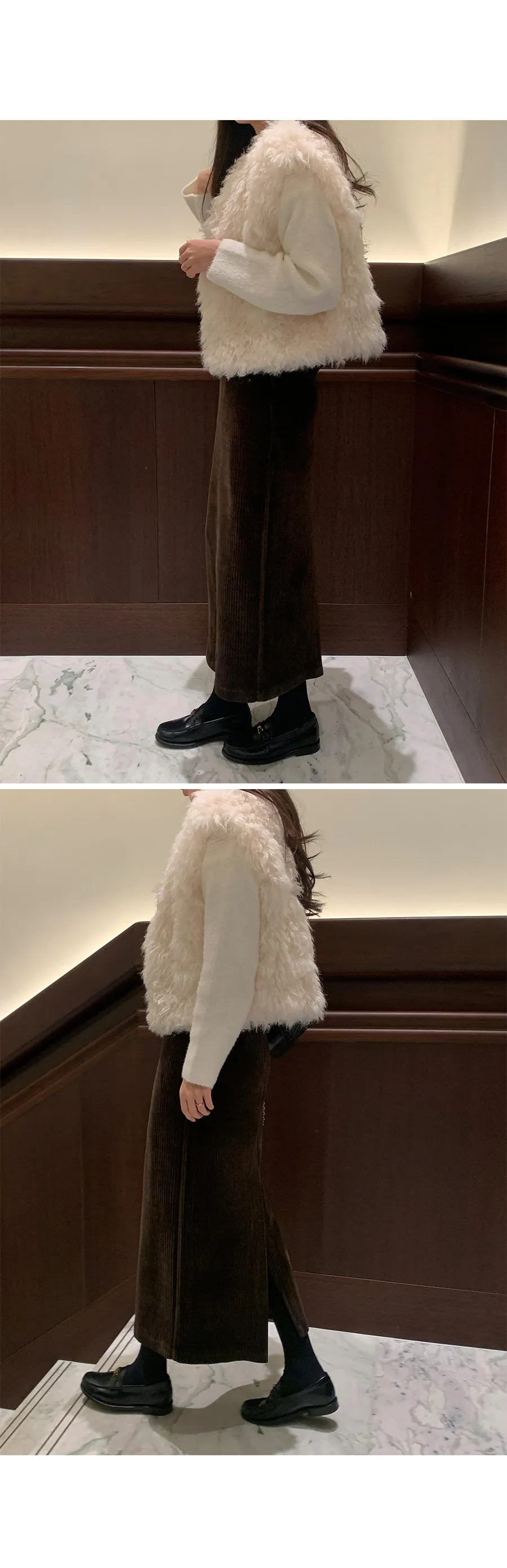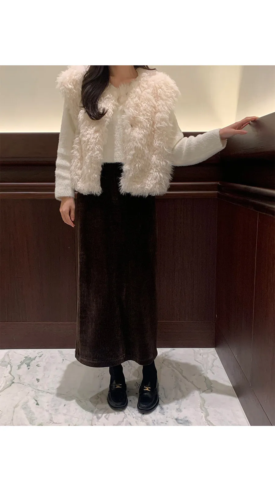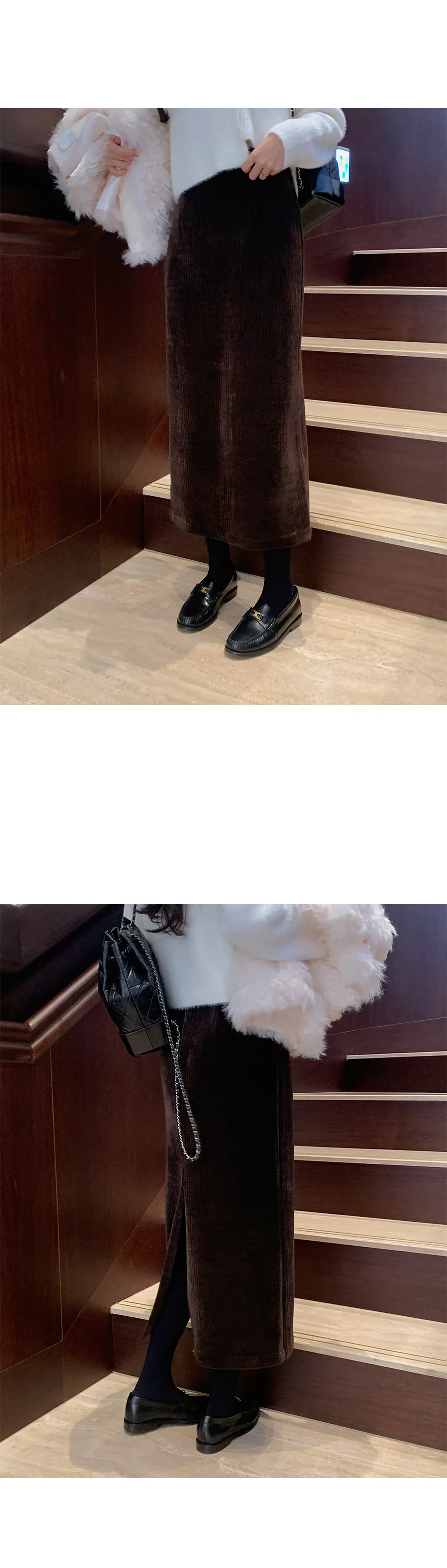 時尚穿搭H剪裁後開衩羅紋燈芯絨長裙