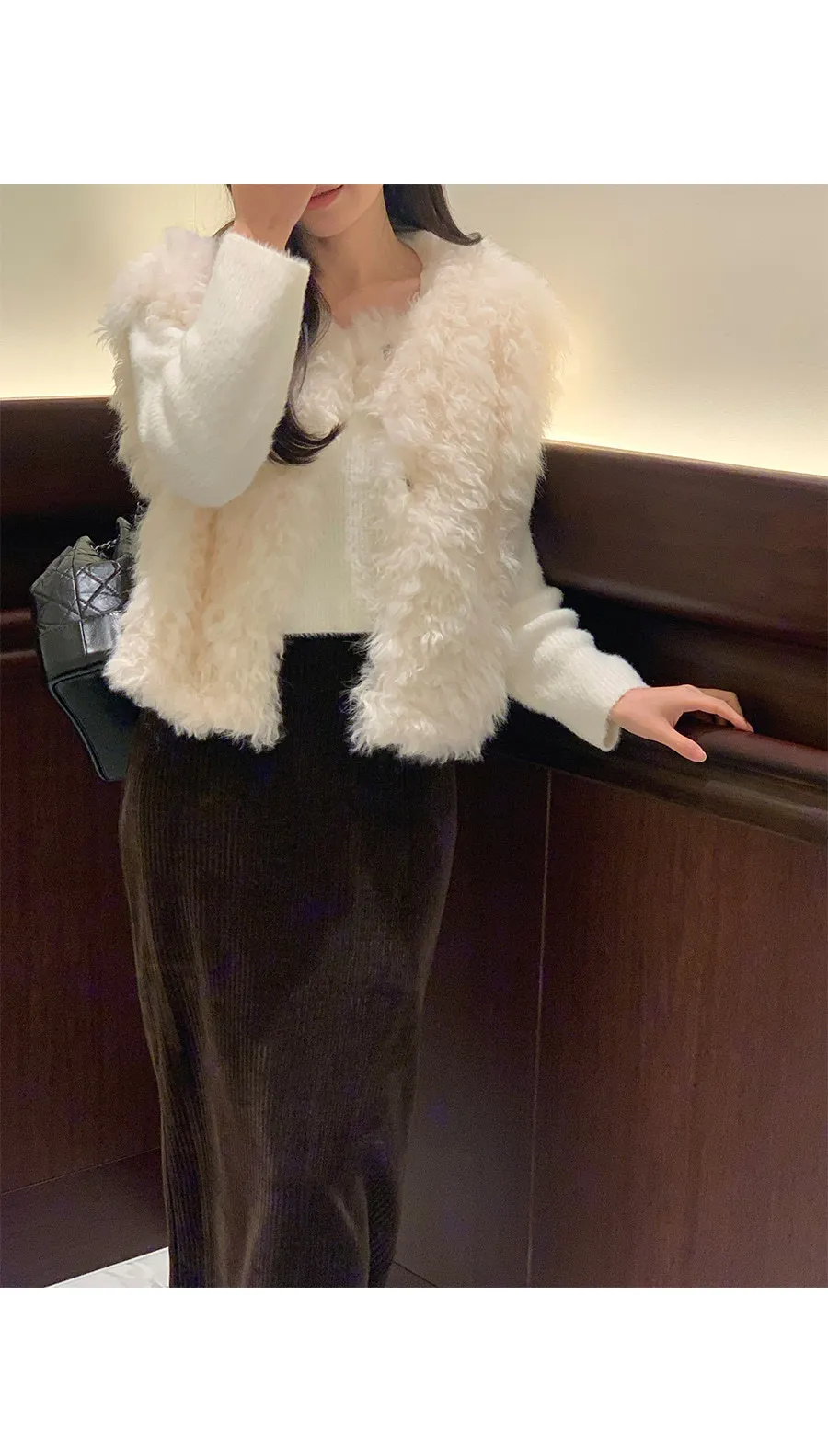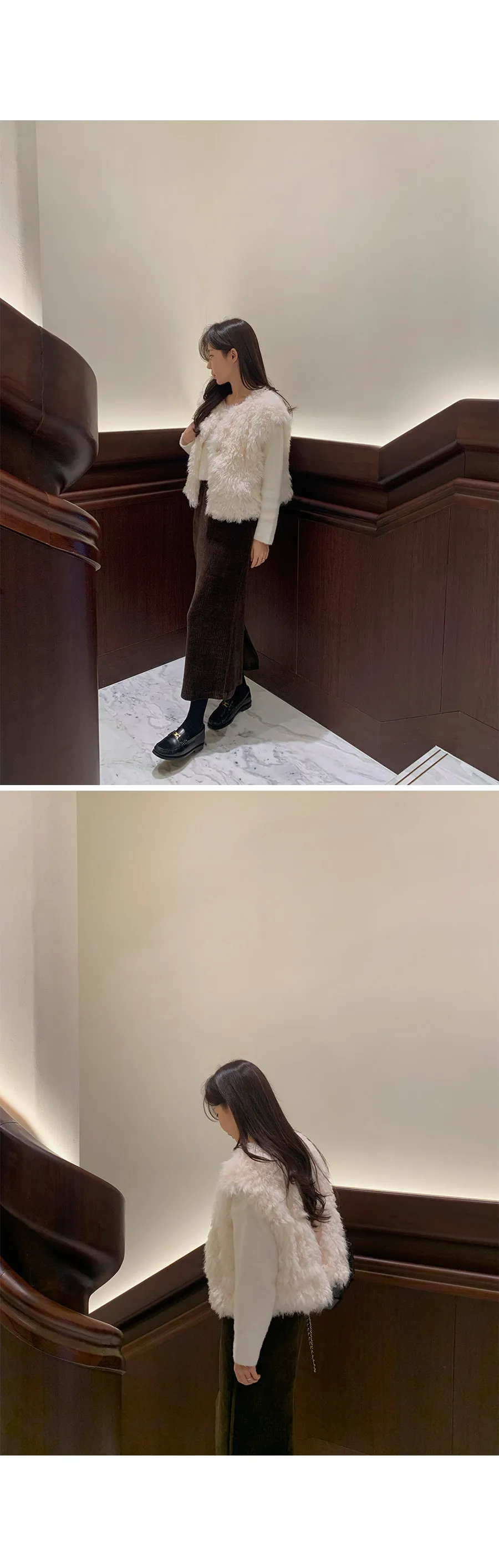 採用厚羅紋燈芯絨製成的裙子,根據接收舒適光線的角度增添微妙的光澤