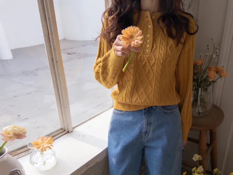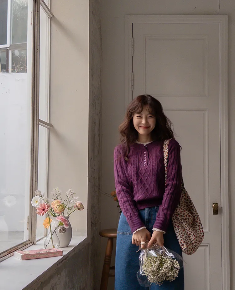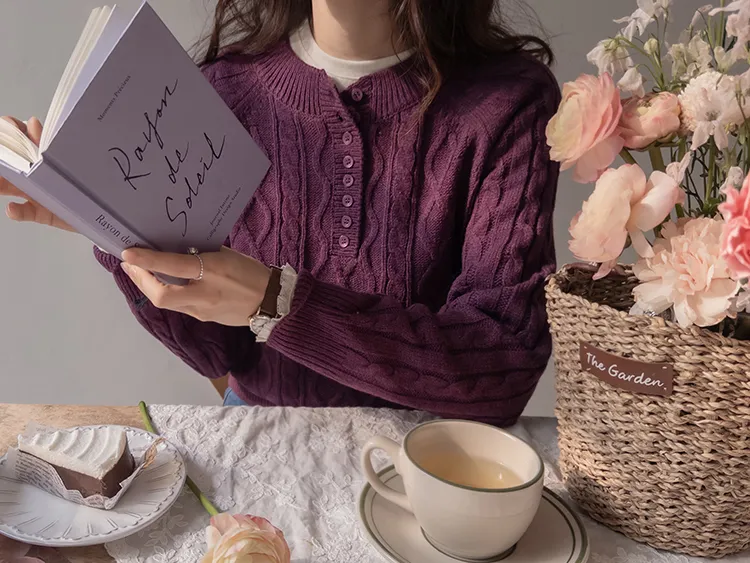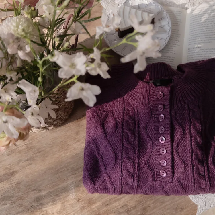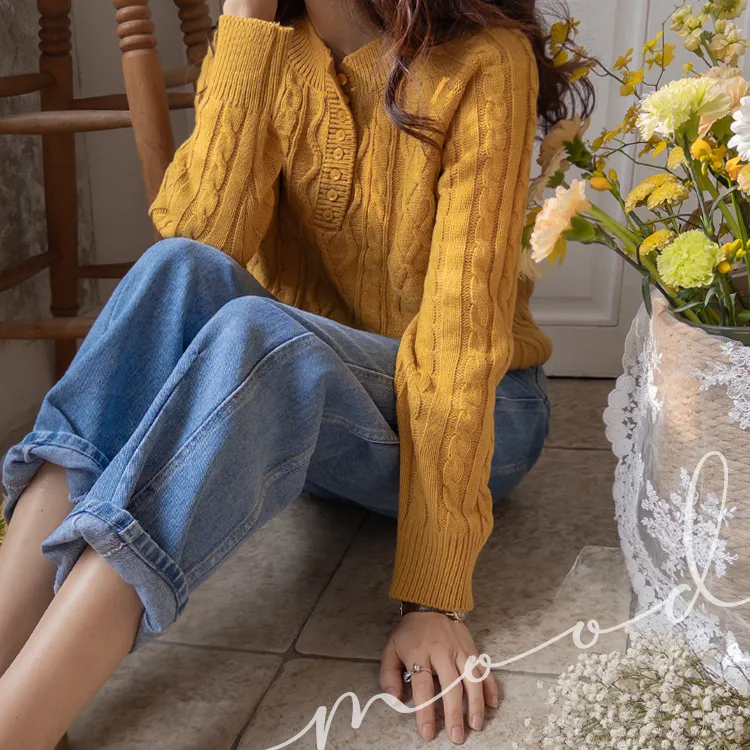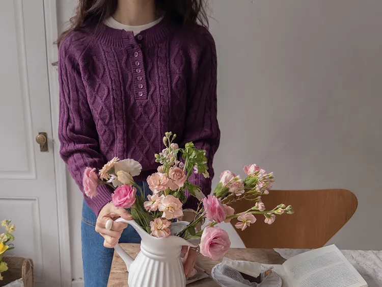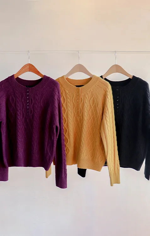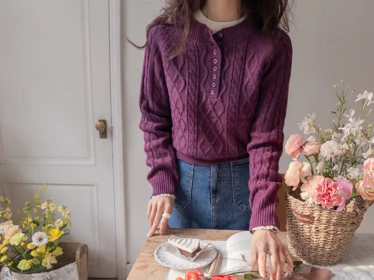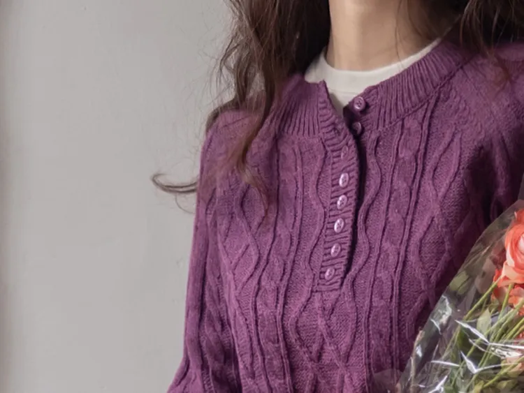【領口以下有鈕扣的半開放式設計,多種造型都OK! 】【感性的扭紋編織,亮點十足~】【精緻而迷人的色調】【漂亮編織上衣!!】