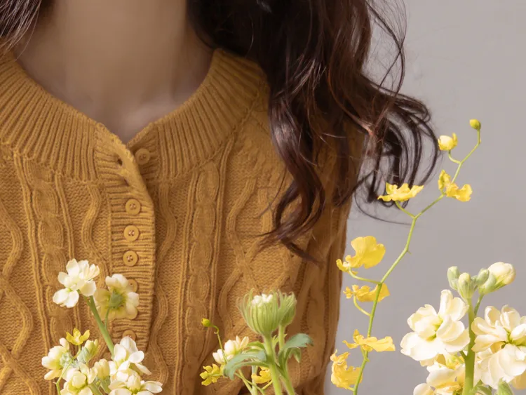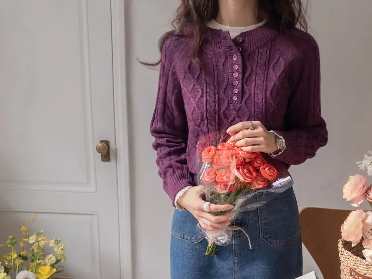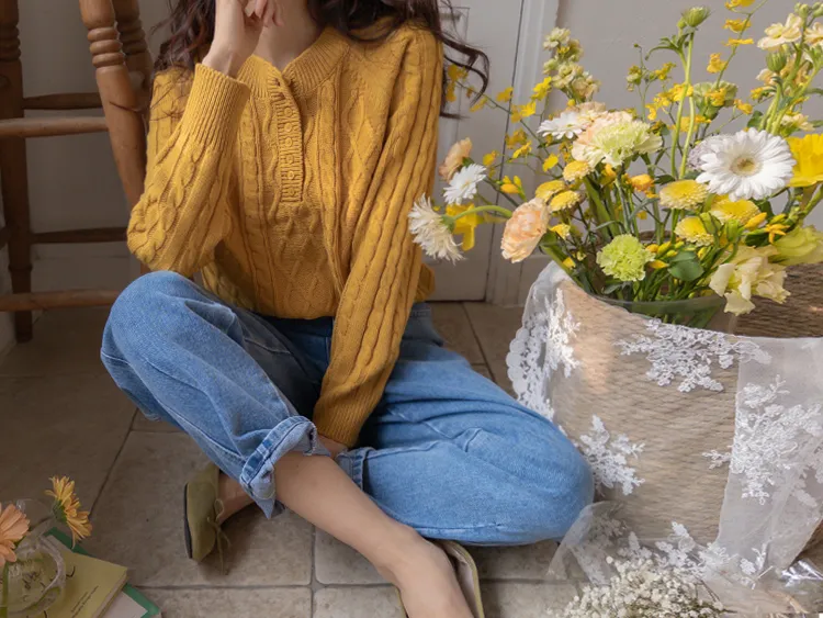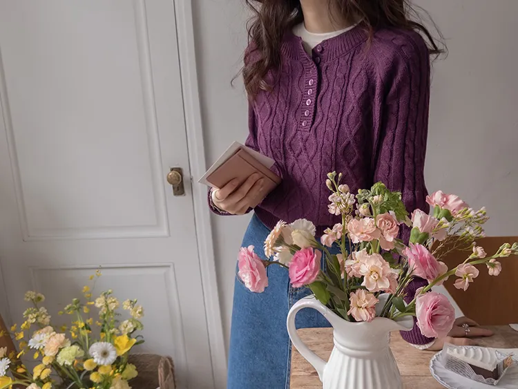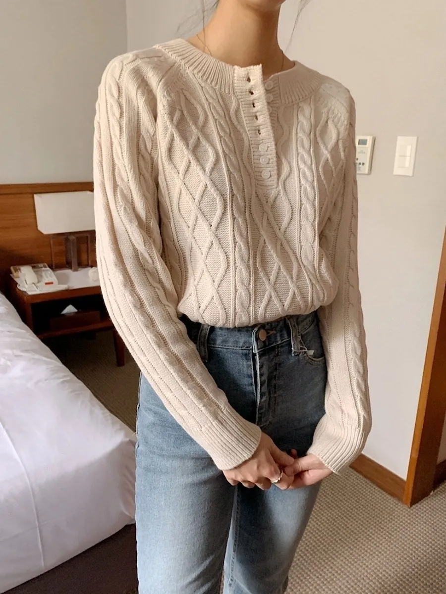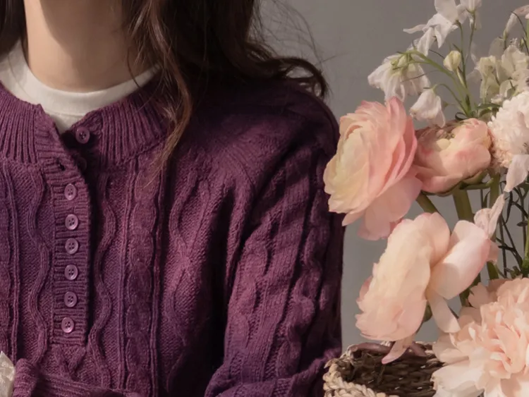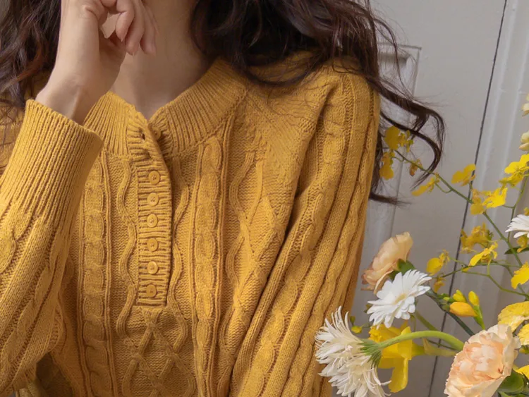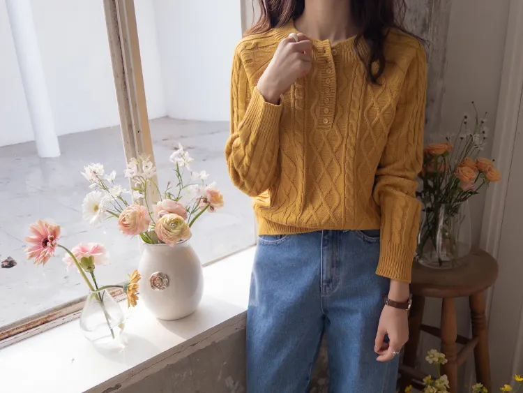 【領口以下有鈕扣的半開放式設計,多種造型都OK! 】【感性的扭紋編織,亮點十足~】【精緻而迷人的色調】【漂亮編織上衣!!】