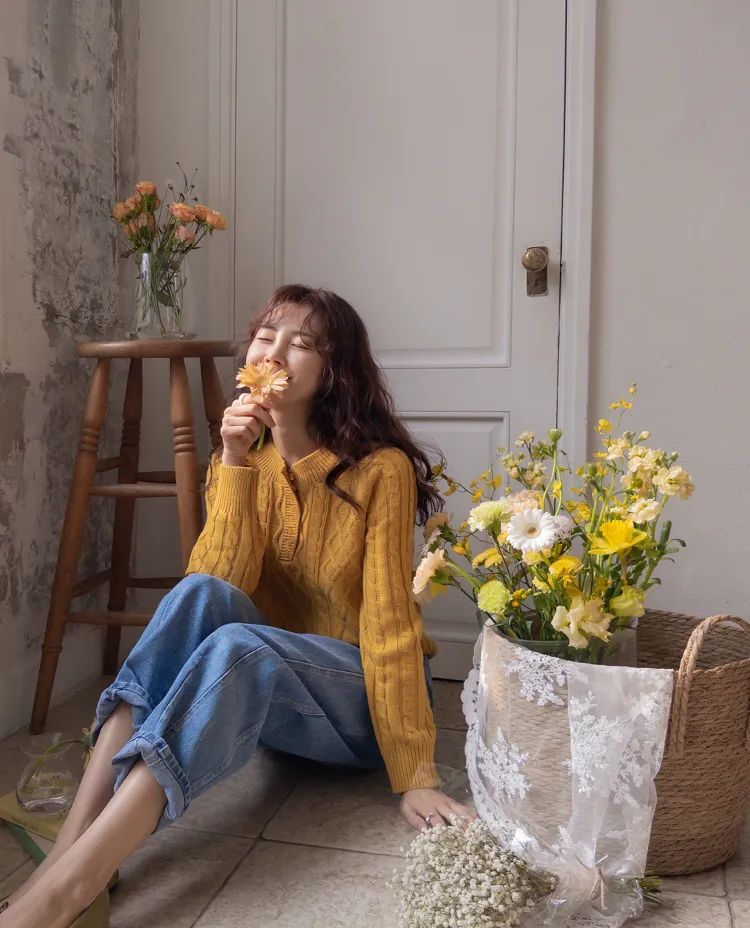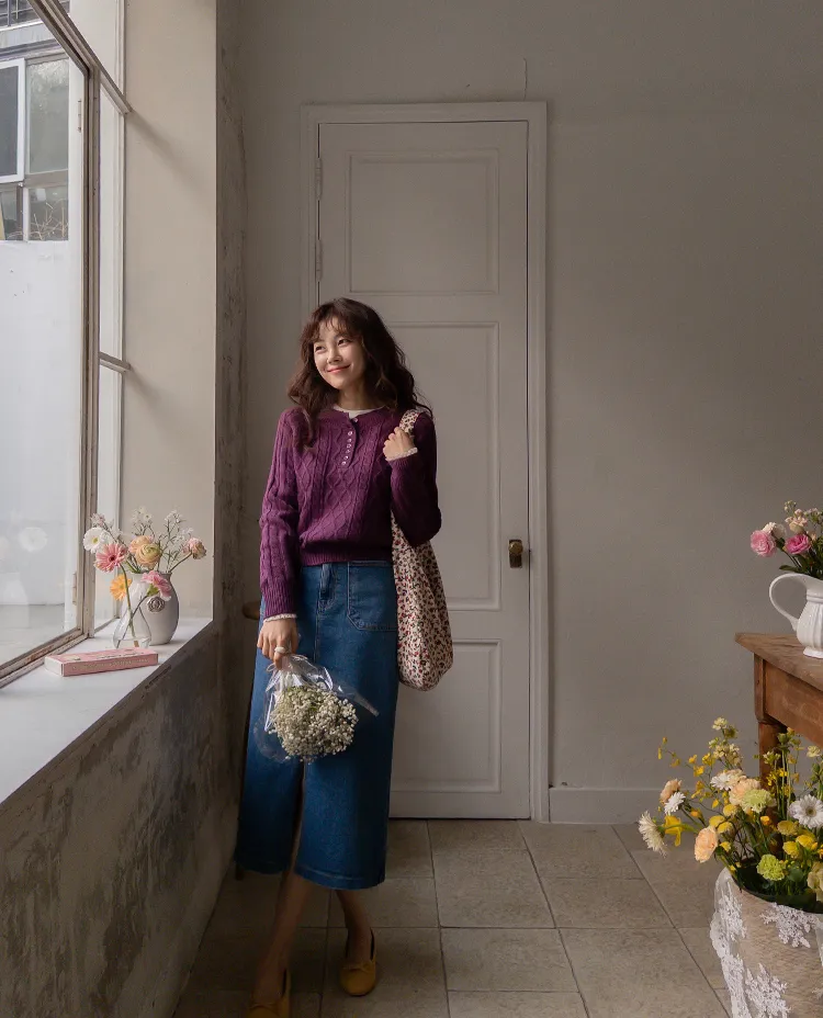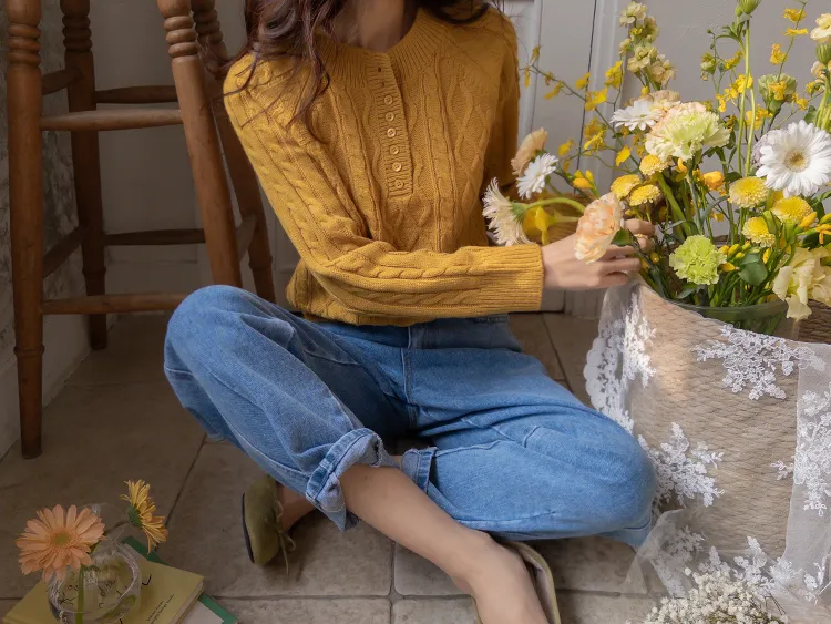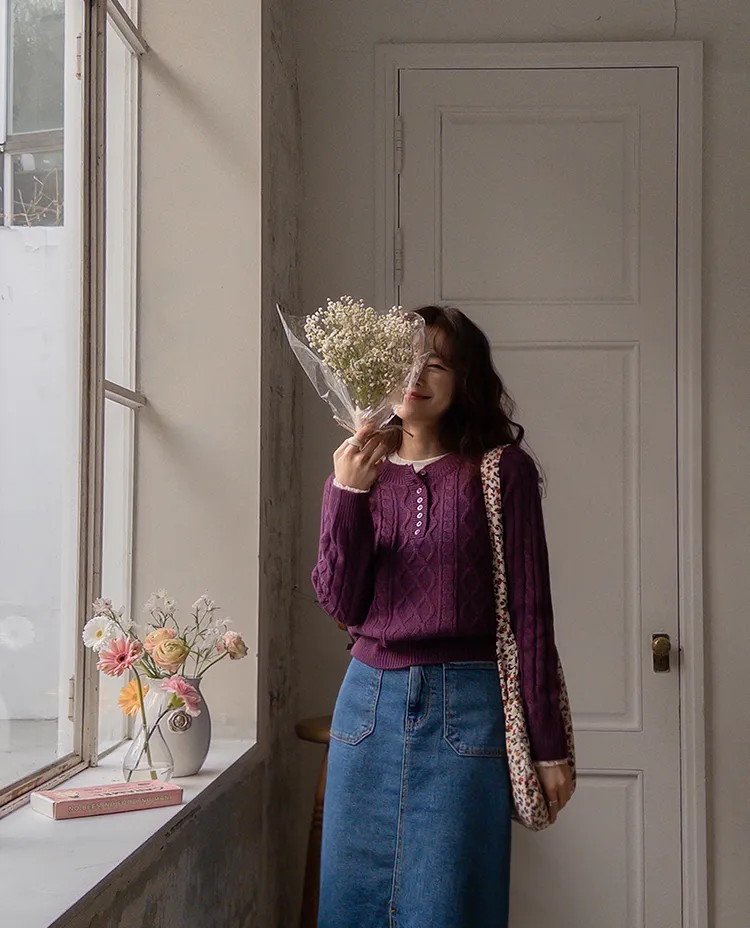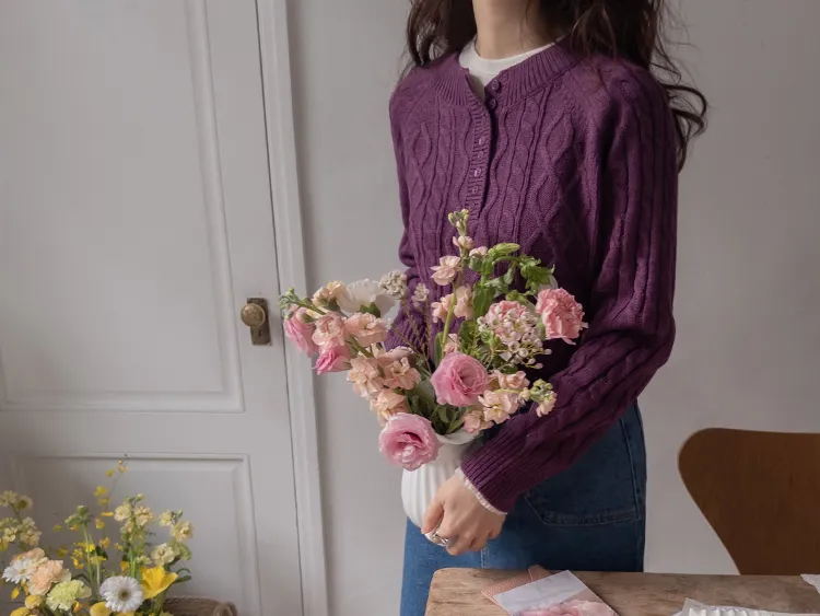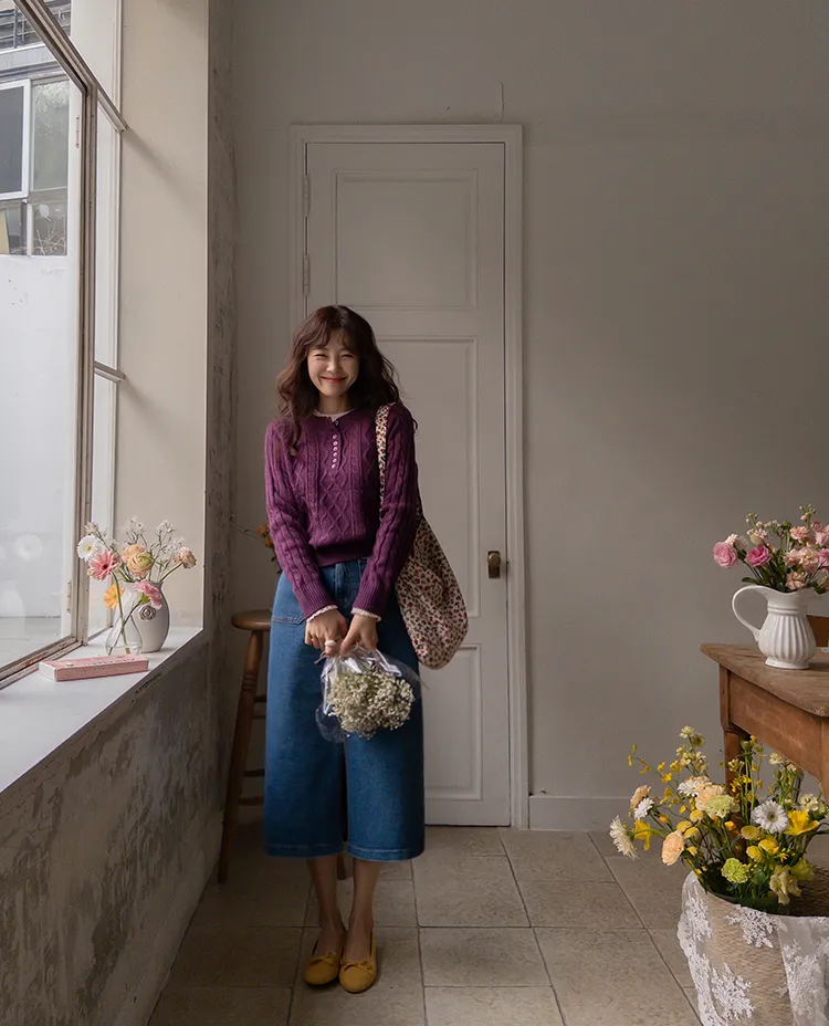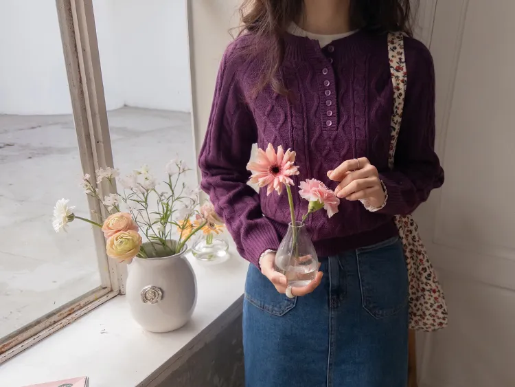 【領口以下有鈕扣的半開放式設計,多種造型都OK! 】【感性的扭紋編織,亮點十足~】【精緻而迷人的色調】【漂亮編織上衣!!】