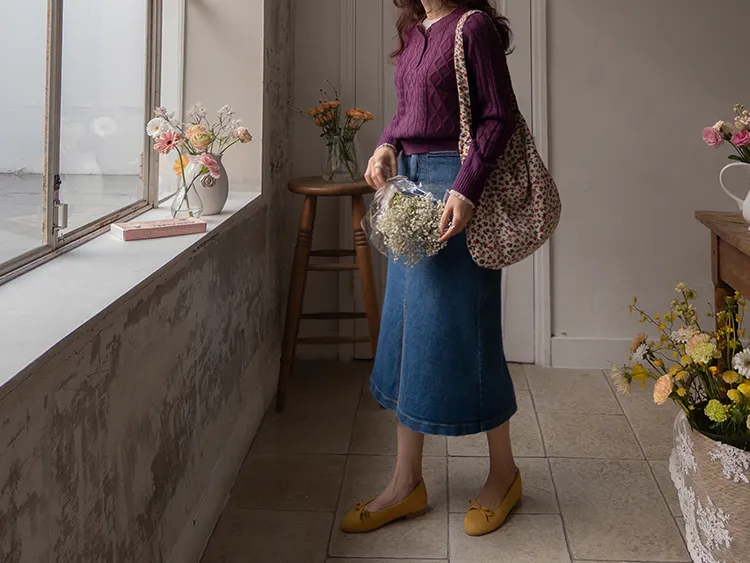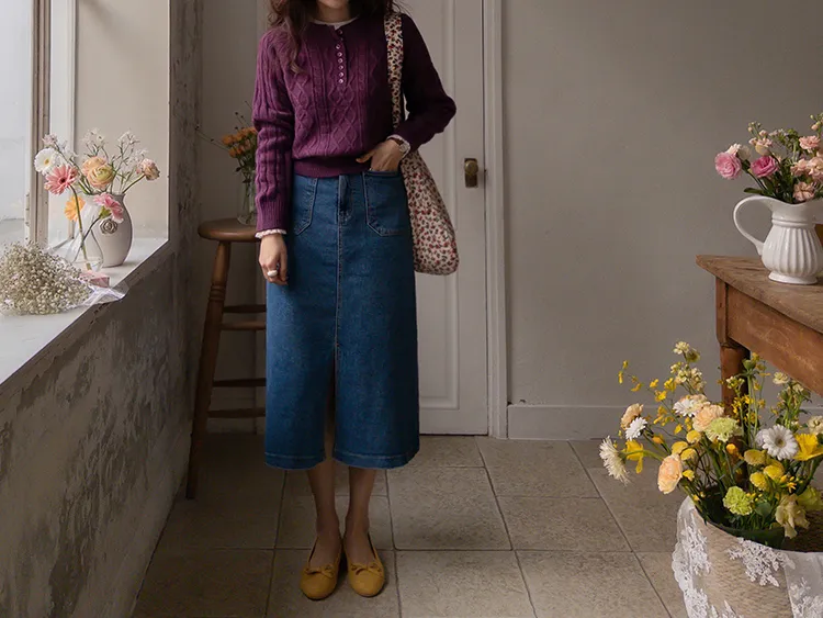 魅力口袋前開衩半A字形剪裁牛仔裙
