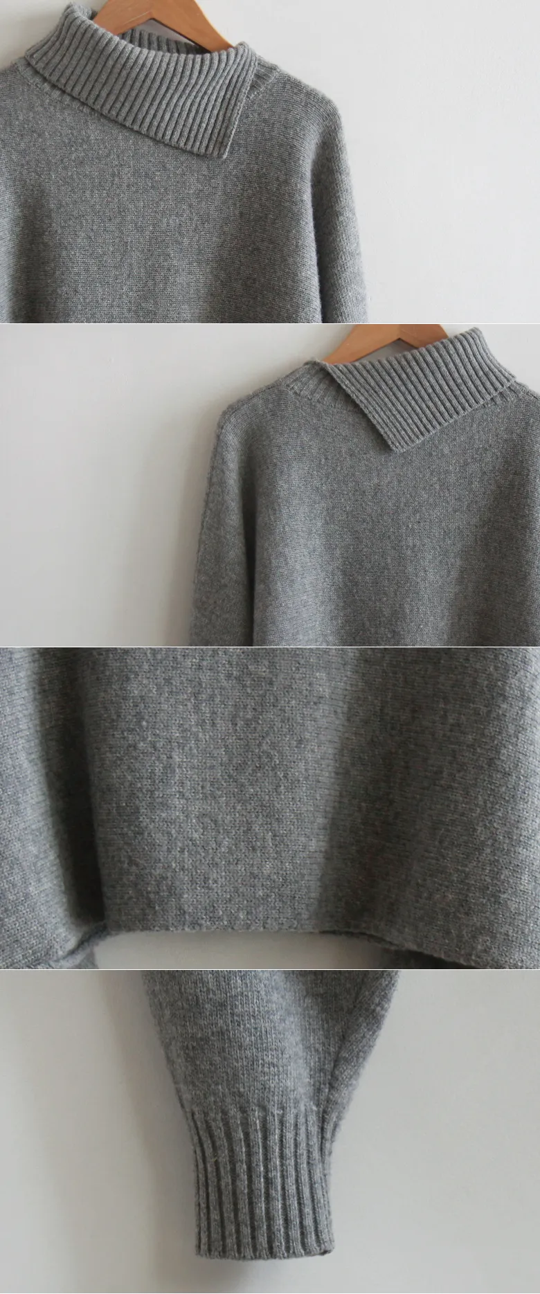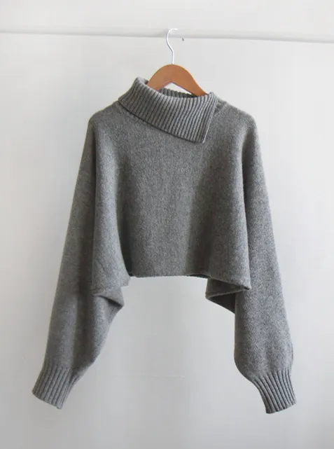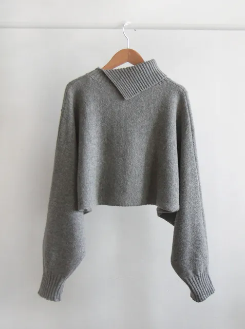 [含有50%羊毛][合身的短款開衩高領上衣][這是一款手感適中的開衩