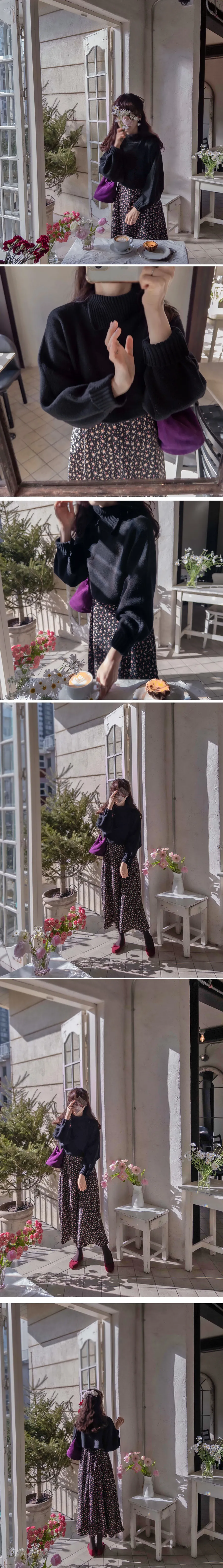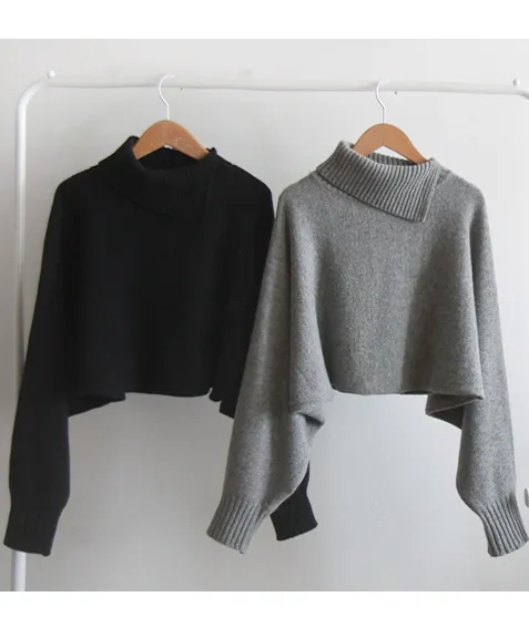 魅力高領開衩設計短款針織上衣