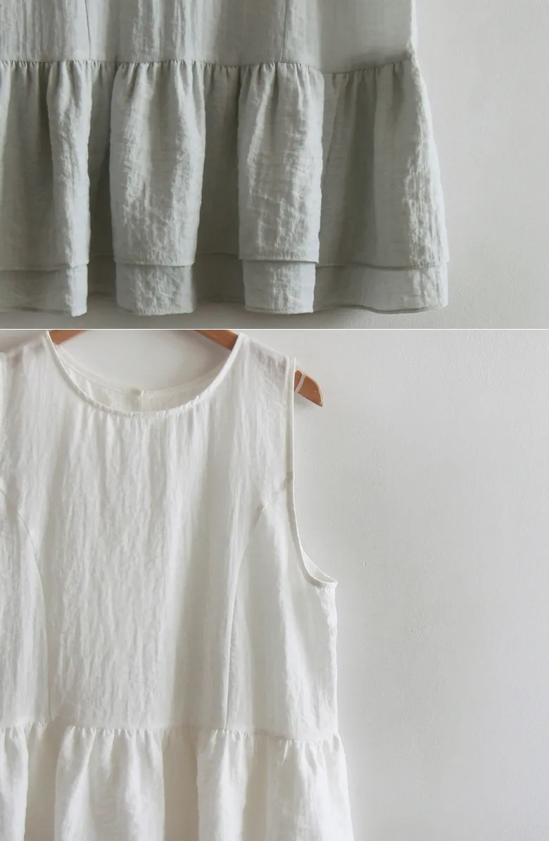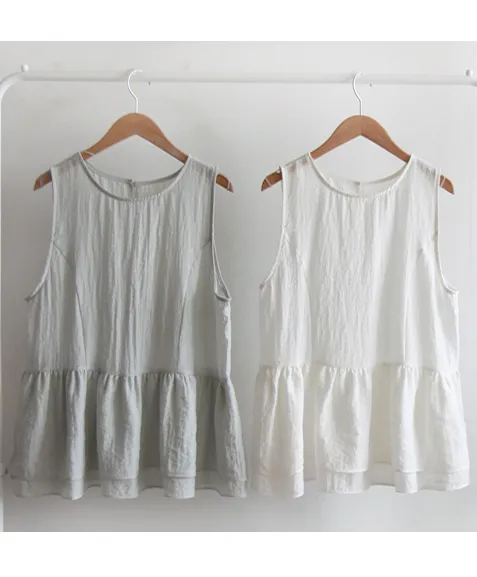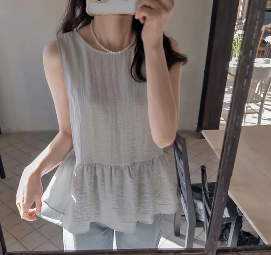 [奢華絲滑面料][下擺帶有分層剪裁的可愛點][奢華面料的柔韌絲滑質感][適合與任何的外套、開衫和休閒上衣搭配][適合所有季節][可愛的層次無袖上衣】【盛夏單獨穿也OK】