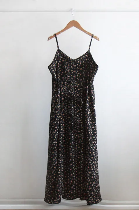 優雅腰綁帶修身穿搭花朵無袖連身裙