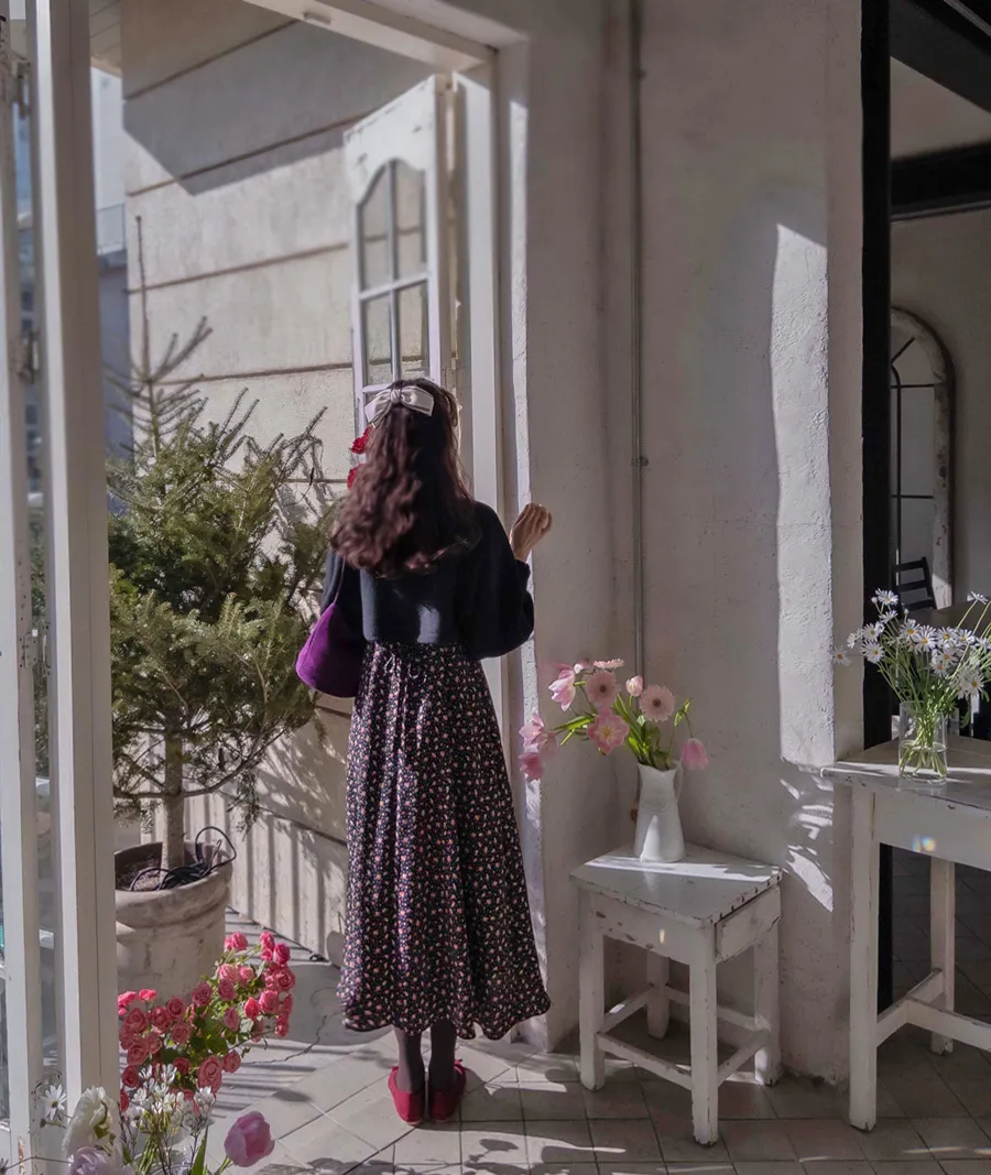 [裡料: 聚酯纖維][後拉鍊組成][在腰間繫上絲帶,打造貼合身材的修身版型][歡快迷你花朵圖案連身裙][完美的連衣裙從現在開始的春天] [微風徐徐的邊緣合身][與針織品搭配起來很漂亮]