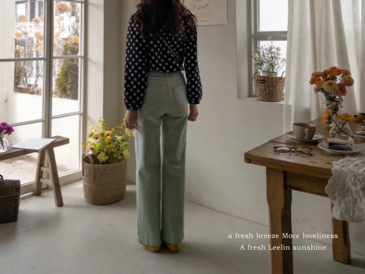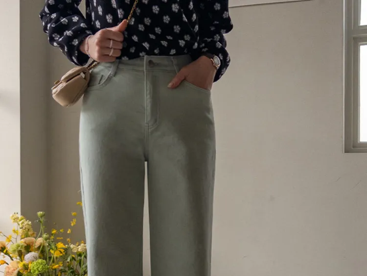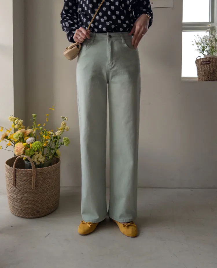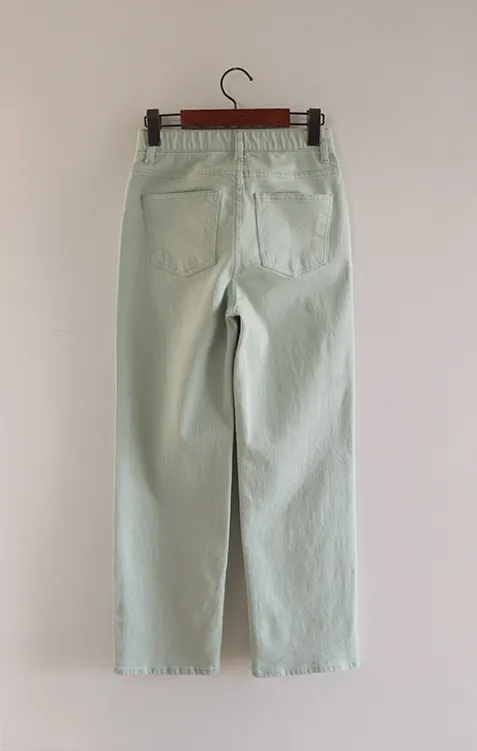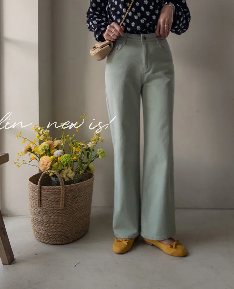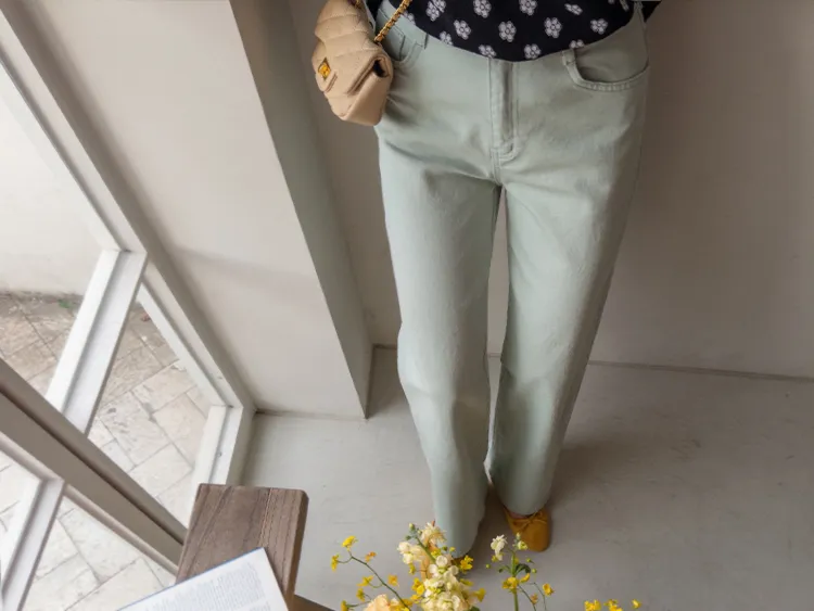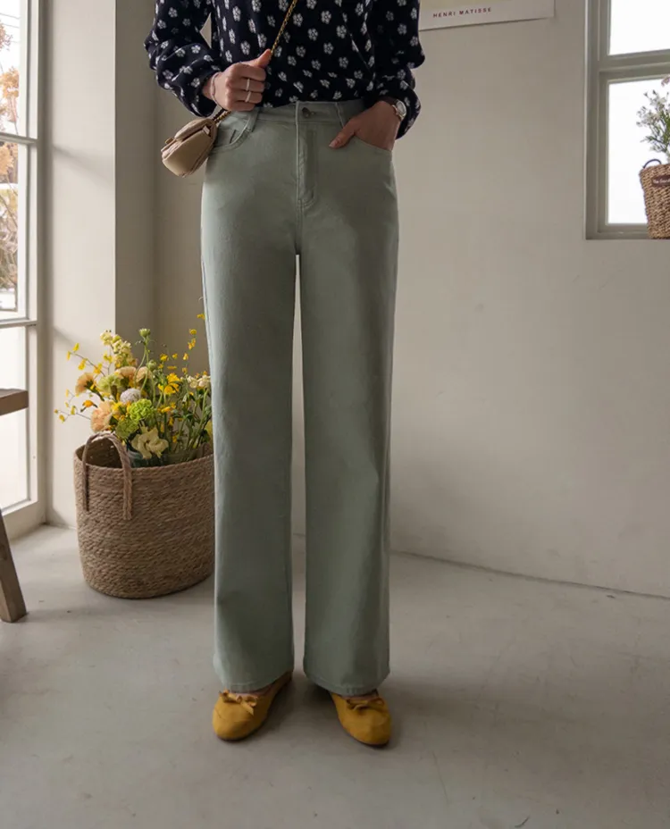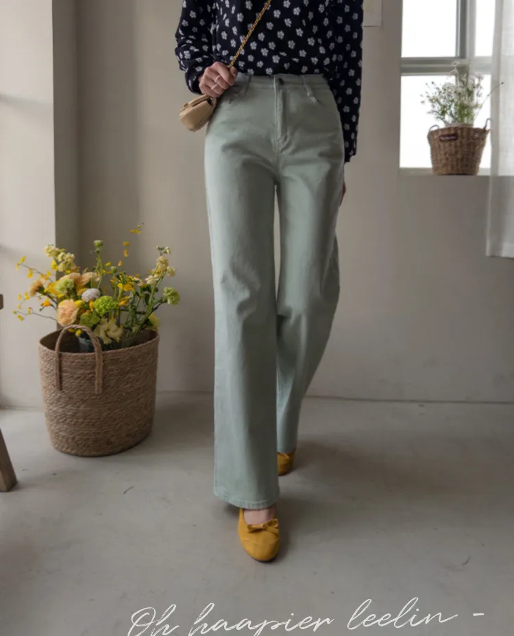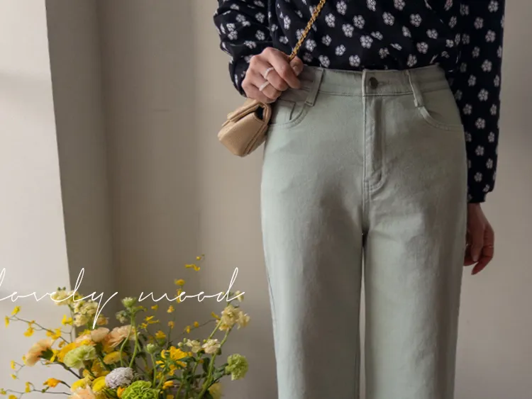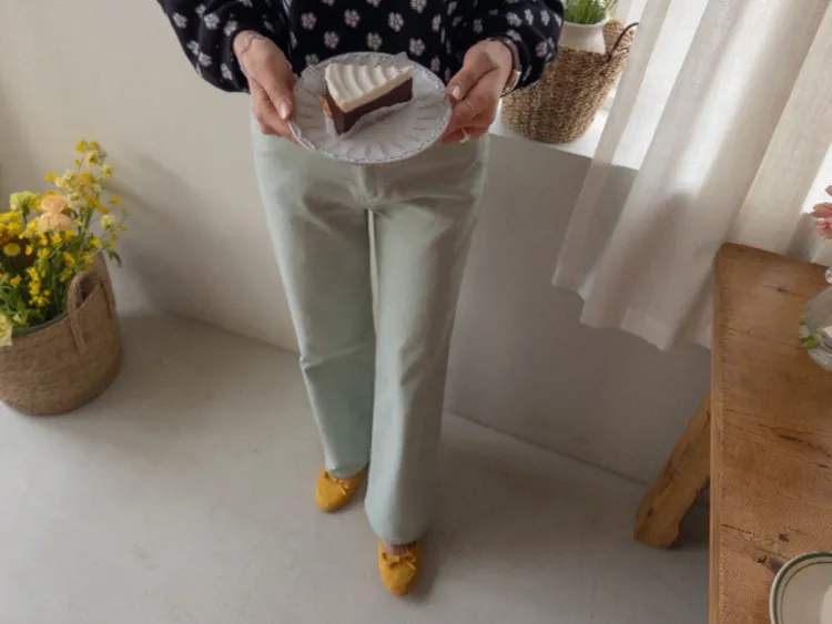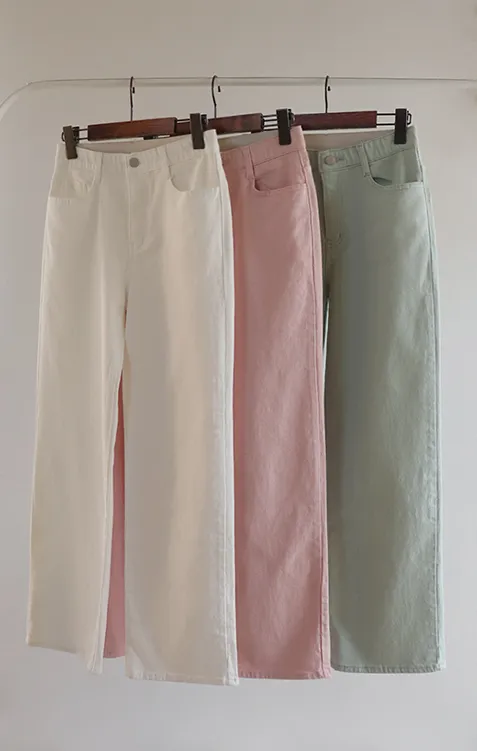 春天輕盈色感舒適彈性直筒休閒褲