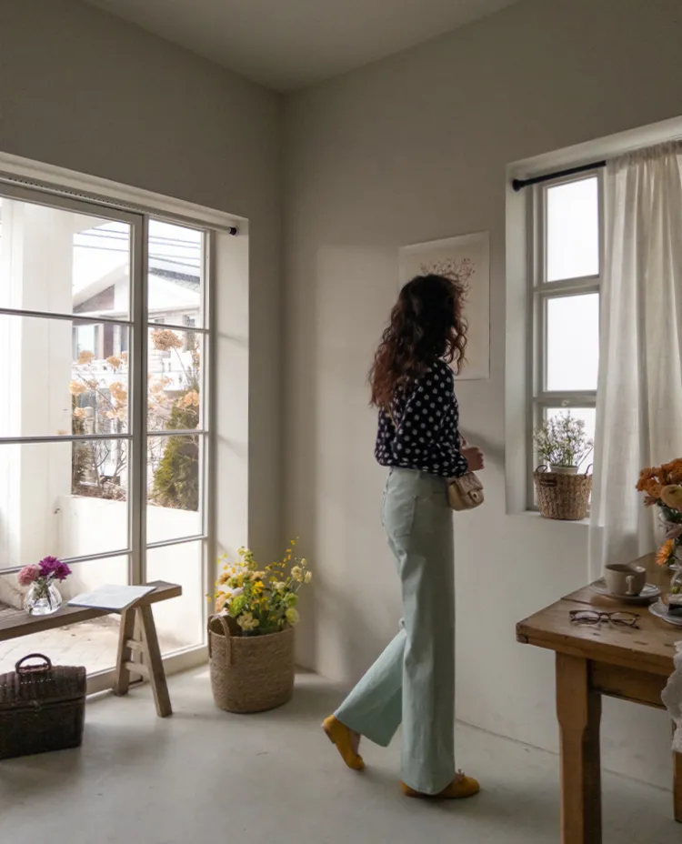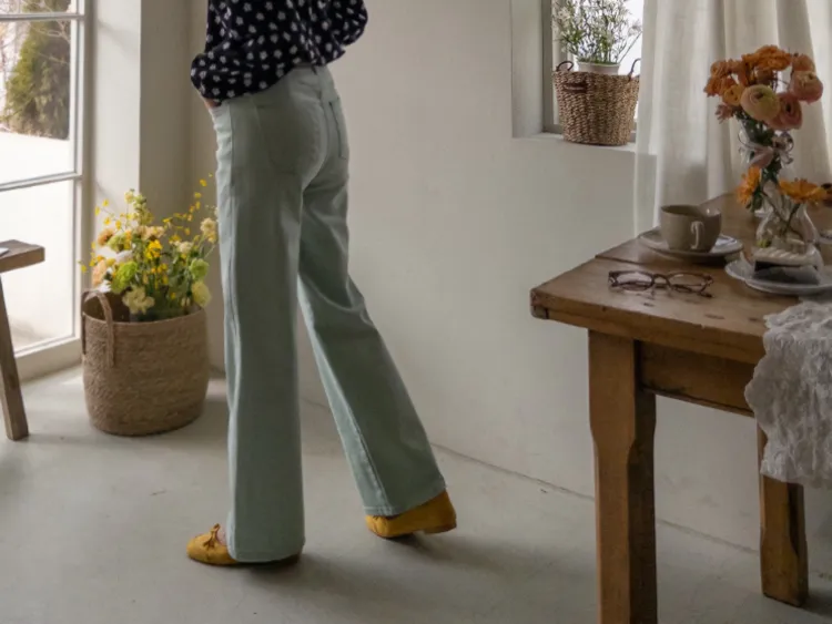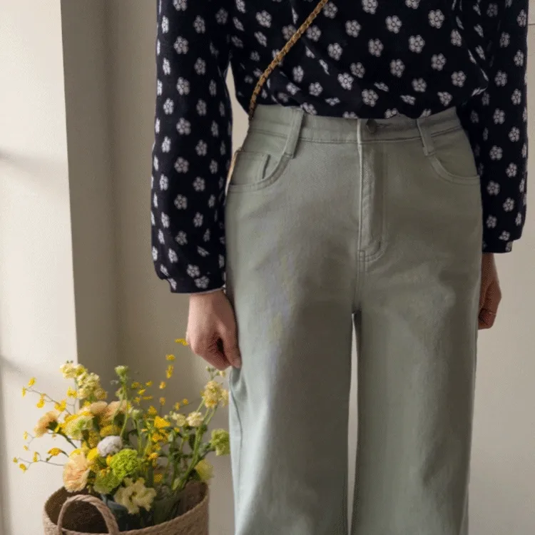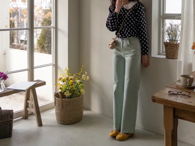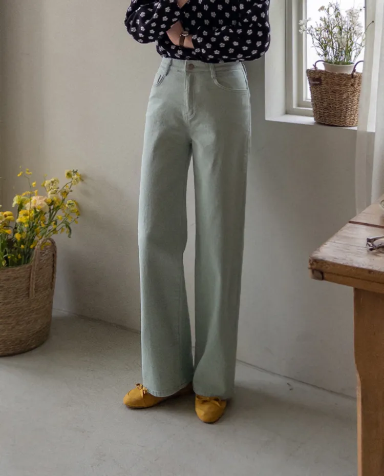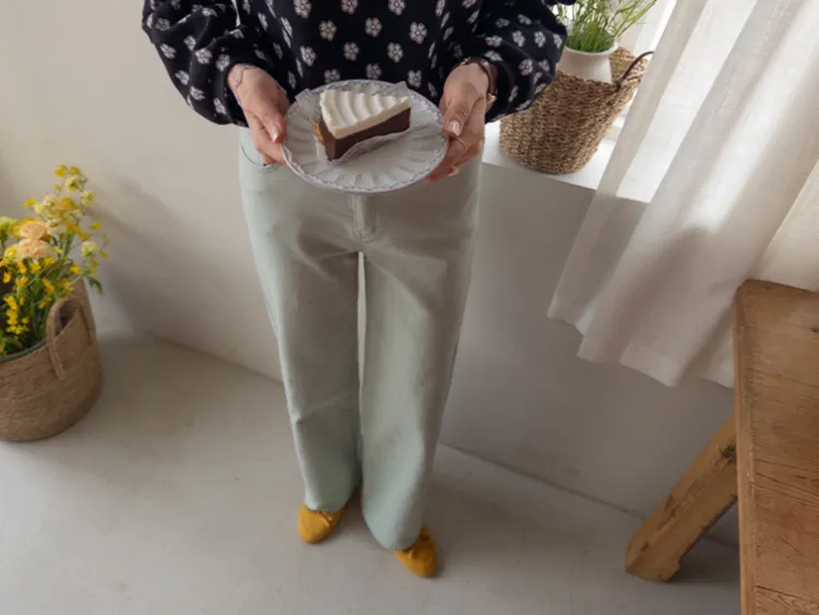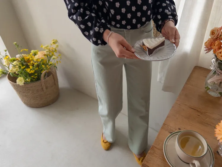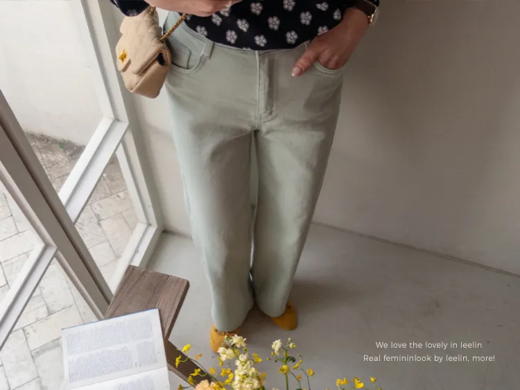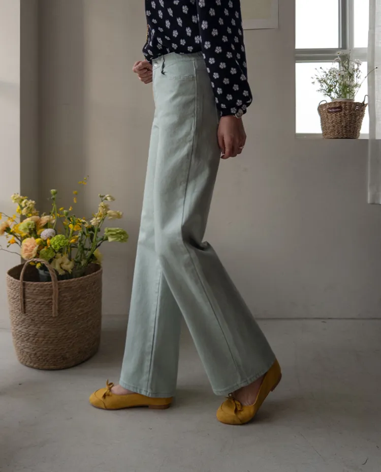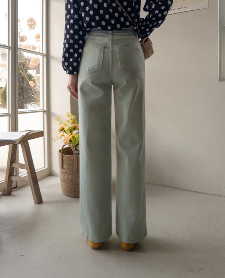 春天輕盈色感舒適彈性直筒休閒褲