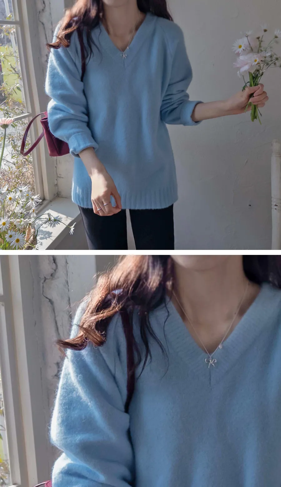 【時尚、寬鬆的針織】【厚實保暖】【V領營造精緻情調】【穿著柔軟舒適】
