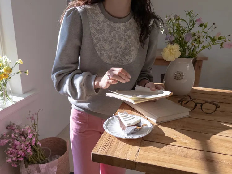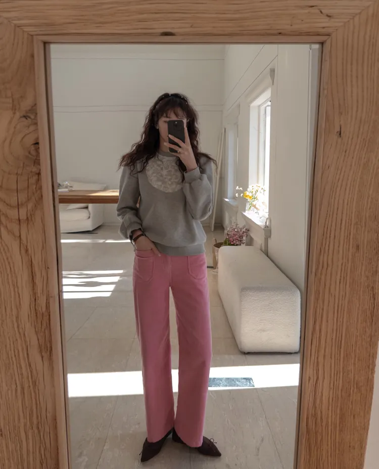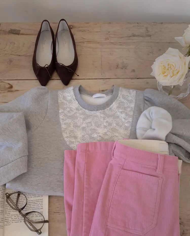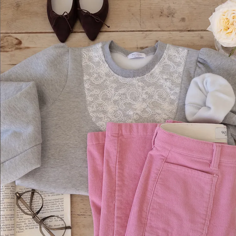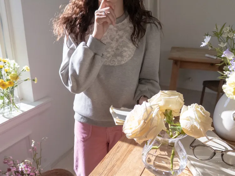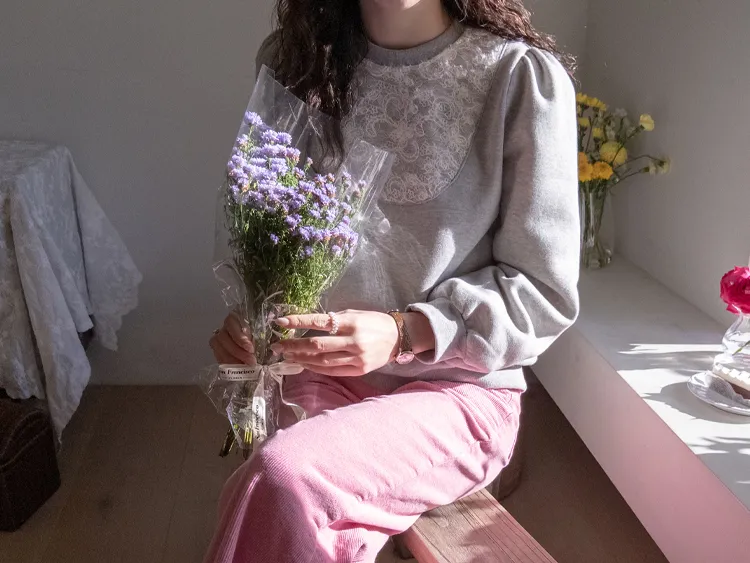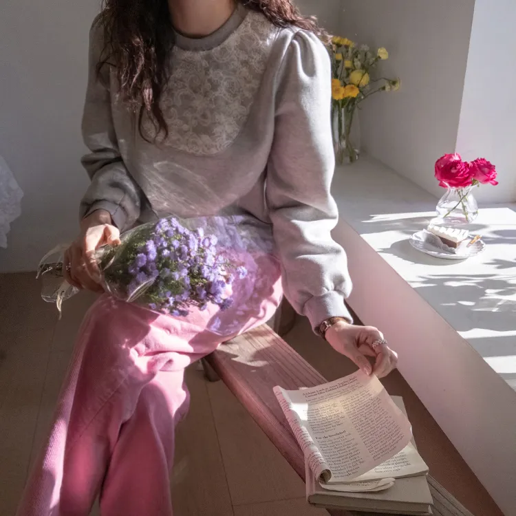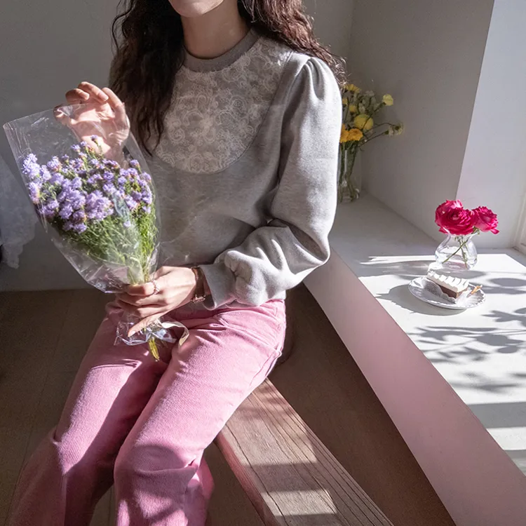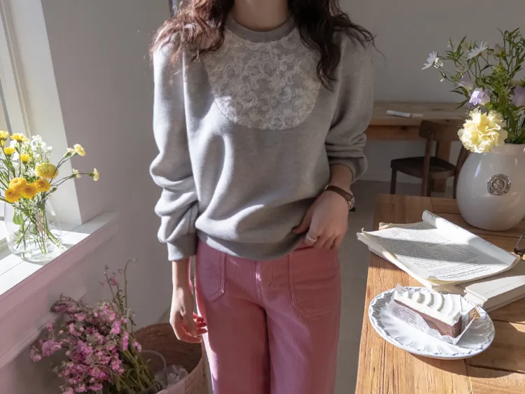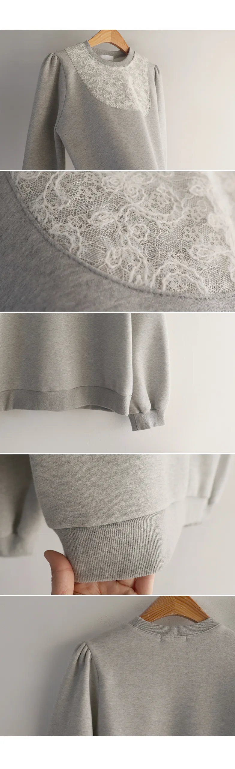 [內裡抓絨輕款暖和♡][正面蕾絲和肩部抽褶細節十足~][柔美與休閒並存!]【推薦,因為太漂亮了,穿搭也很可愛】
