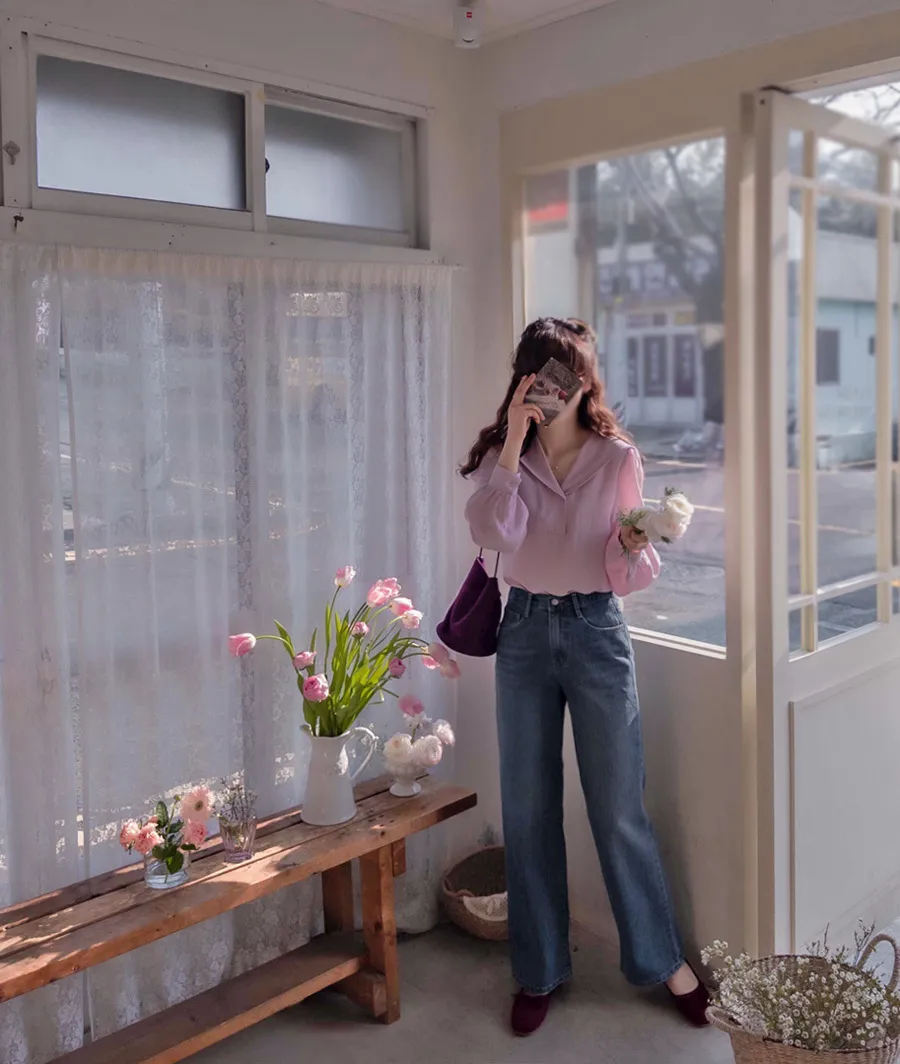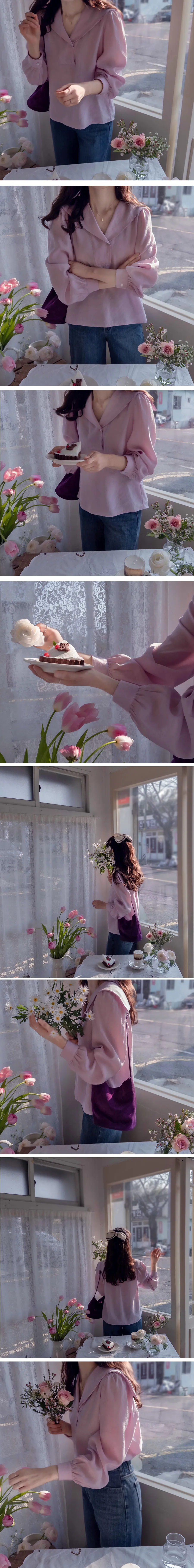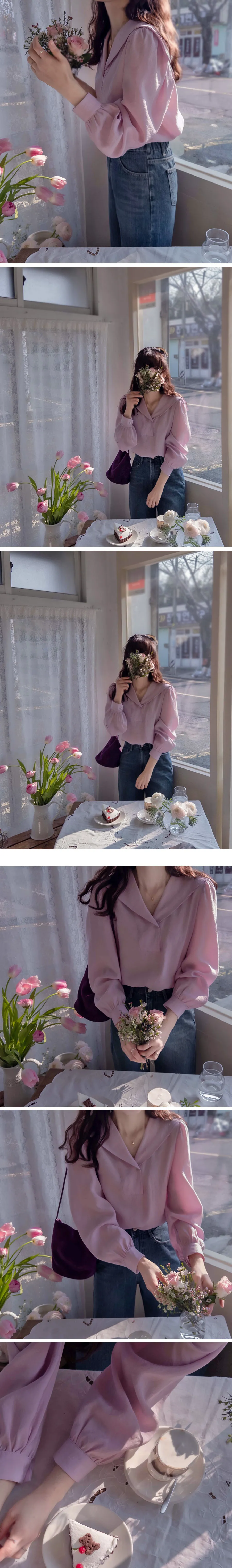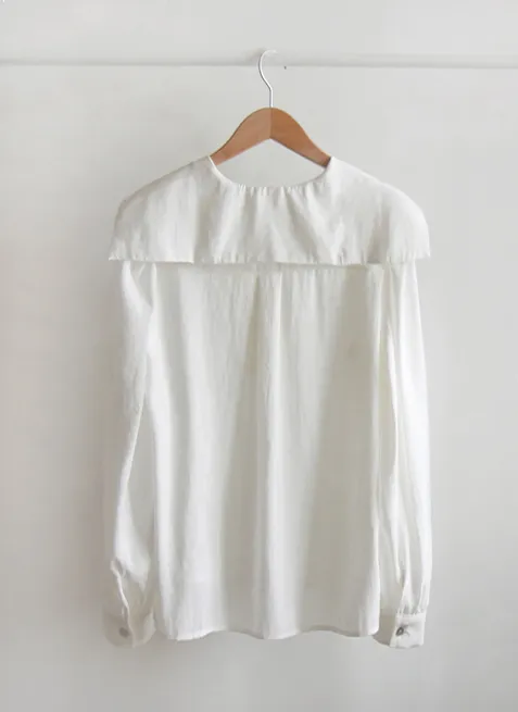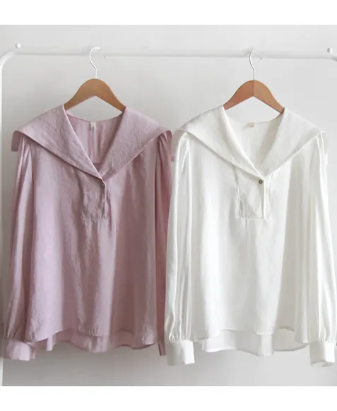 【含有87%莫代爾的奢華面料】【正面是半圓領口,背面水手領的可愛感覺】【在一起營造出精緻的心情】【肩線剪裁也很漂亮】【明亮又迷人優雅合身推薦作為春季可愛的上衣