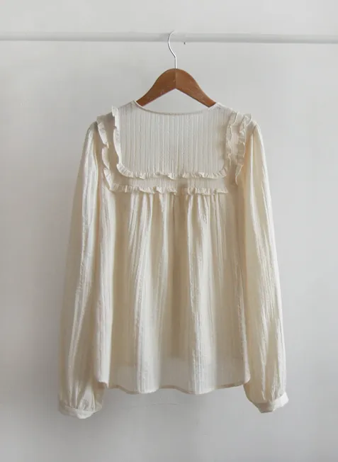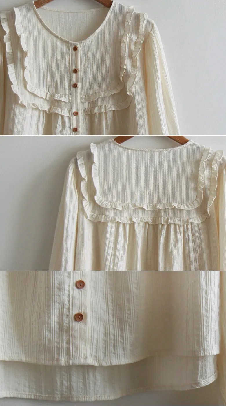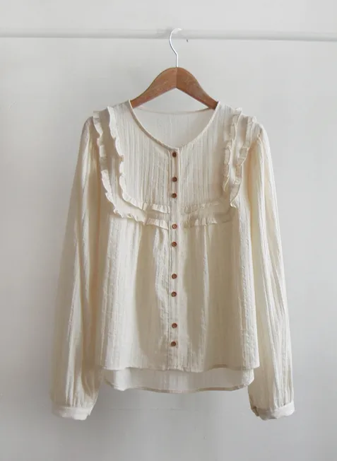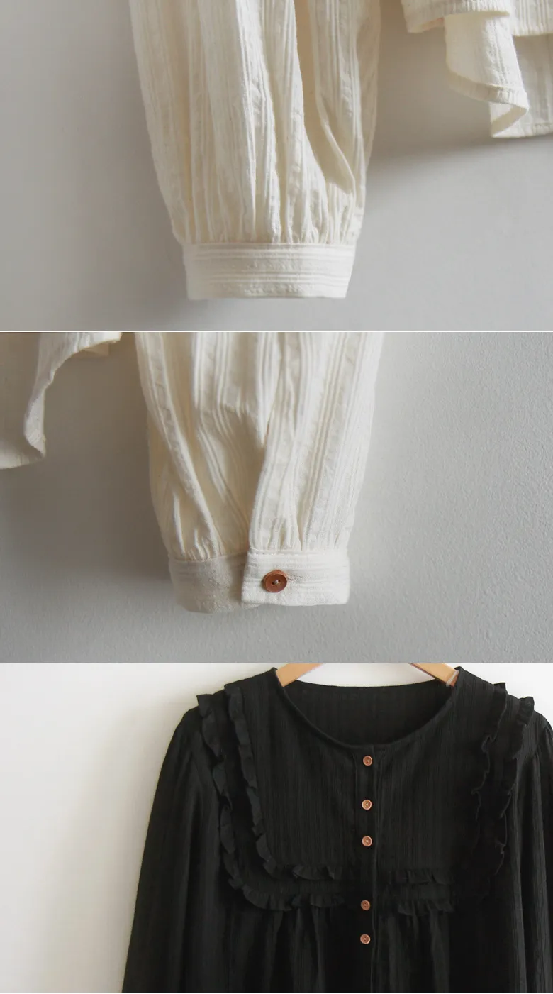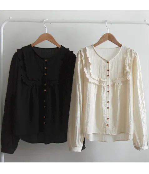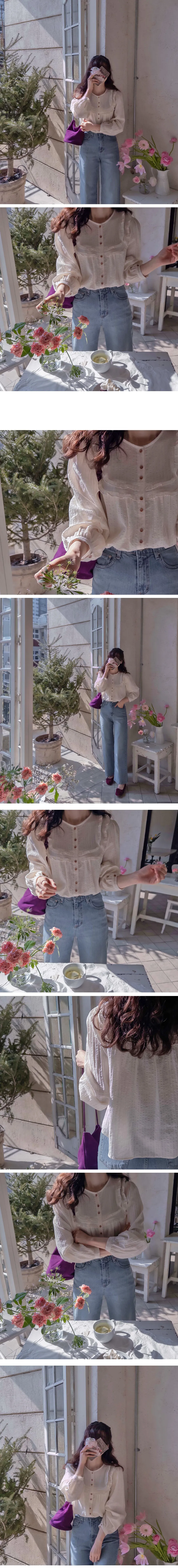 可愛摺邊剪裁設計線條排扣上衣