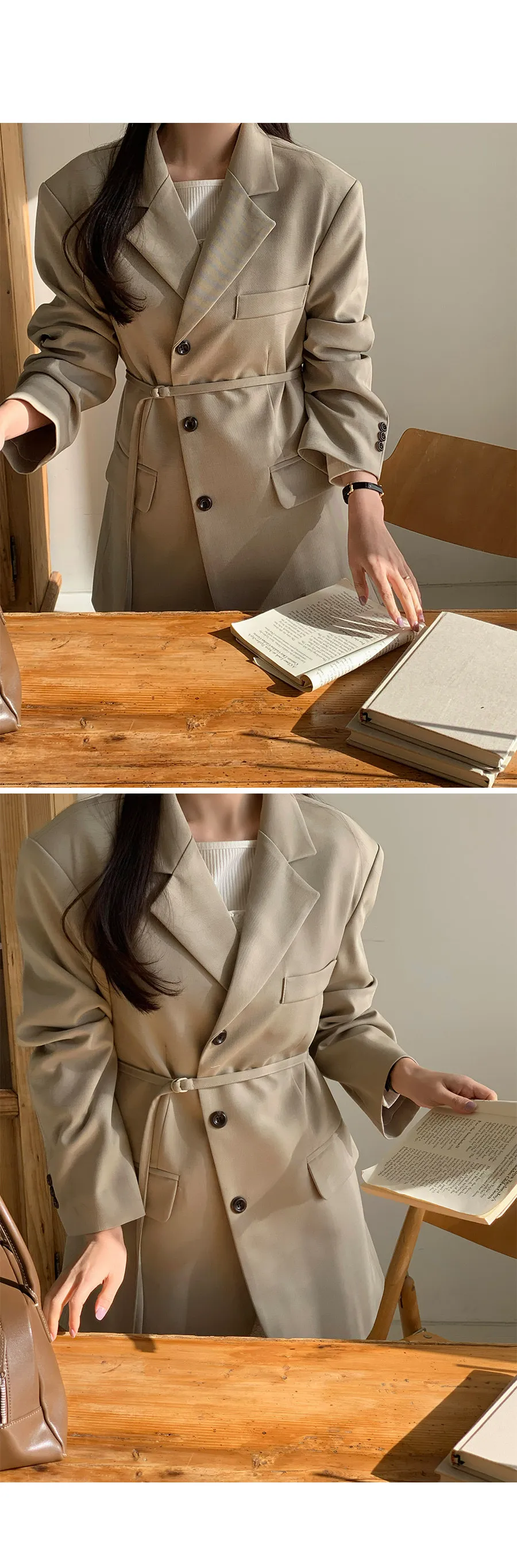 經典情調附腰帶修身剪裁外套