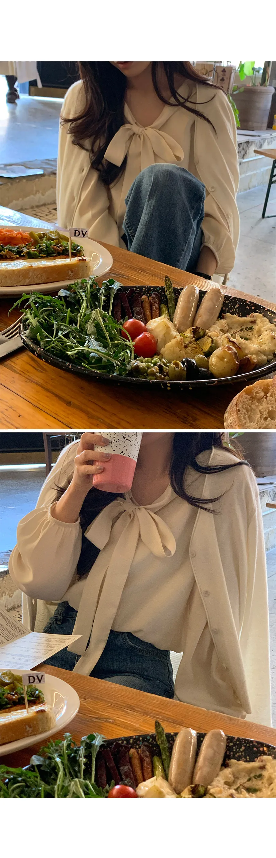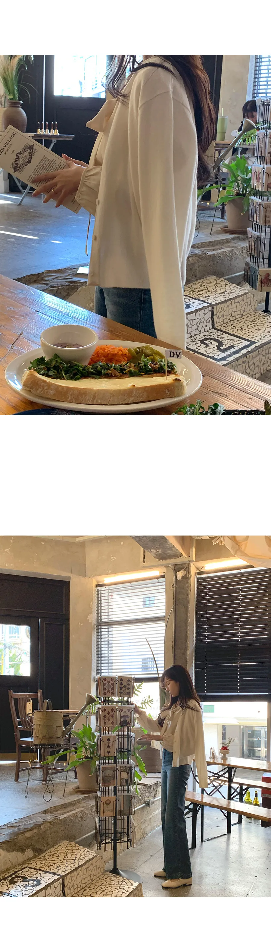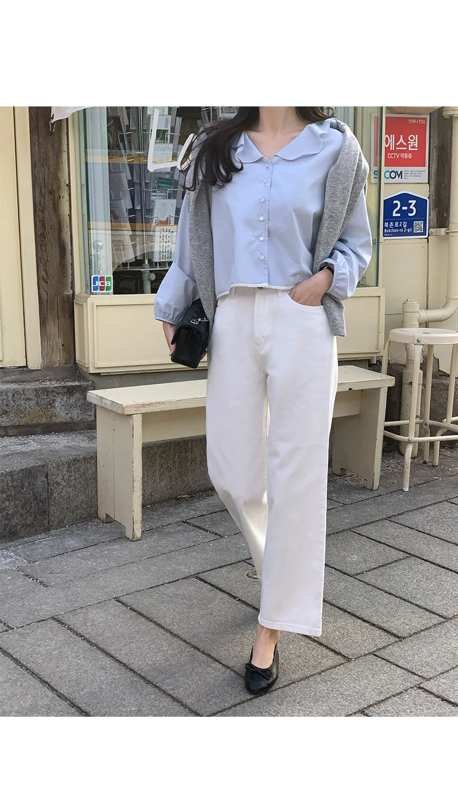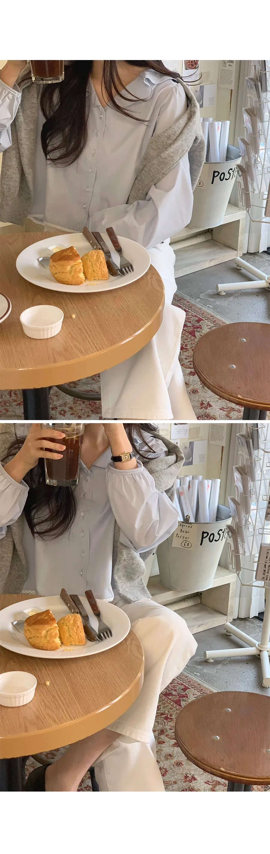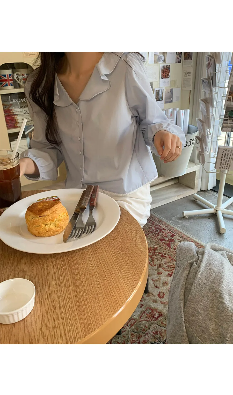 浪漫情調摺邊V領下擺蕾絲襯邊排扣上衣