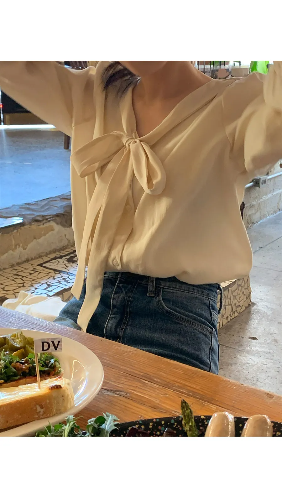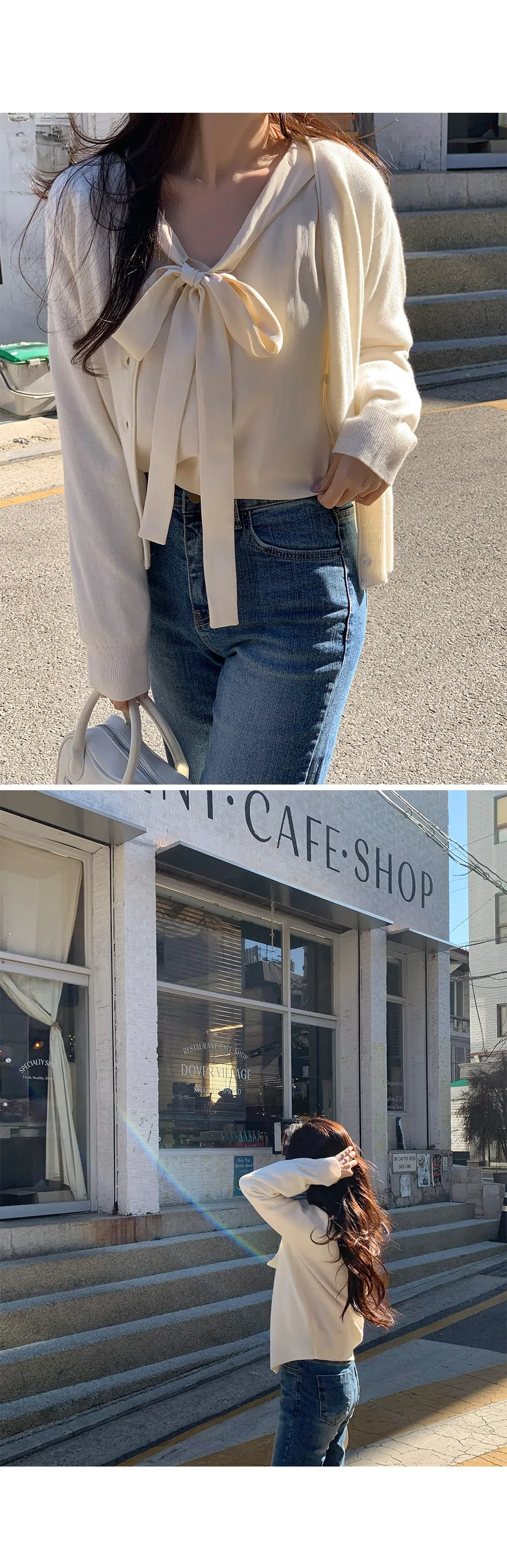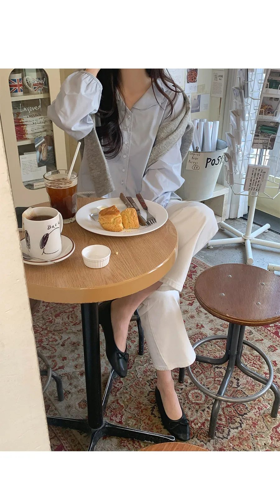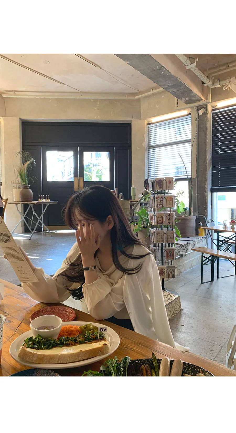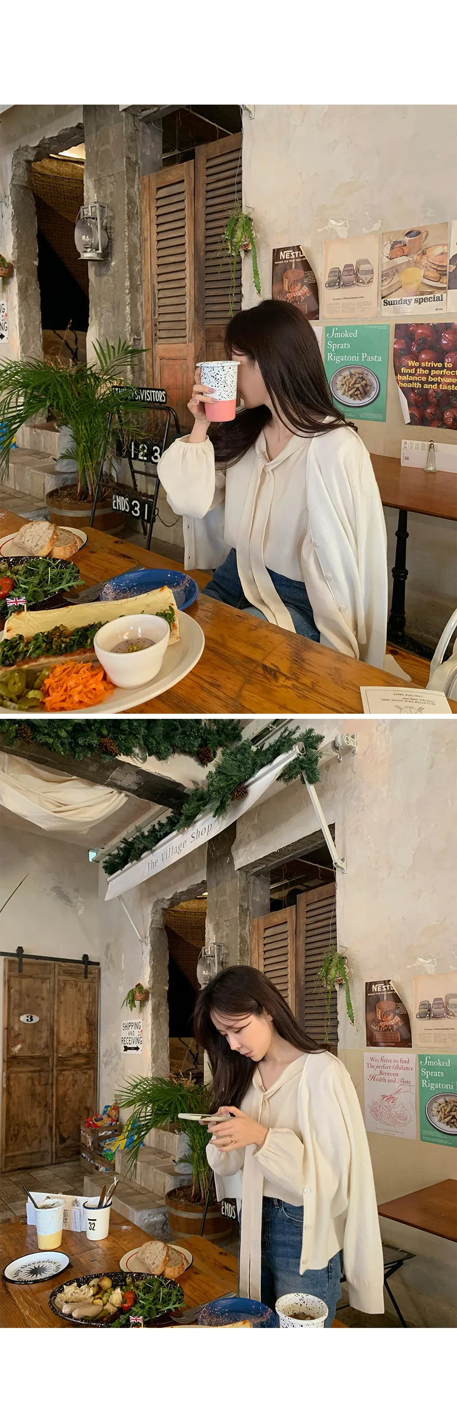 浪漫情調摺邊V領下擺蕾絲襯邊排扣上衣