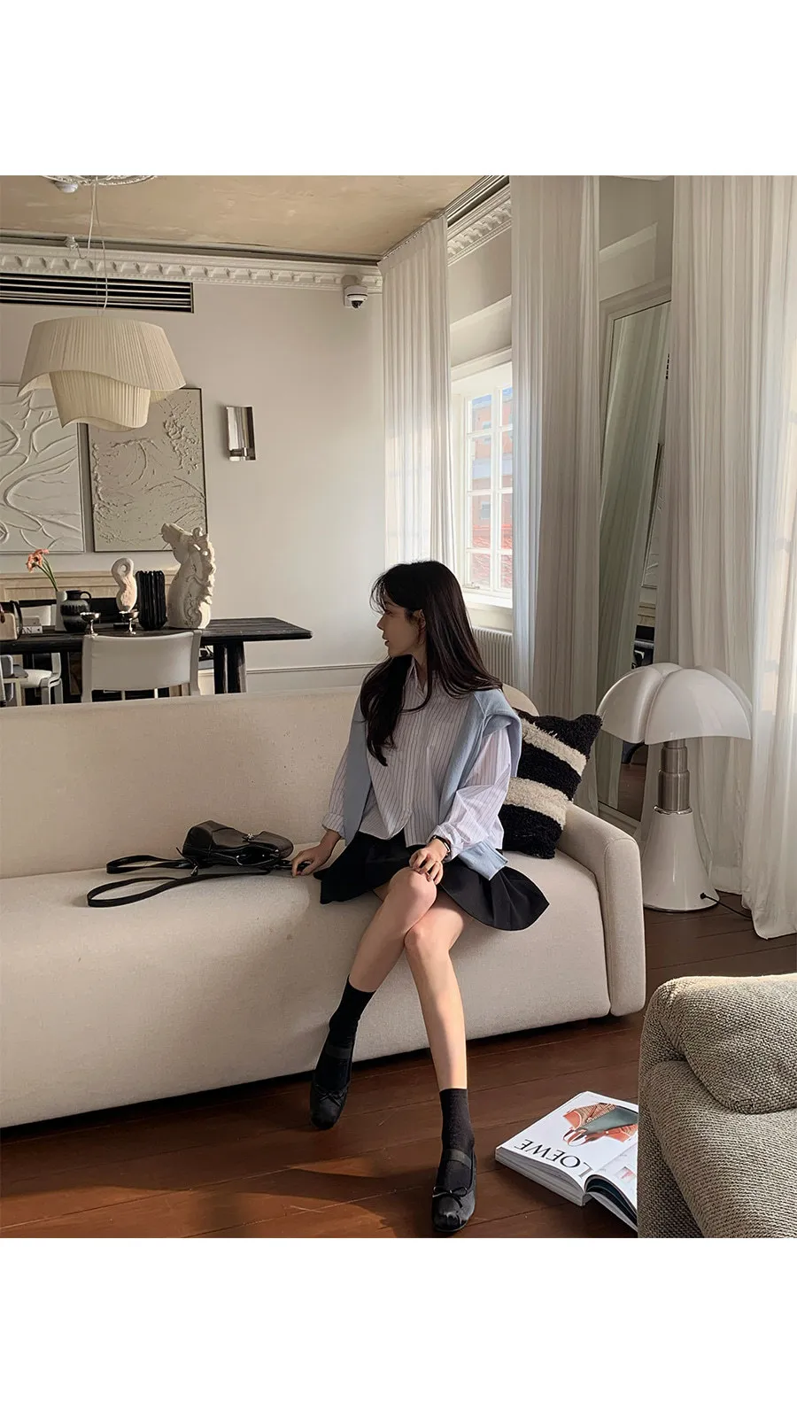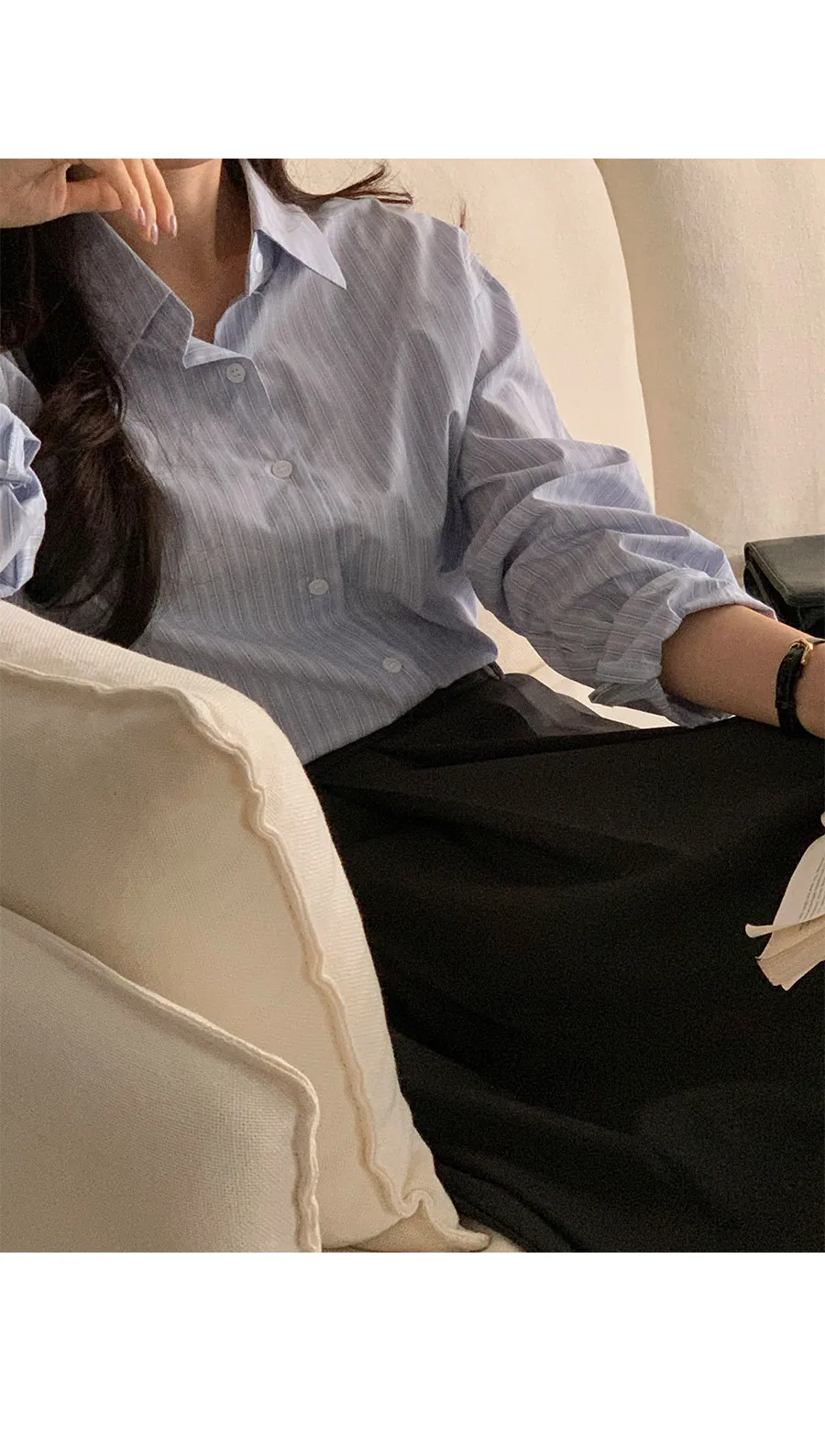 穿搭輕款色彩條紋襯衫 合身短款/寬鬆長款